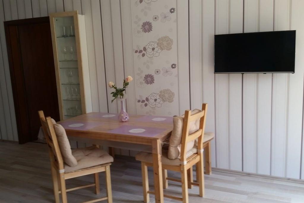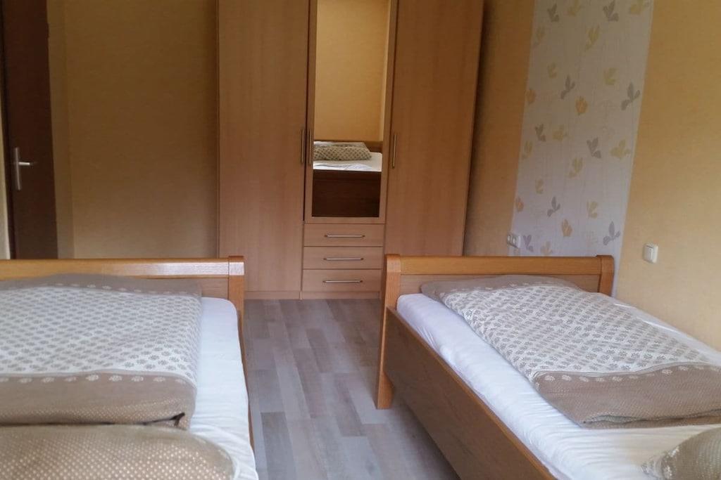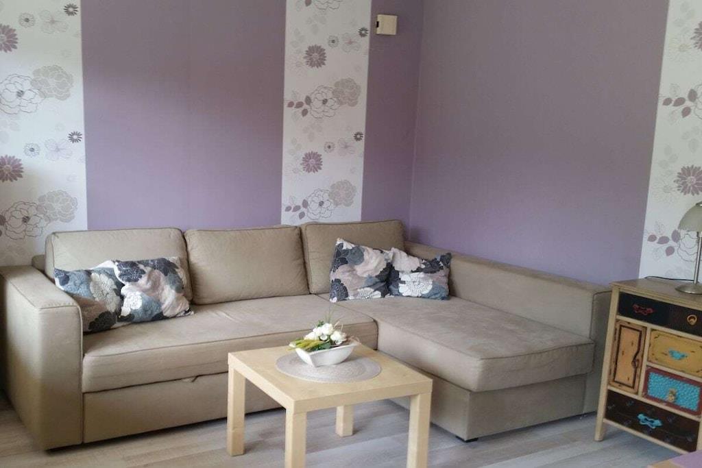 Velkommen til vores kærligt møblerede ferielejlighed. Den har et soveværelse med to separate senge, der kan slås sammen til en dobbeltseng. Stuen har en komfortabel sovesofa til den tredje og fjerde gæst. Køkkenet er udstyret med mikrobølgeovn, keramisk kogeplade, ovn og diverse små elektriske apparater. Brusebadeværelset er rummeligt og lyst. Den store, overdækkede balkon er perfekt til afslapning og grillning. Vi glæder os til at byde jer velkommen som vores gæster.