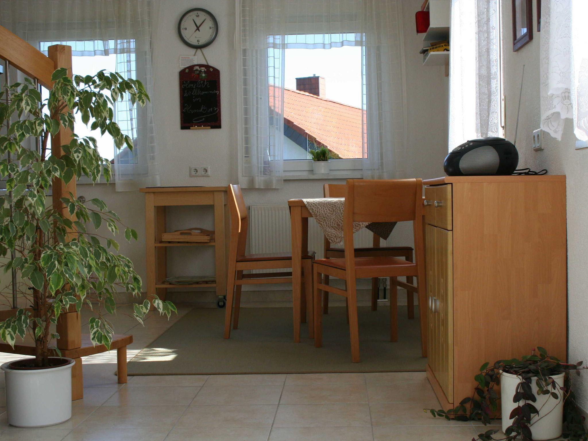 Schlafbereich 2 Einzelbetten, die man auch zusammen stellen kann, Schrank eine Sitzgruppe und ein großer 32 TFT Fernseher stehen zur Verfügung. Bettwäsche vorhanden, Küche und Haushaltsgegenstände 2-Plattenherd, Bügelbrett, Bügeleisen, Dunstabzugshaube,Spüle, Kühlschrank ohne Gefrierfach, Pad-Kaffeemaschine auf Wunsch kann auch eine Filterkaffeemaschine zur Verfügung gestellt werden, Wasserkocher und einer gemütlichen Essecke Kochzeile, Mikrowelle, Wasserkocher Bad und Sanitär Duschbad, Föhn, Handtücher vorhanden, WC, Unterhaltung und Kommunikation Empfang deutschsprachiger TV-Programme, Fernseher, Radio, SAT-Anlage, Spielesammlung, Internetzugang (WLAN)
