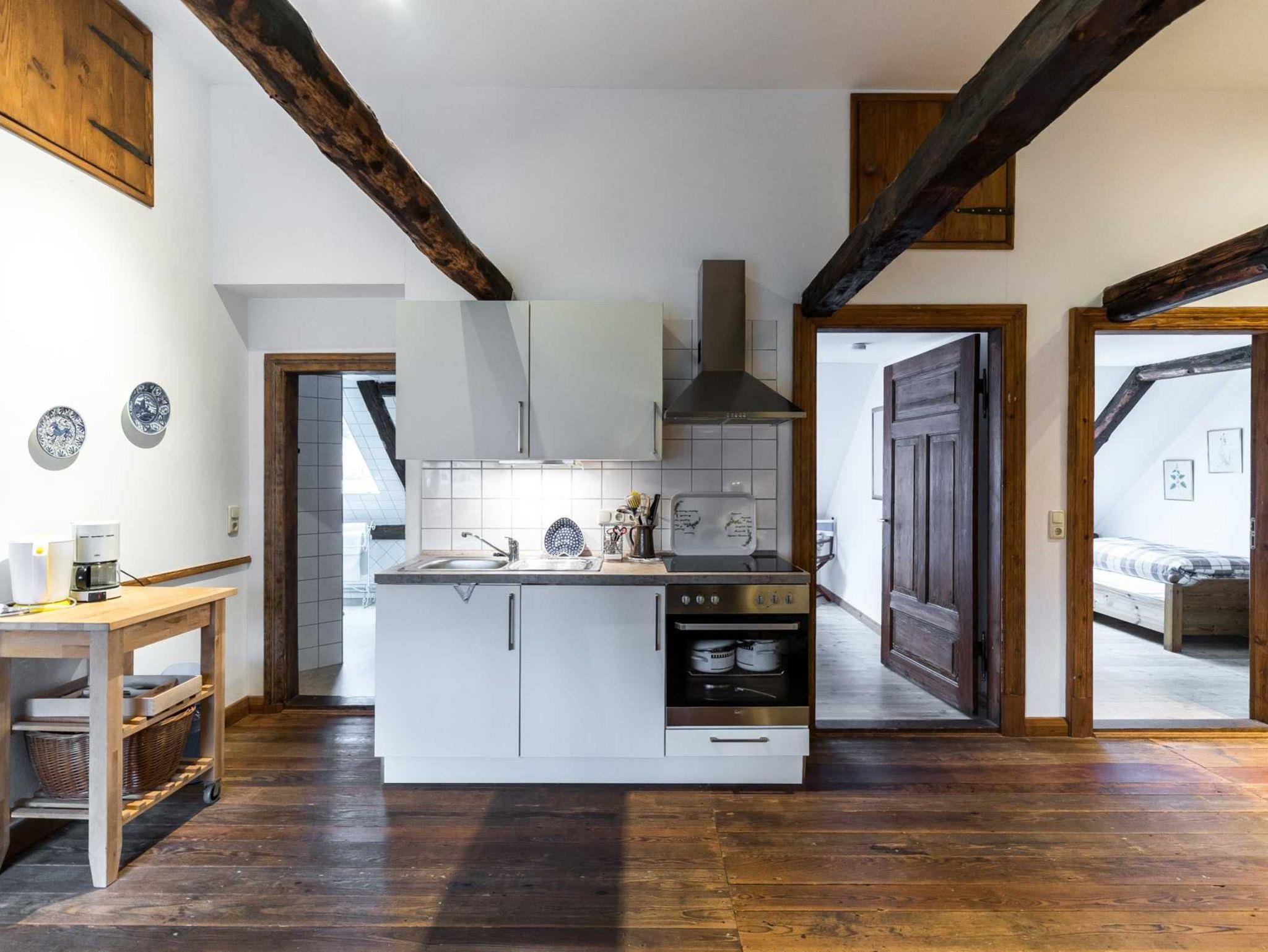 • rustikal, gemütliches Ambiente mit Dachbalken, alten Dielenböden und Türen sowie einem kuschligen Kaminofen mit Sichtscheibe