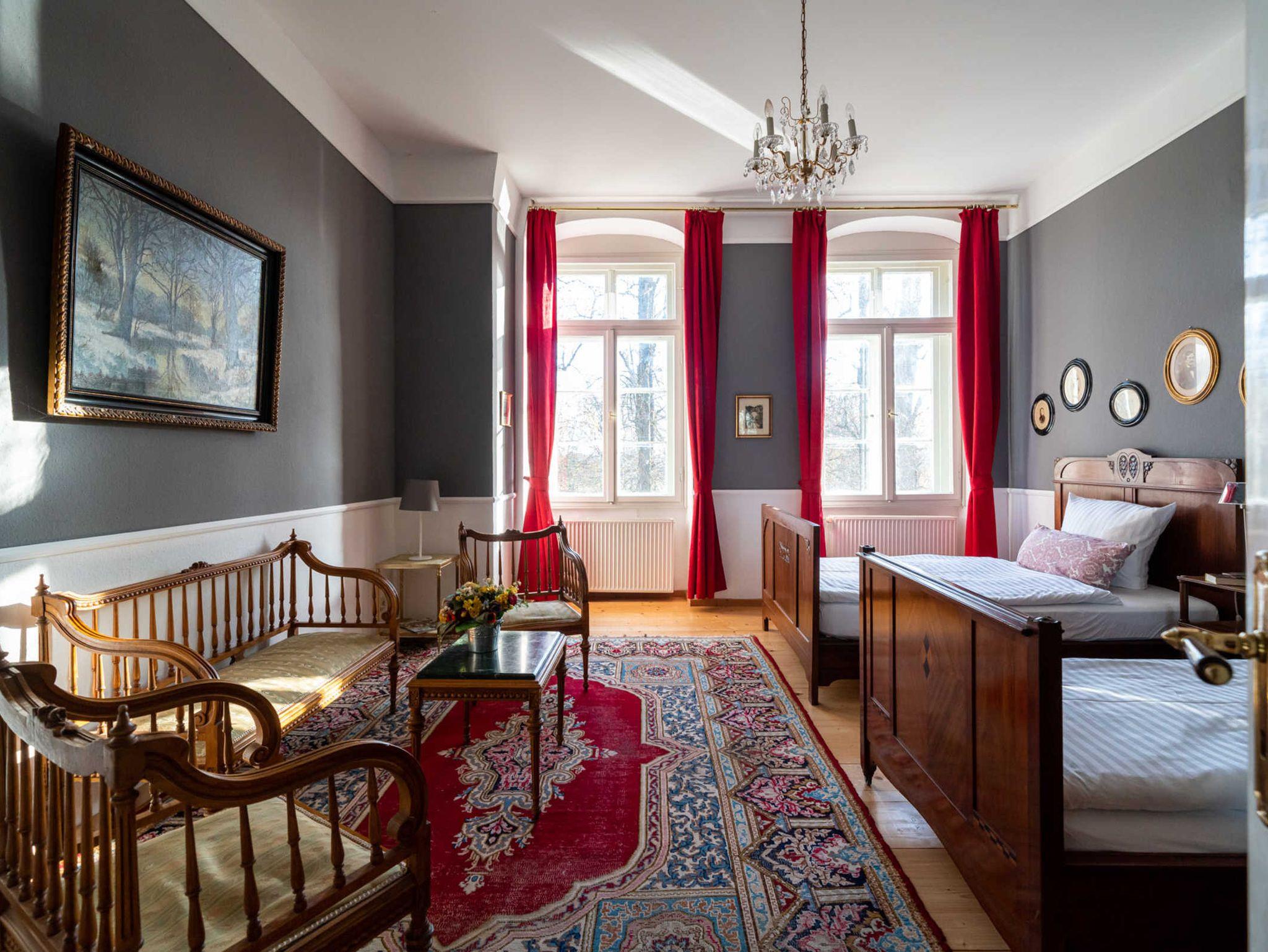 Großzügige Wohnung im 2. OG des Schlosses (130 qm) für 7 Personen mit Blick in die Lindenallee und den Park (alle Himmelsrichtungen)