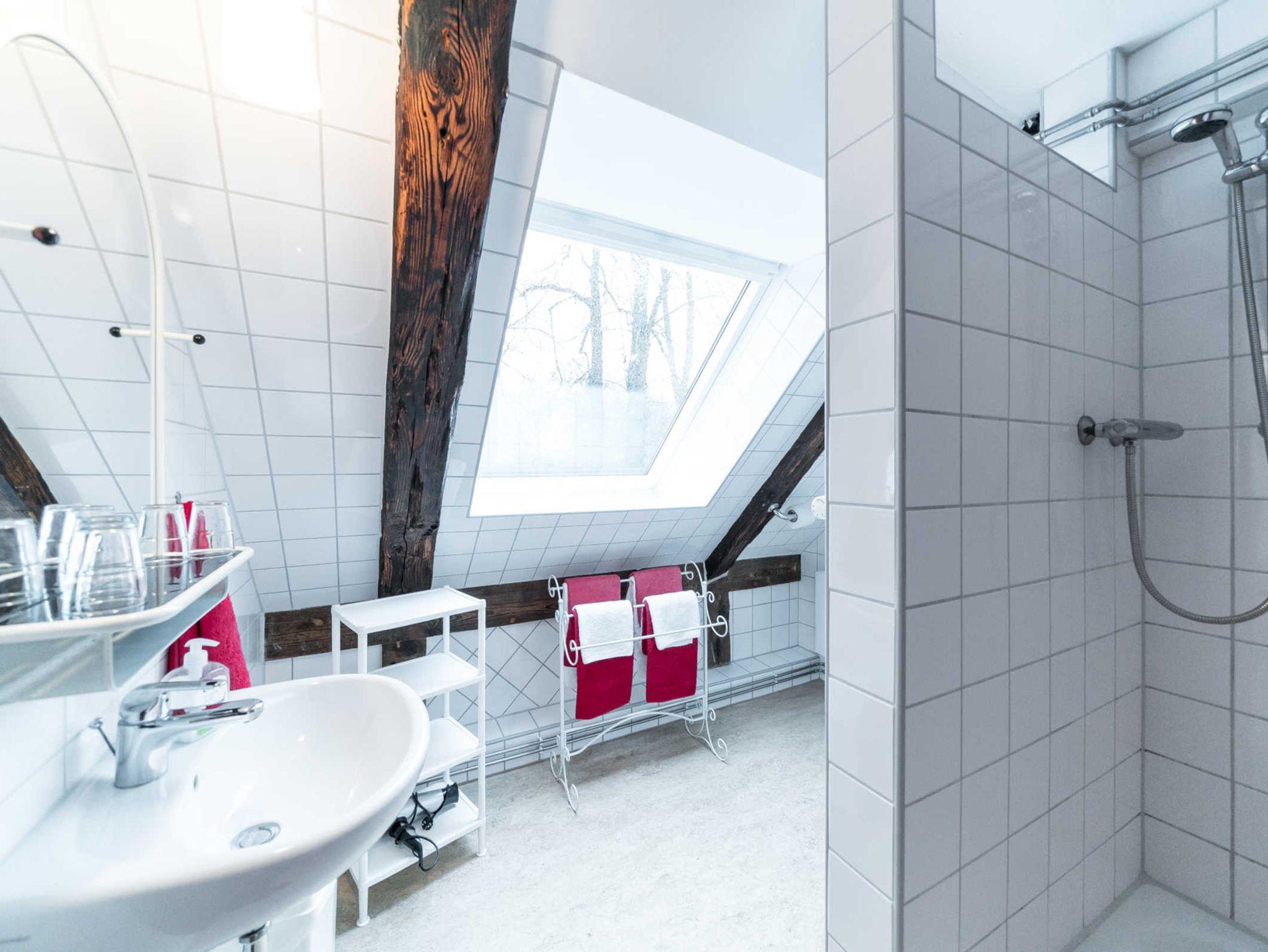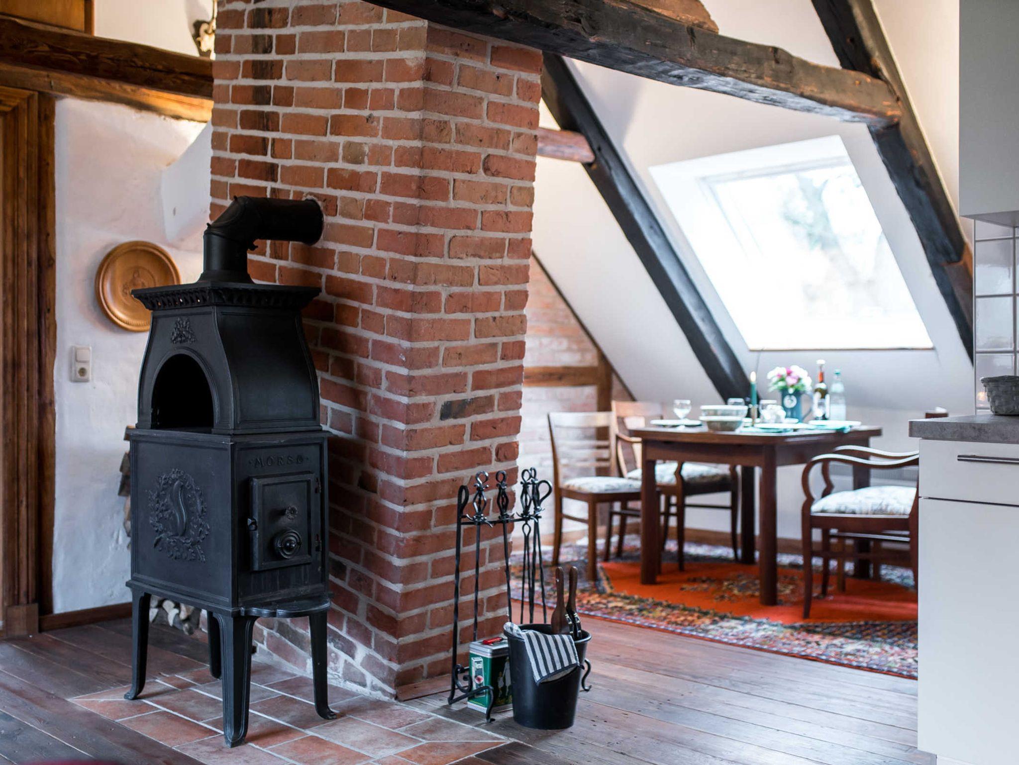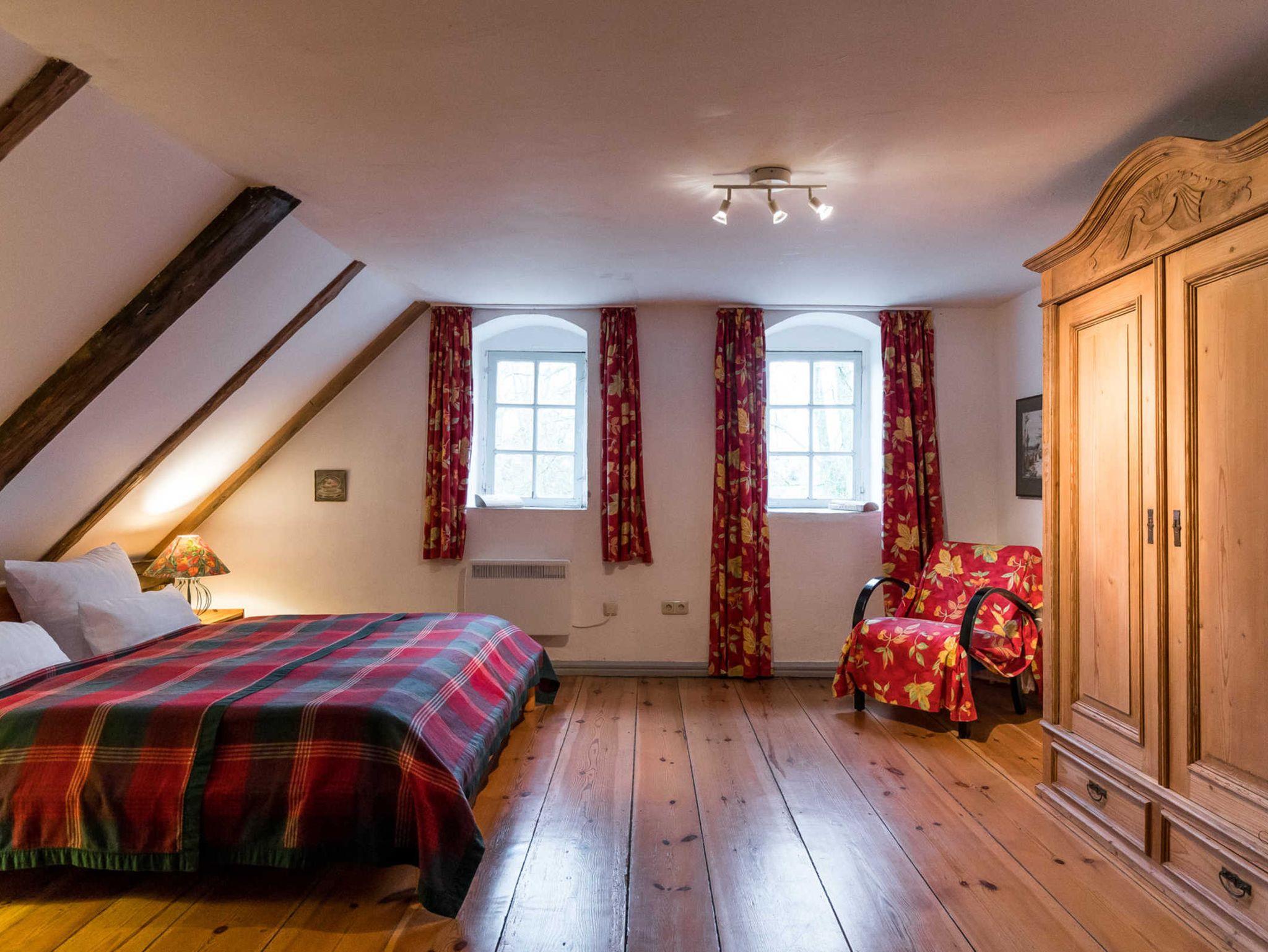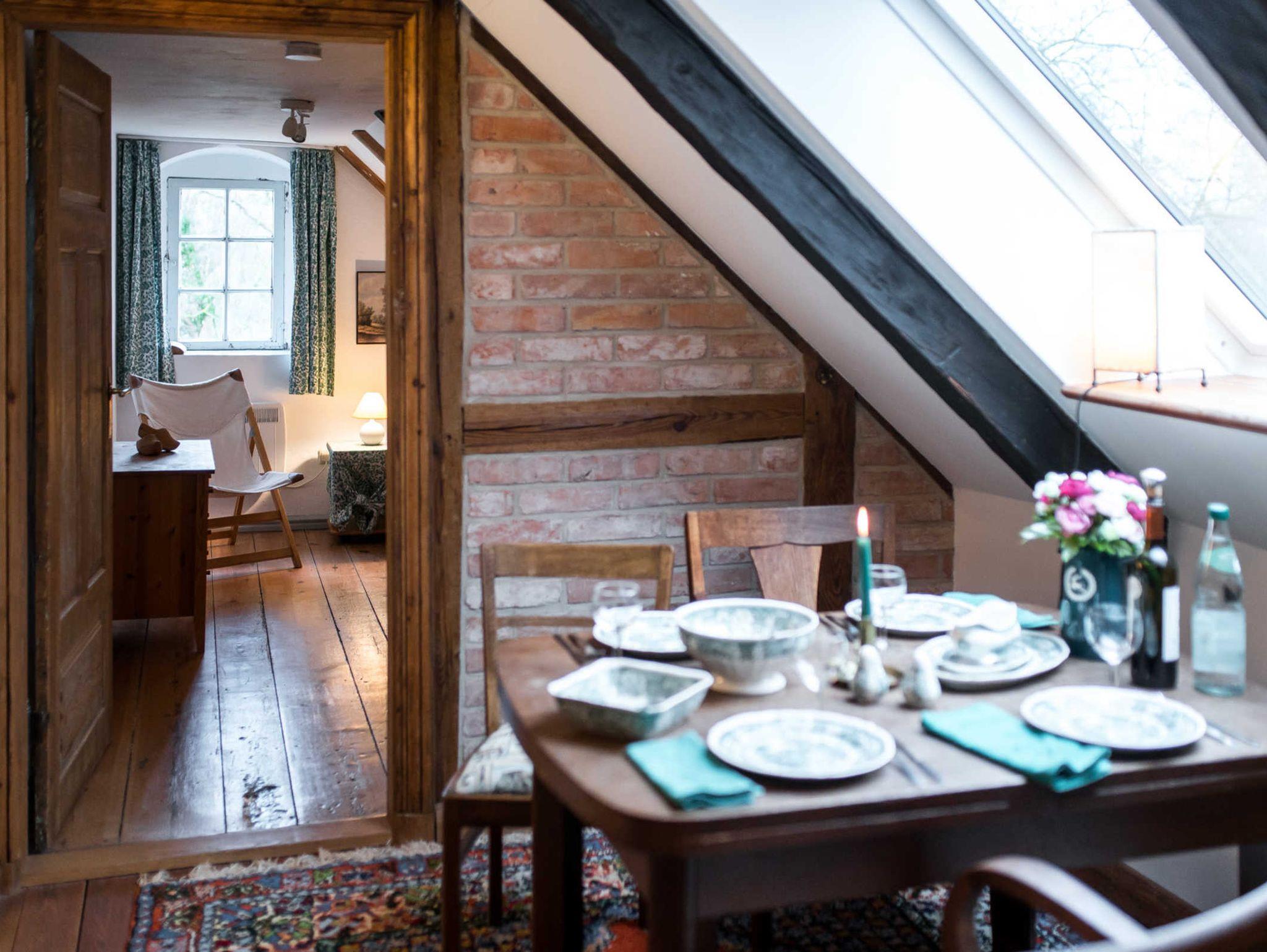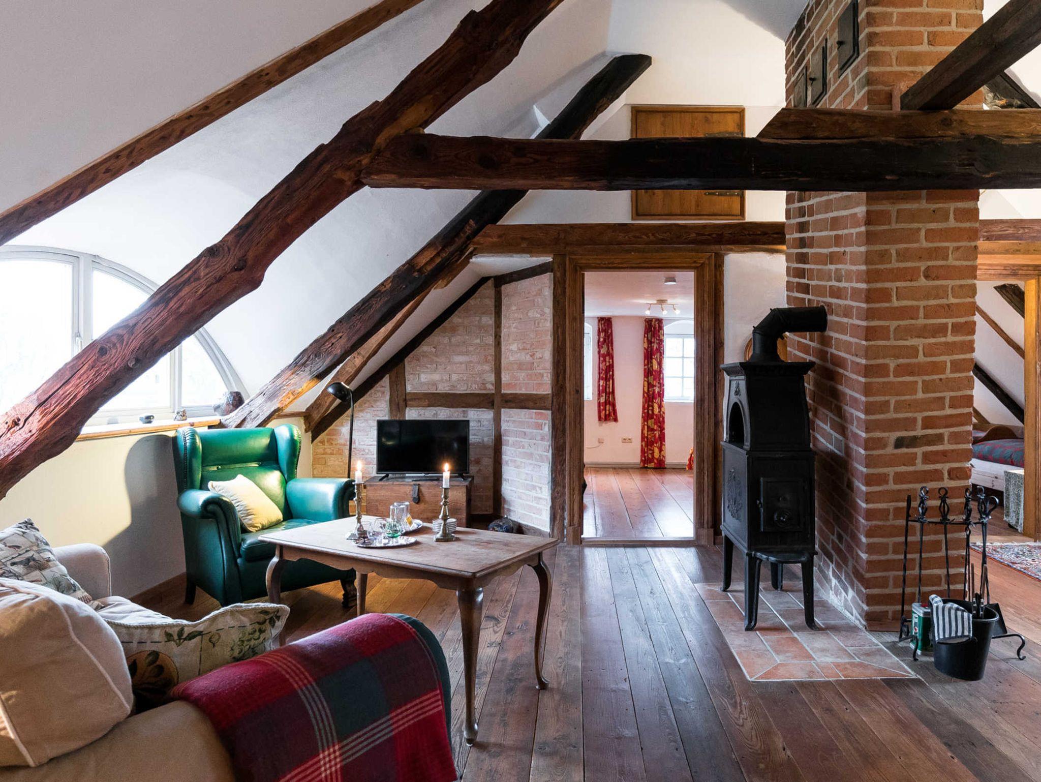 • rustikales Ambiente mit Dachschrägen, alten Dielenböden und alten Türen