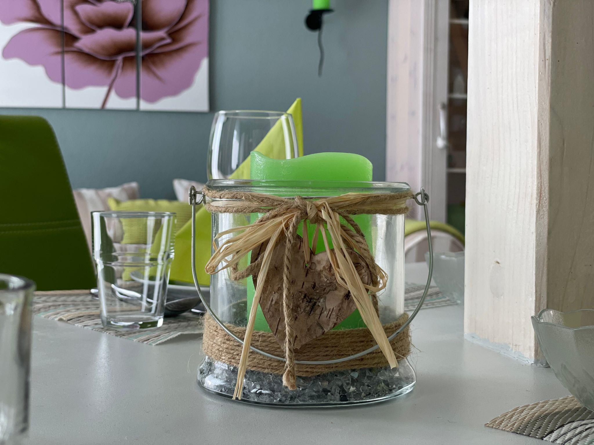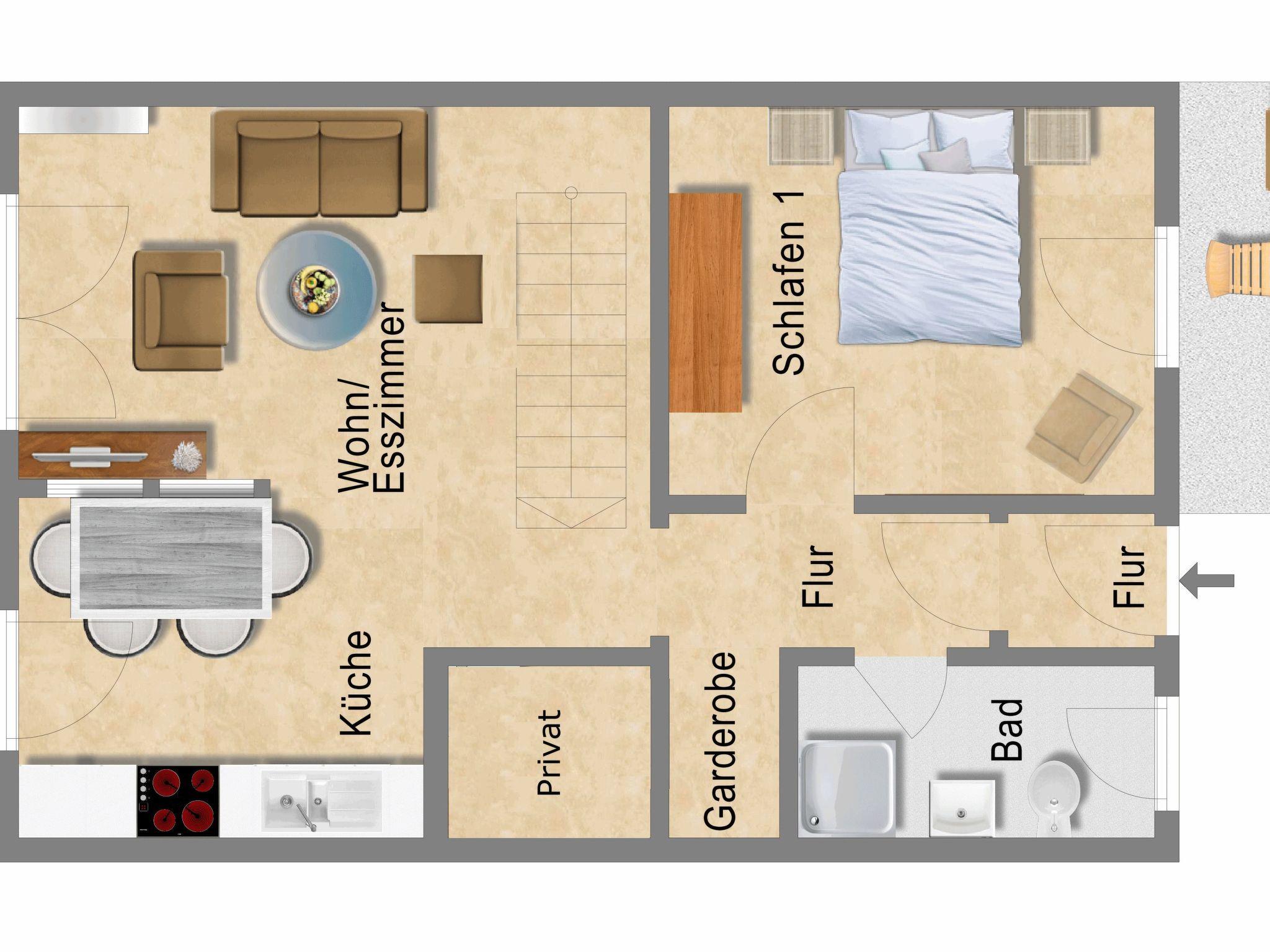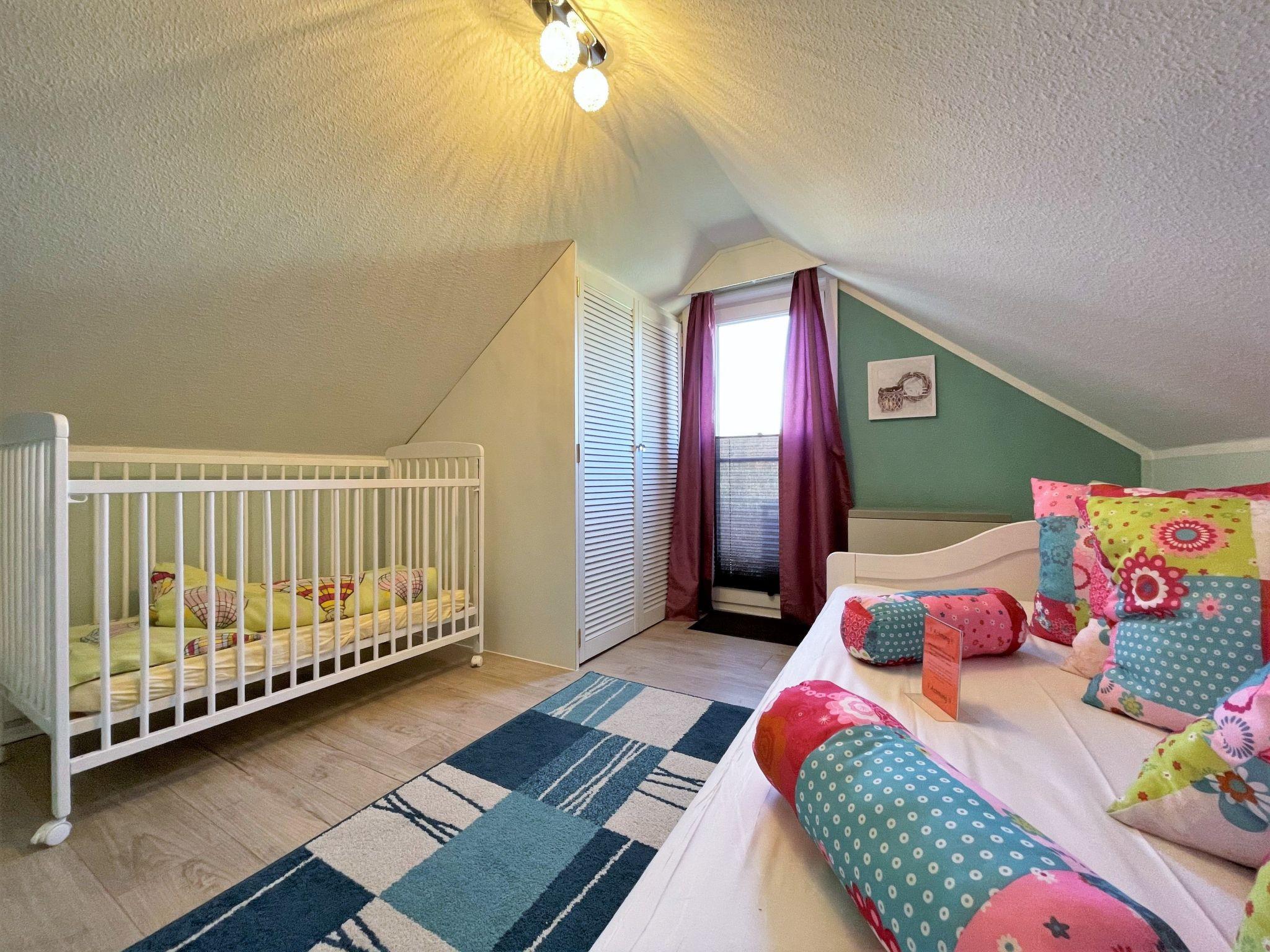 The house can accommodate four people and one child. The two floors provide everything you need for a relaxing holiday. The ground floor has a big living and dining room with satellite TV (including USB port) and a fully-equipped kitchen separated off spatially by beams, a big bedroom with a double bed (180 x 200cm), and a bathroom. The other two bedrooms are on the upper floor, one with a single bed (90 x 200cm) and a balcony, and one with two single beds (90 x 200cm). The kitchen is equipped with a stove, oven, coffee machine, dishwasher and fridge with freezer compartment. Wireless Internet access is available throughout the house. The house has night storage heating.