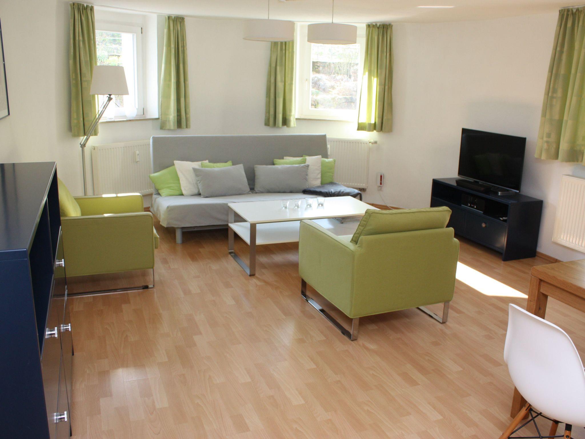 Enjoy the beauty of nature and leave everyday life behind. It is just a few minutes‘ walk to the town centre with a pharmacy, medical practices, restaurants and shops, the Cistercian monastery with its modern museum, the Kurpark with a minigolf course and a big children’s playground, the monastery ponds where you can go fishing and swimming, and interesting hiking trails into the karst landscape.