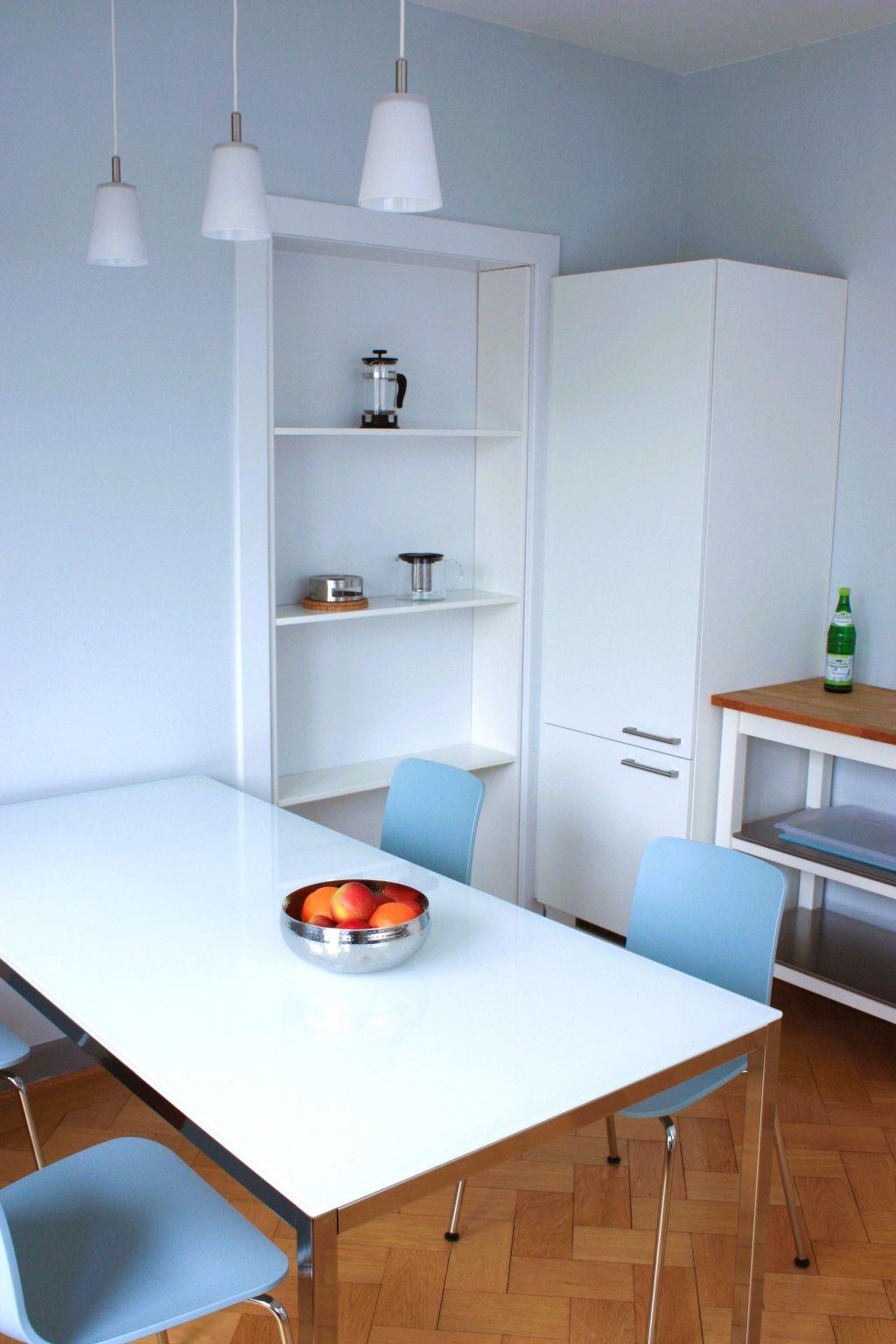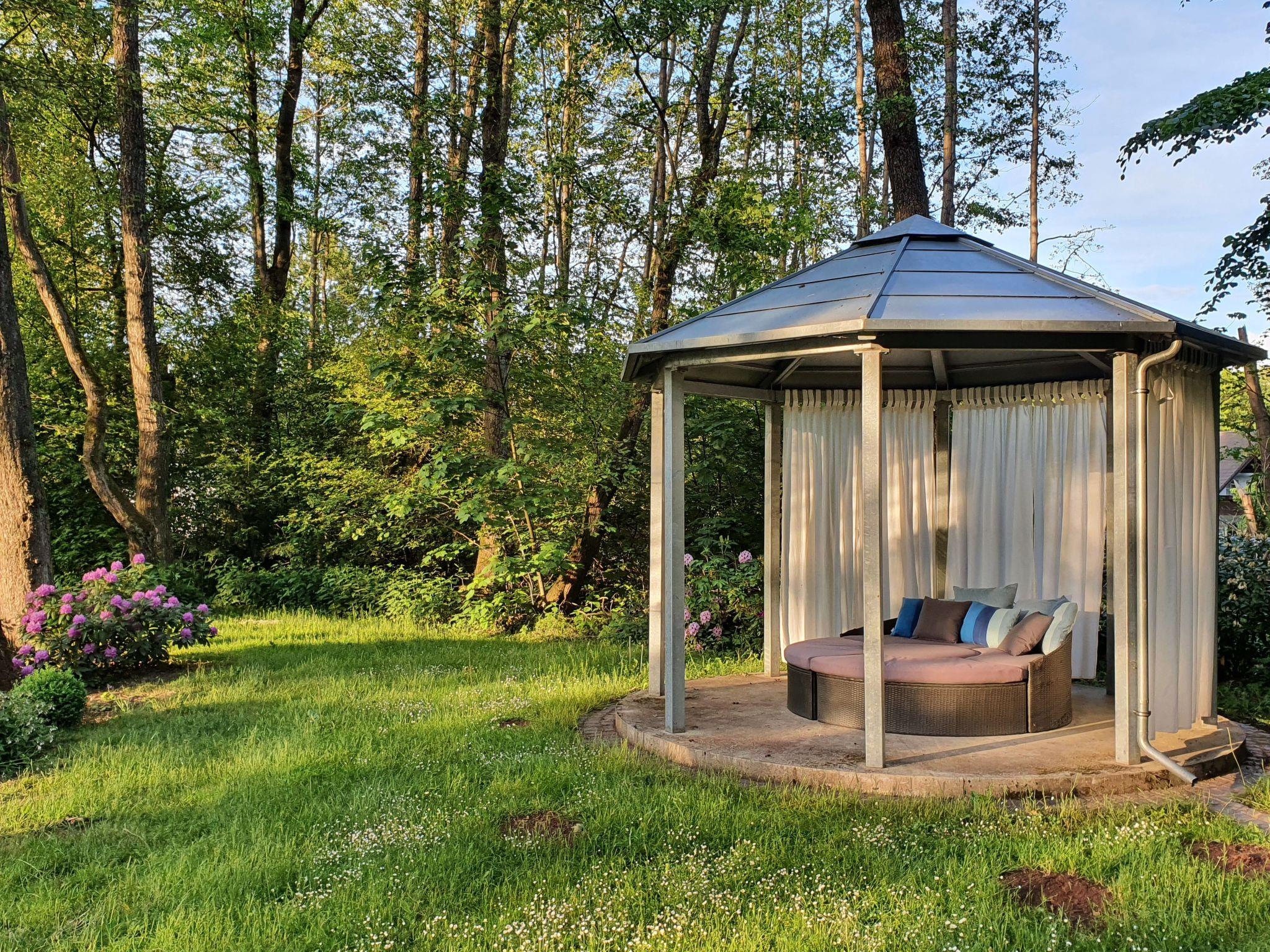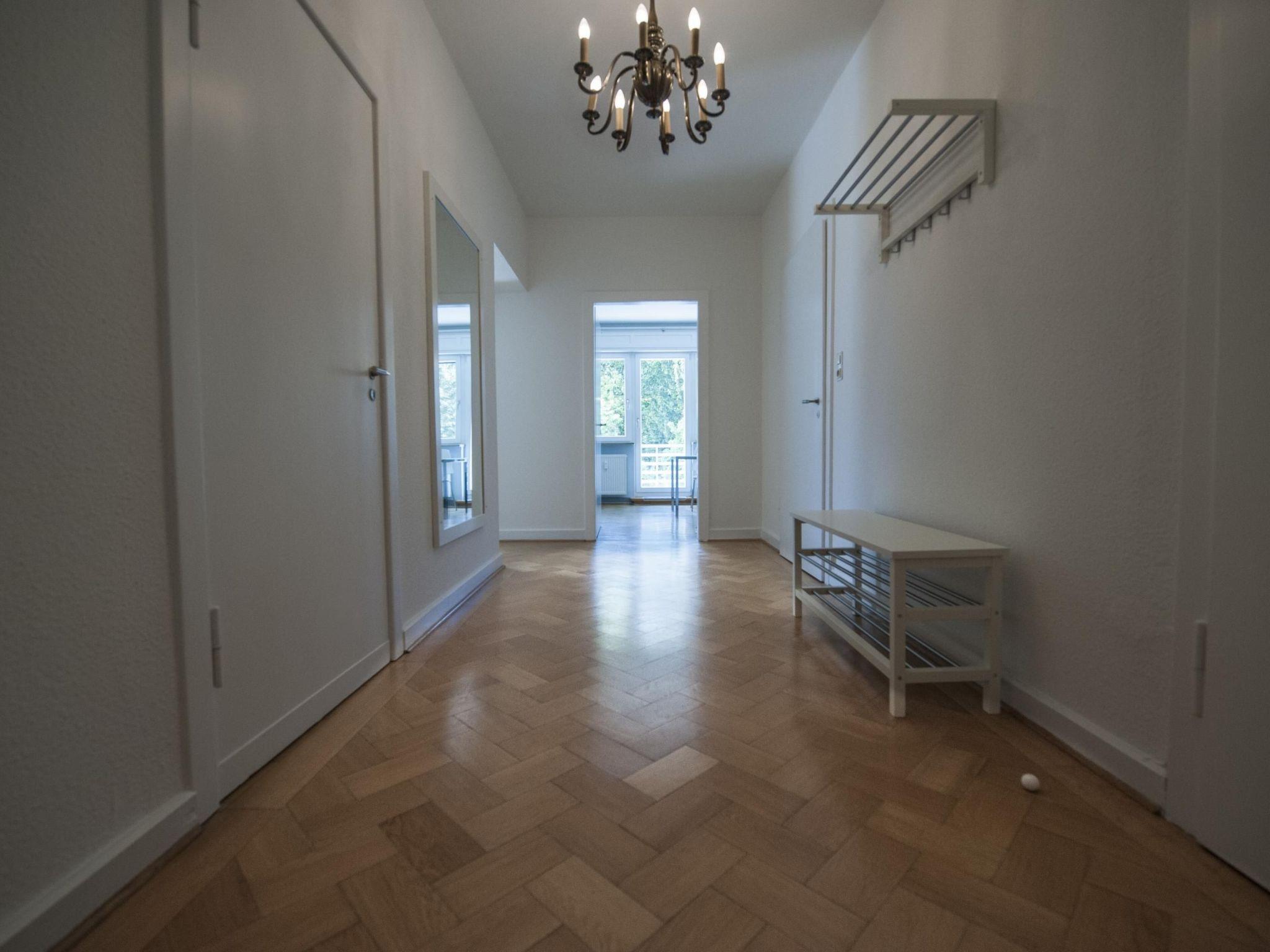 You can relax in the big garden with century-old trees and a pond with lilies, as well as the newly designed rose and perennial garden. There is a generous garden sitting area with comfortable garden furniture, a parasol and grill in the sunny orchard right by the house. There are further seating and loungers, as well as a campfire area, in the park. The park was laid out according to the ideas of the garden architect Rudolf Ehlgötz in the 1930s. The apartment has a car parking space and lockable storage space for bicycles or skis.