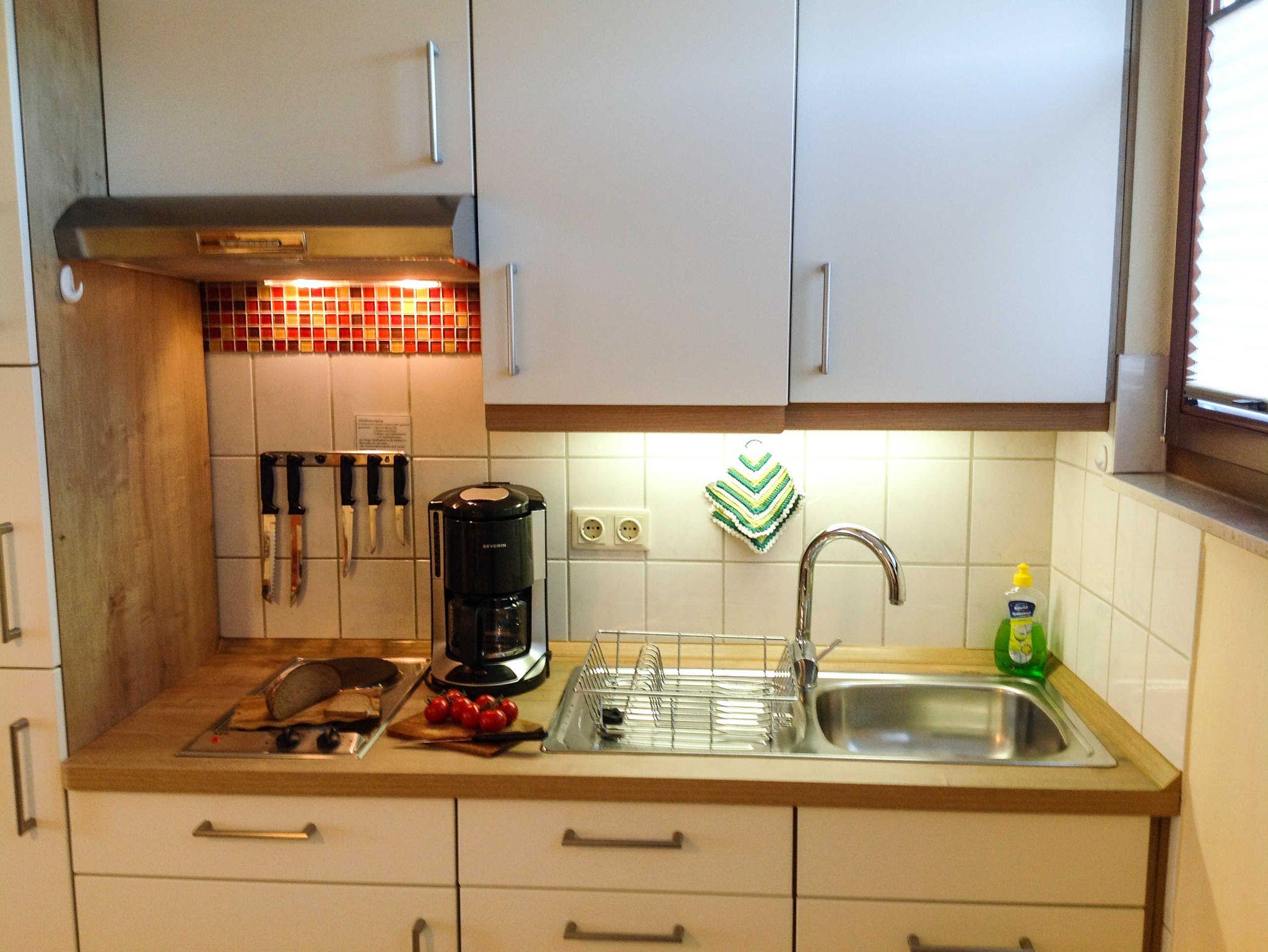 Die Einbauküchen sind mit 2 Elektroplatten, Kühlschrank, Mikrowelle,Toaster, Wasserkocher und Kaffeemaschine. Die Wohnung 4 verfügt über eine voll ausgestattete Wohnküche mit Geschirrspüler.