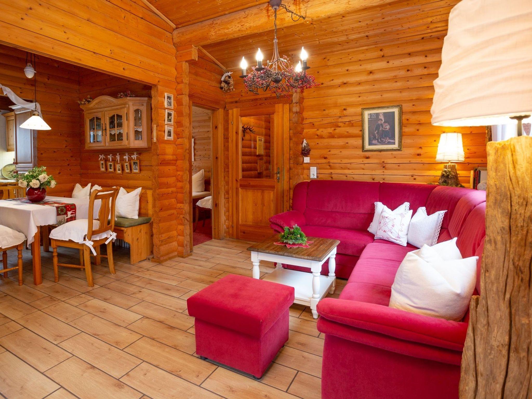 Appartement 1, Blockhaus, ca. 63 m², für 2 - 4 Personen, sehr komfortabel, liebevoll und individuell eingerichtet. 1 Wohnzimmer m. komfortable Schlafcouch, 2 Schlafzimmern, KÜ, DU/WC (Fön), Balkon (16 m²)