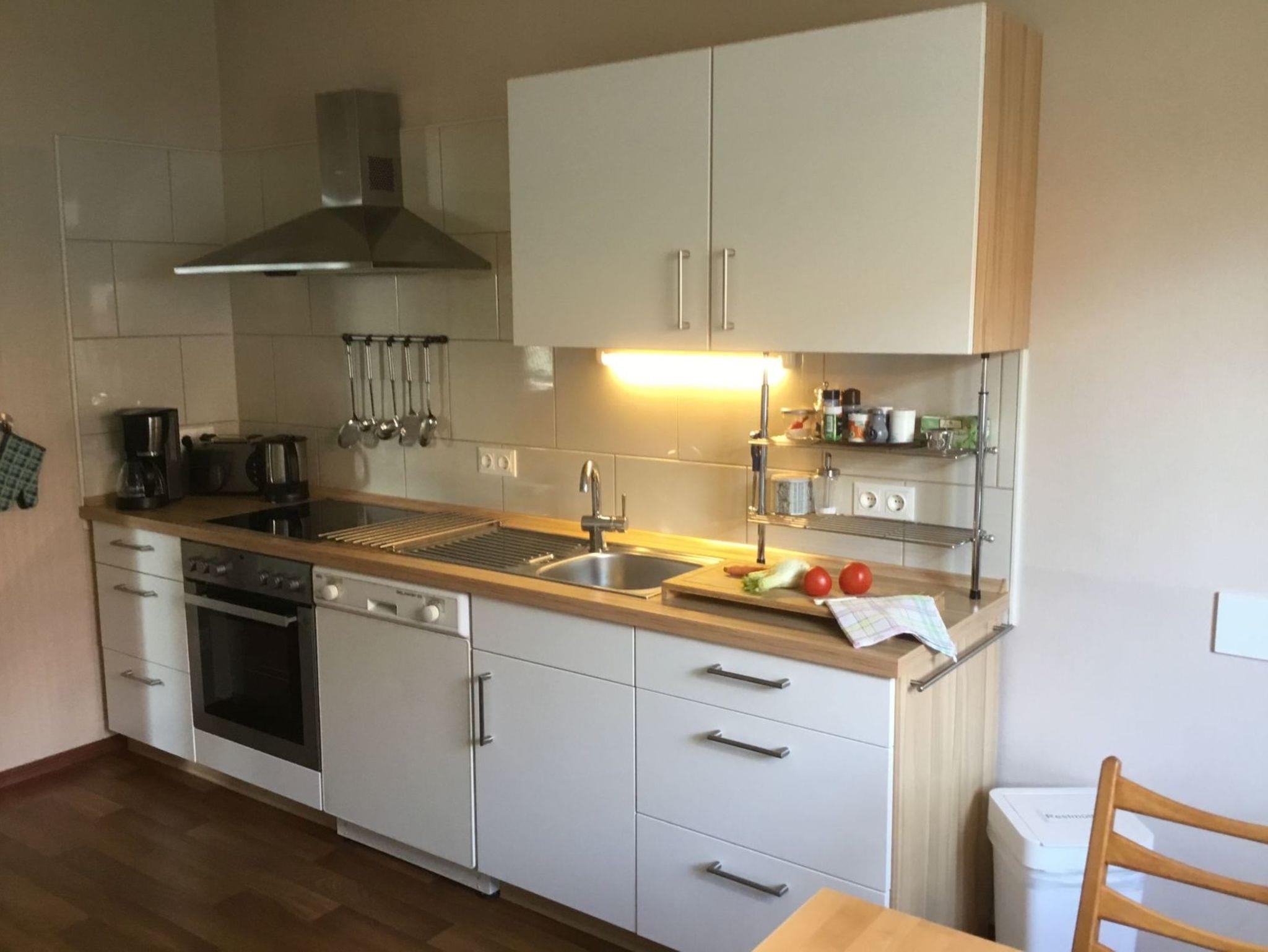 Die Einbauküchen sind mit 2 Elektroplatten, Kühlschrank, Mikrowelle,Toaster, Wasserkocher und Kaffeemaschine. Die Wohnung 4 verfügt über eine voll ausgestattete Wohnküche mit Geschirrspüler.