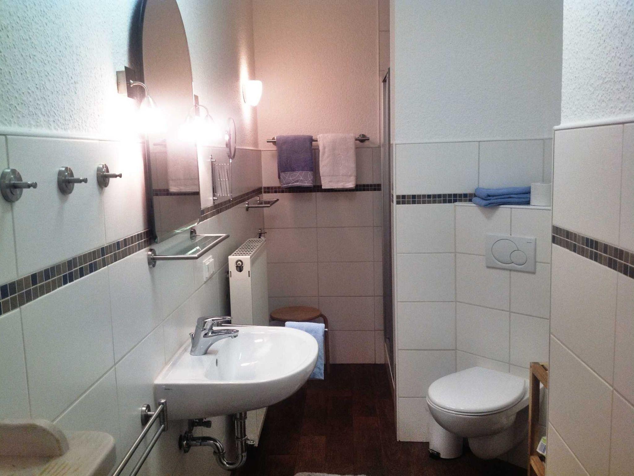 Appartement 4 ist eine ausgewachsene Wohnung (ca. 100 qm) mit zwei Schlafzimmern, zwei Duschbädern jeweils mit WC, einer großzügigen Wohnküche und einem großem Wohnzimmer. Die Ausstattung entspricht dem gehobenen Niveau des gesamten Hauses.