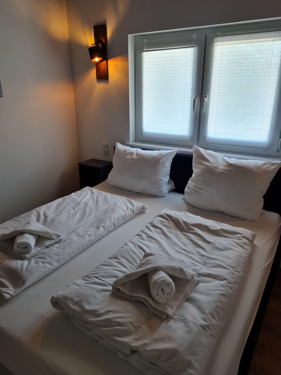 Es bietet viel Platz für 8 Personen. Das Haus verfügt über insgesamt 4 Schlafzimmer. 2 Schlafzimmer verfügen jeweils über ein Boxspringbett, Kleiderschrank und Fernseher. Zwei Schlafzimmer verfügen über jeweils ein Etagenbett mit Schrank, Kommode und Fernseher. Zusätzlich verfügt ein Schlafzimmer über ein Baby Reisebettchen.