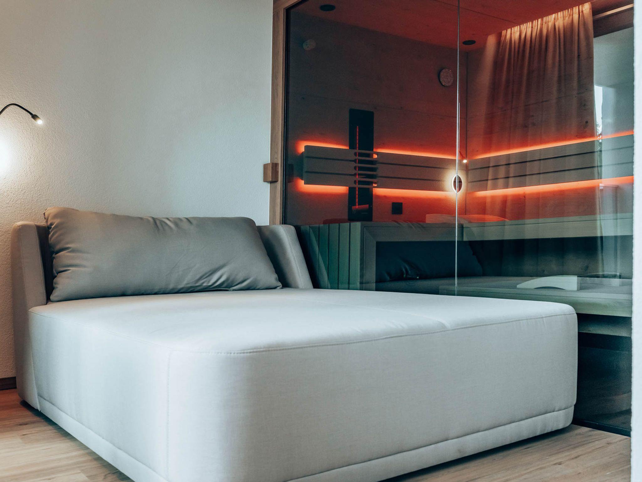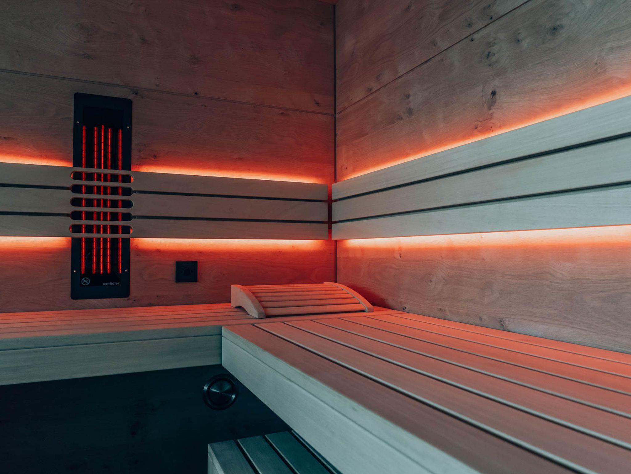 Hier treffen Design und Entspannung auf höchstem Niveau zusammen. Ihre private Sauna, die Ruhezone mit Musiksystem und hochwertige Einrichtung schaffen einen Ort, der Körper und Geist wieder in Einklang bringt. Ideal für Erholungssuchende mit Sinn für Exklusivität.