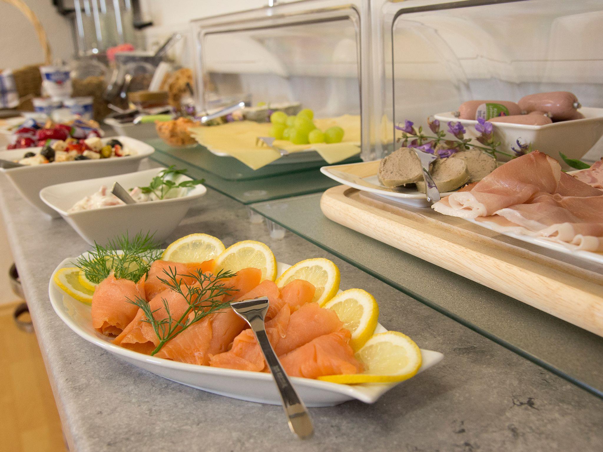 Ein gutes Frühstück ist der ideale Start in einen neuen Tag. Stärken Sie sich morgens an einem Buffet mit einem frischen Kaffee, Säften und einer Auswahl an frischen Back- und Wurstwaren, Käse, Marmeladen, frisch zubereitete Eierspeisen oder frischem Obst.