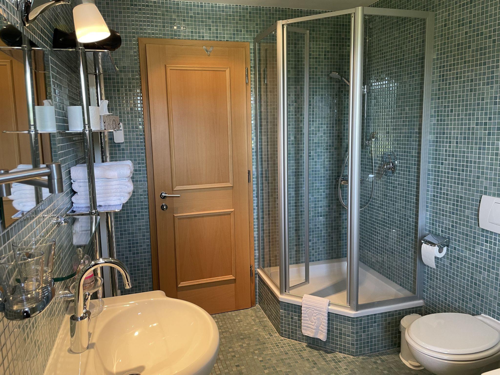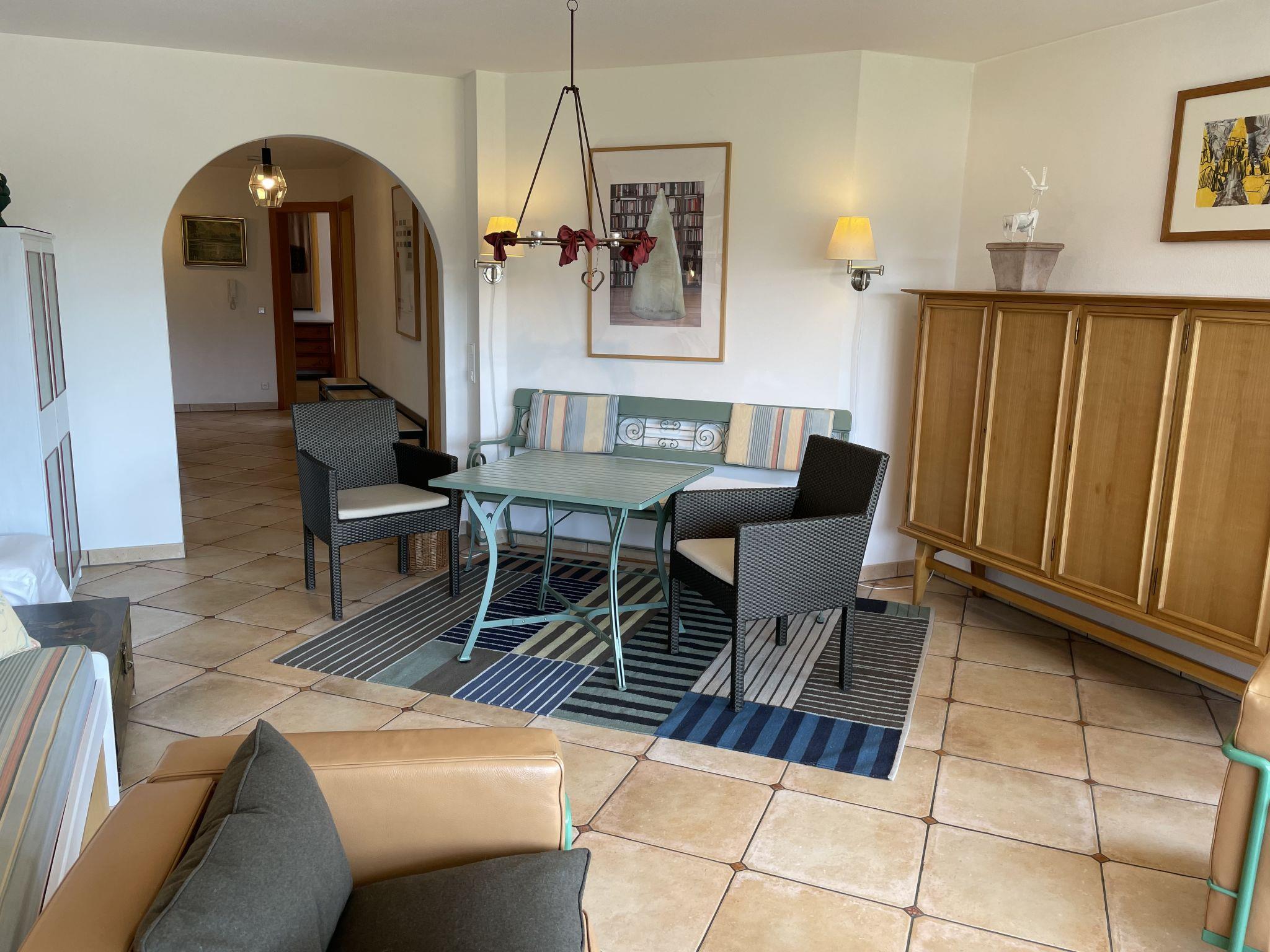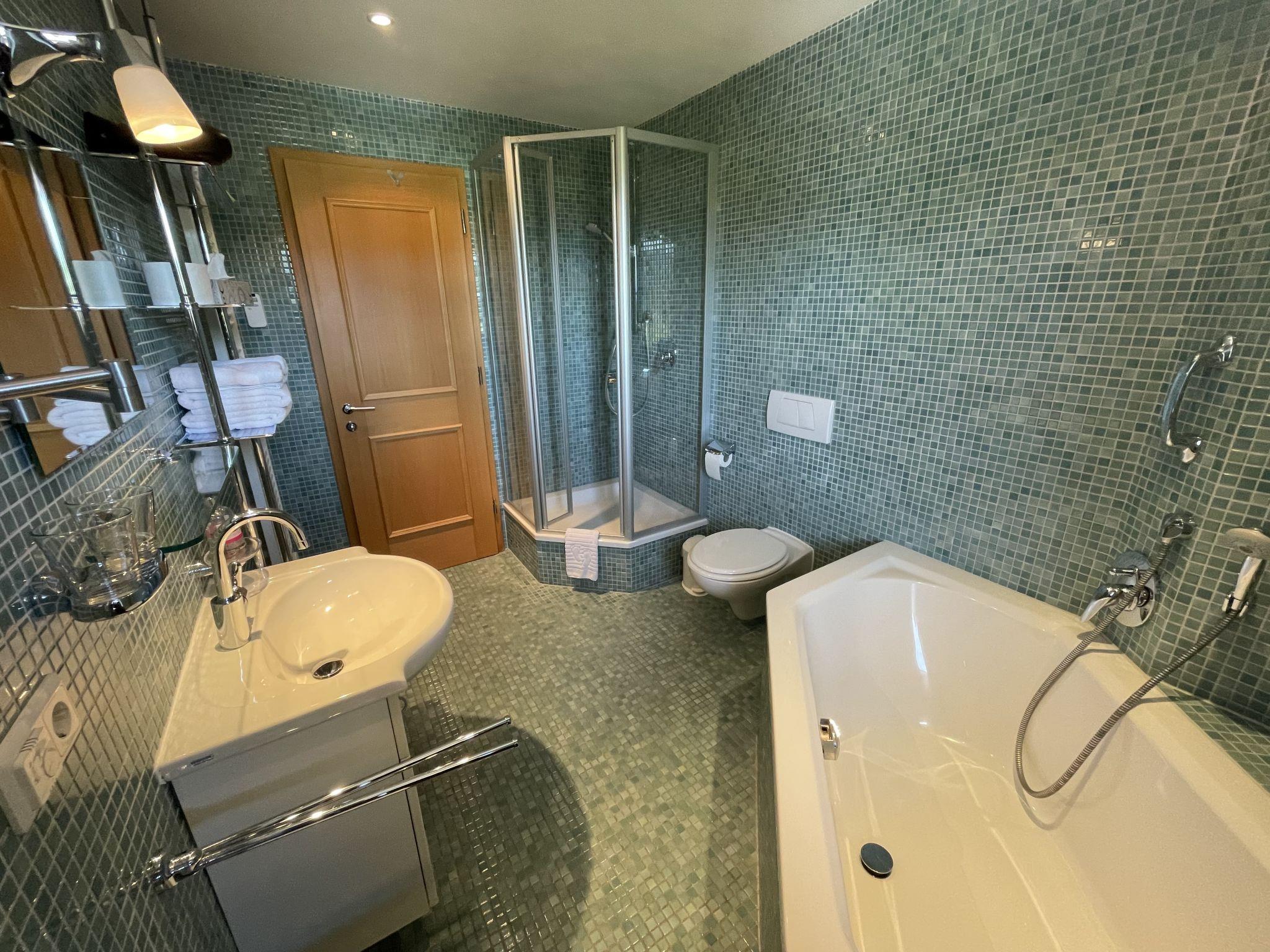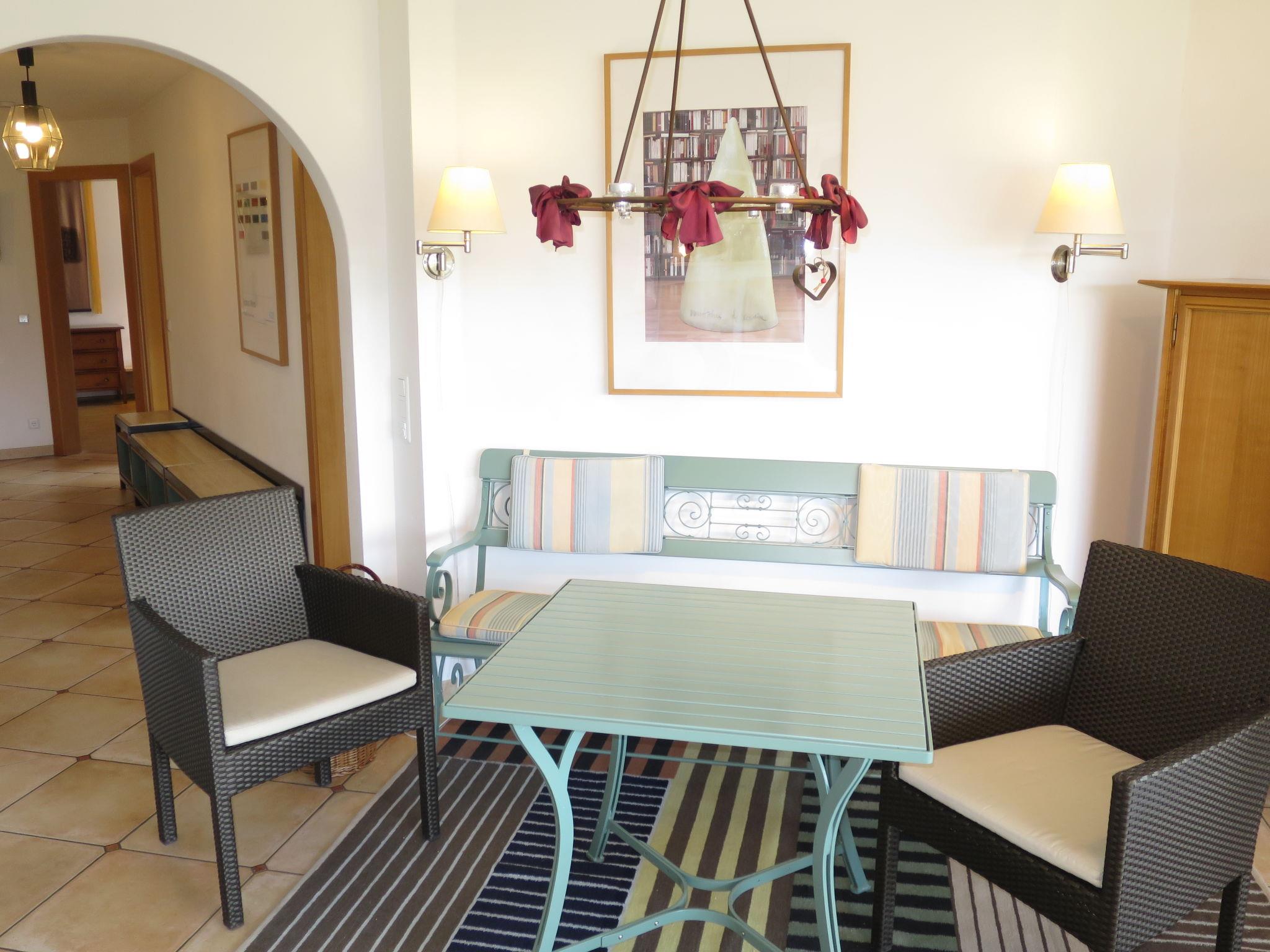 3-room apartment 92 m2 on 1st floor. Modern and stylish furnishings: living room with cable TV (flat screen), DVD. Exit to the balcony. 1 room with 2 beds. 1 double bedroom. Kitchen (oven, dishwasher, microwave, electric coffee machine) with dining table. Shower/WC, bath/shower/WC. Floor heating. Balcony 16 m2, south facing position. Balcony furniture, barbecue. Very beautiful panoramic view of the mountains. Facilities: washing machine, dryer. Internet (WiFi, free). Please note: non-smokers only. High-quality equipment with parquet and terracotta floors as well as designer furniture. Kitchen with corner seat and W-LAN radio. Very nice panoramic view from the balcony on Karwendel, Stubai, Wetterstein Mountains and Zugspitze.