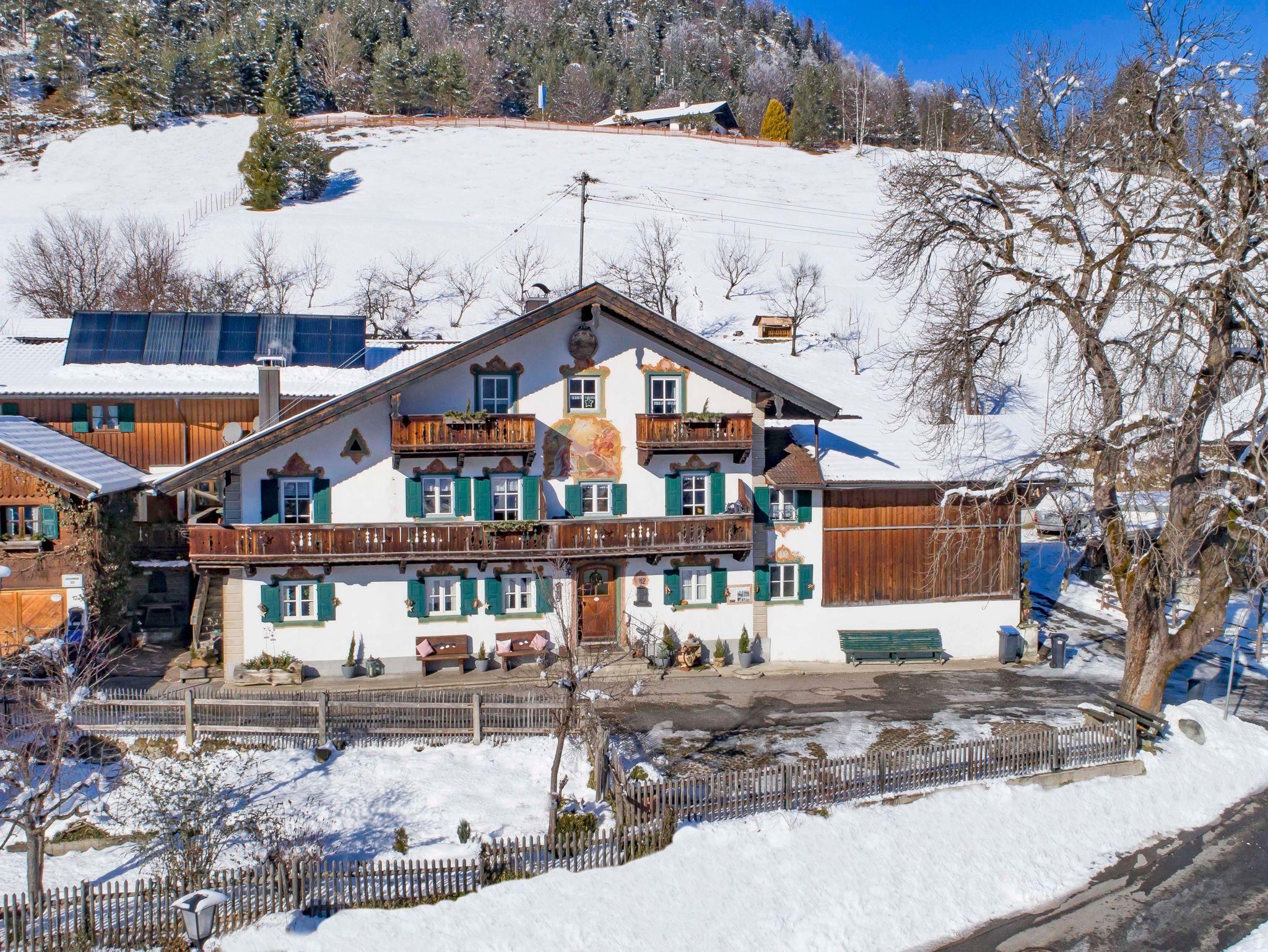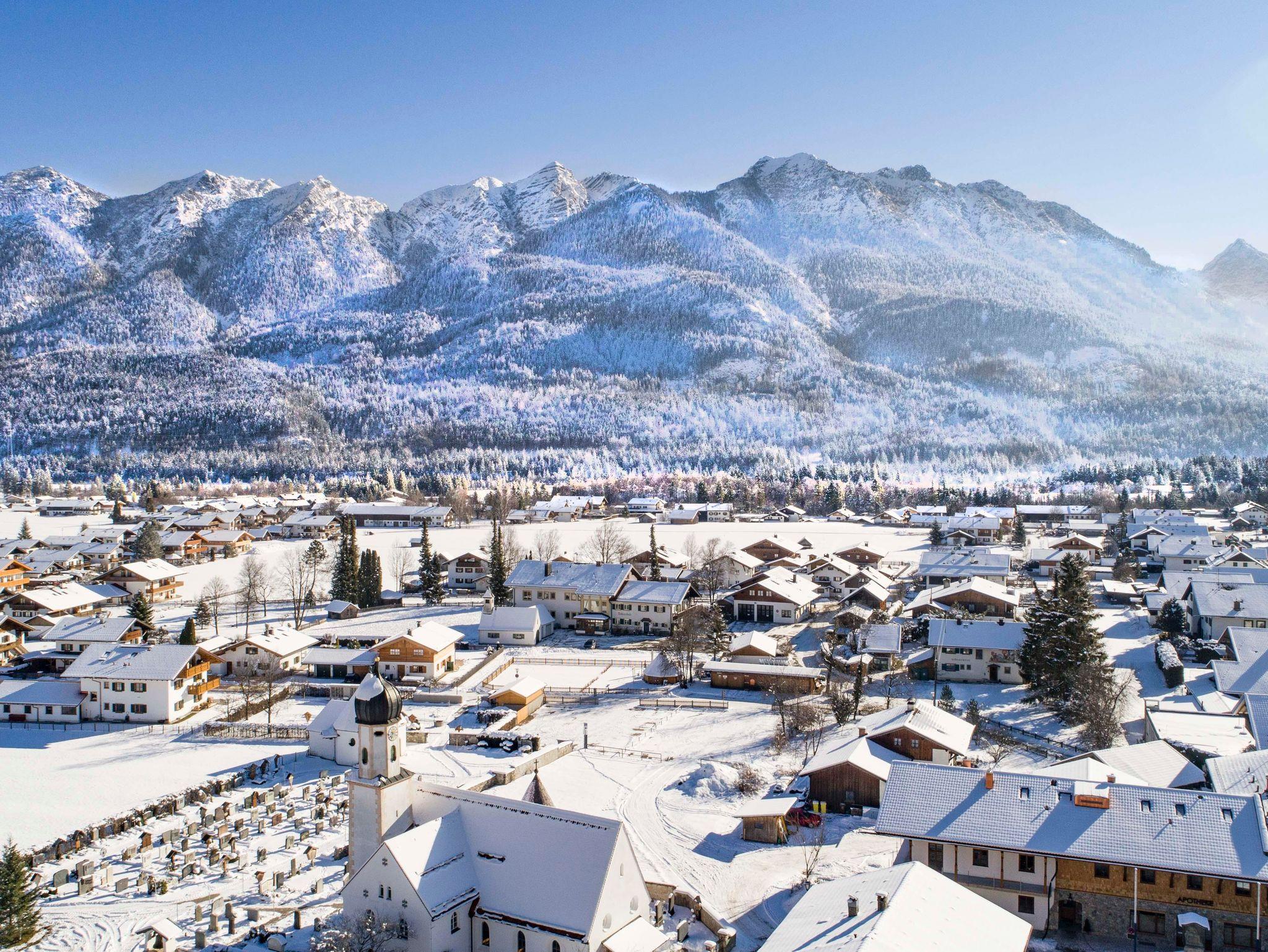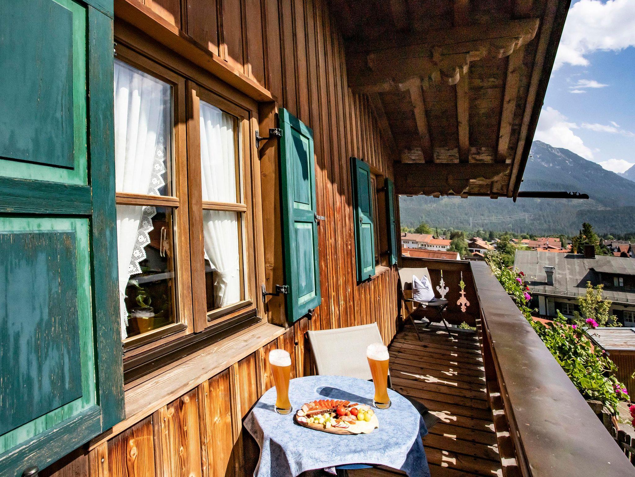 Die Ferienwohnung besticht durch ihren eigenen Eingang, edle Parkettböden und einen großzügigen Südbalkon mit einem atemberaubenden Blick auf das majestätische Karwendelgebirge. Hier können Sie sich zurücklehnen, die frische Bergluft einatmen und den Blick in die Ferne schweifen lassen.