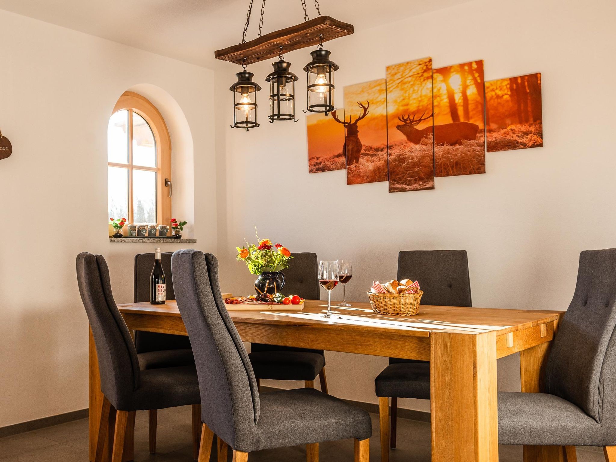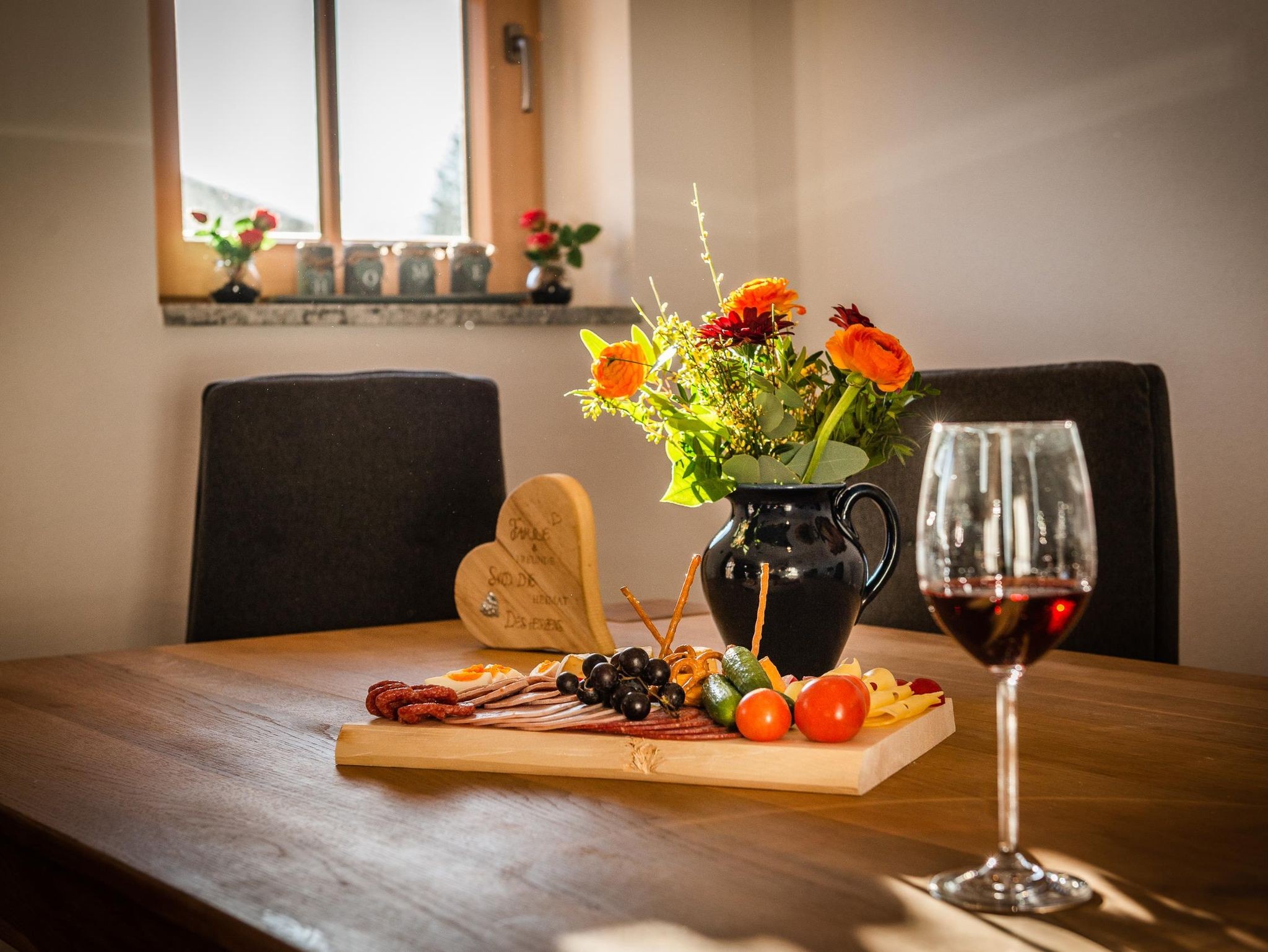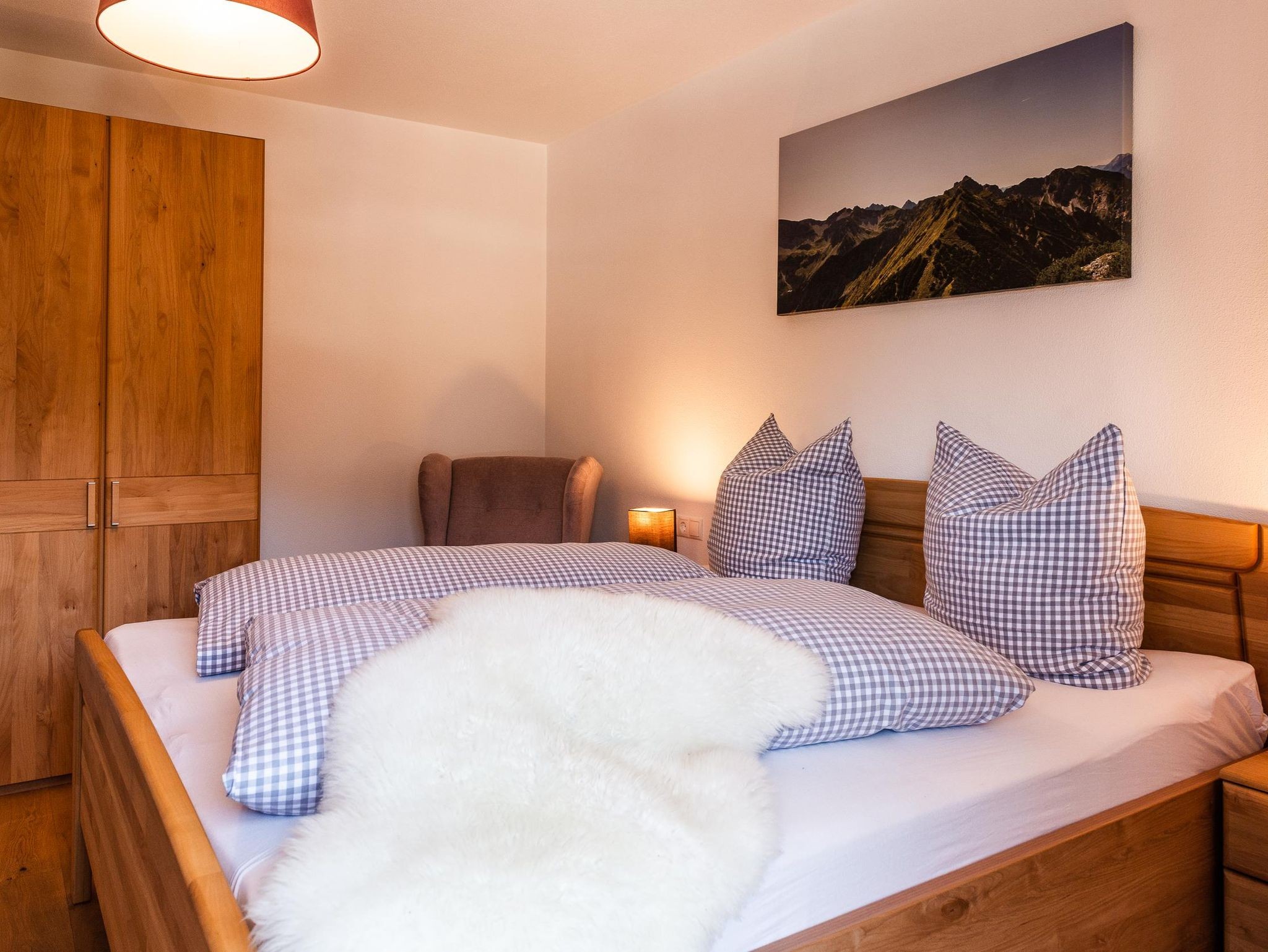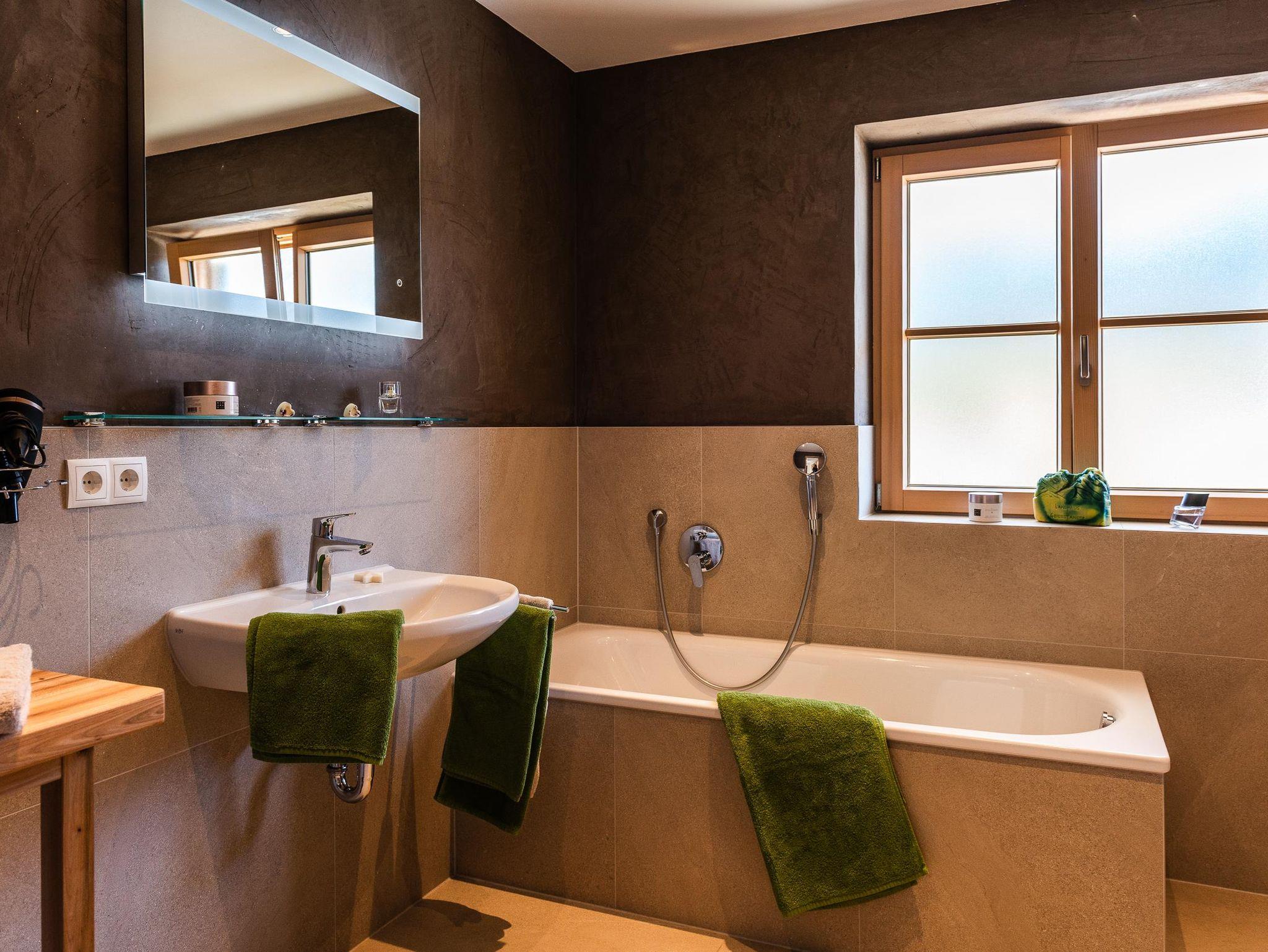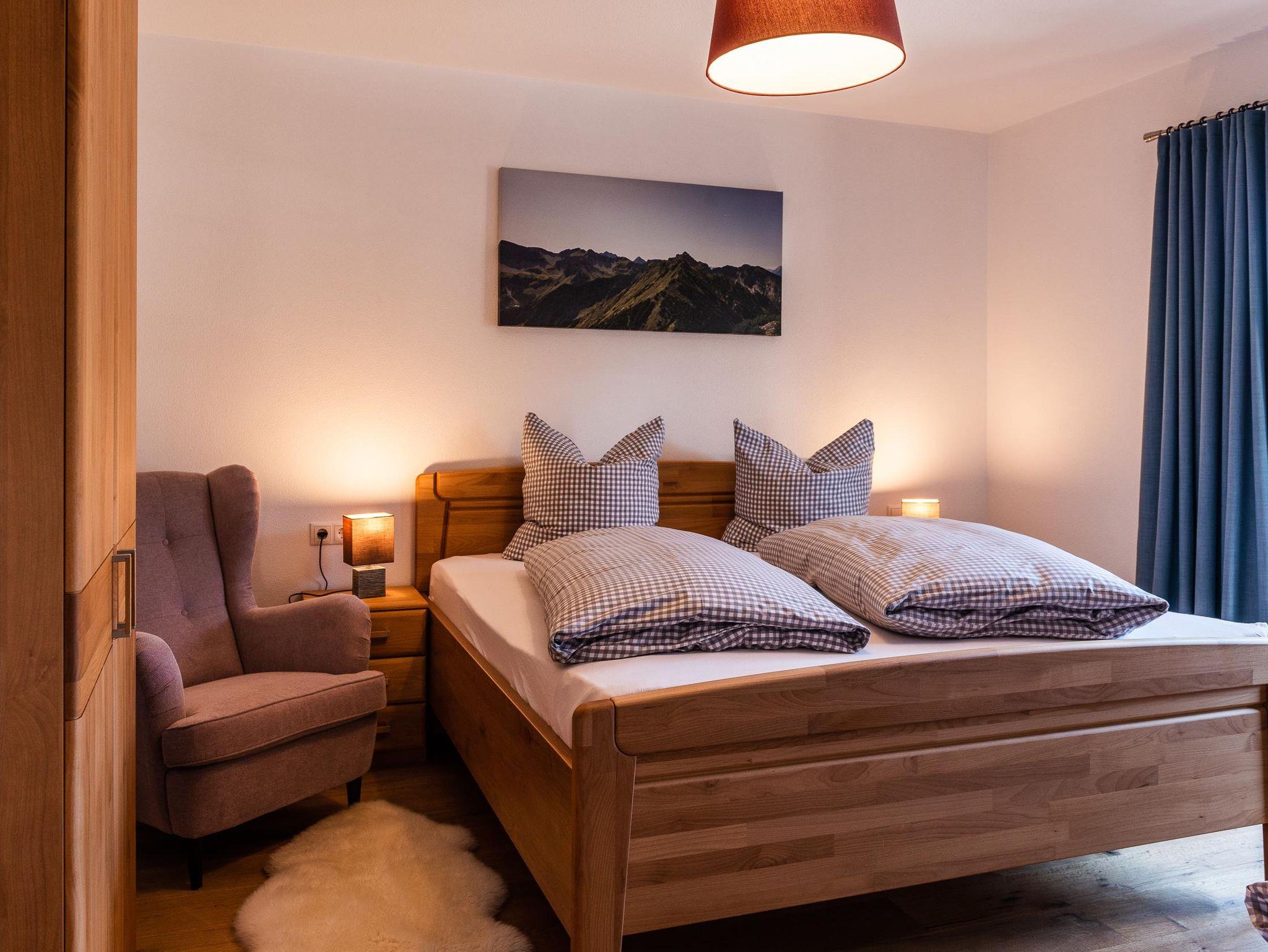 Unsere gemütliche und sehr hochwertig eingerichtet Ferienwohnung im Ländlichen Stil mit 90 m² Wohnfläche befindet sich im 1.Stock und bietet Platz für 1-5 Personen. Die komplett ausgestattete Wohnküche mit Geschirrspüler, Kühlschrank, Herd, Backofen, Wasserkocher und Kaffeemaschine lässt keine Wünsche offen, eine gemütliche Essgruppe rundet das Gesamtbild ab. Im Wohnzimmer befindet sich ein Flachbildfernseher, eine urige Bar und hat einen direkten Zugang zum großen Südost Balkon mit einzigartigem Blick auf das Karwendelgebirge. Die Ferienwohnung verfügt insgesamt über 2 Schlafzimmer, davon ein Schlafzimmer mit einem Doppelbett und ein Schlafzimmer mit einem Doppelbett und einem Einzelbett. Das barrierefreie Badezimmer verfügt über eine Dusche, Badewanne und ein WC. Bettwäsche, Handtücher, kostenfreie WLAN-Nutzung, Parkplatz und Endreinigung sind im Preis enthalten.