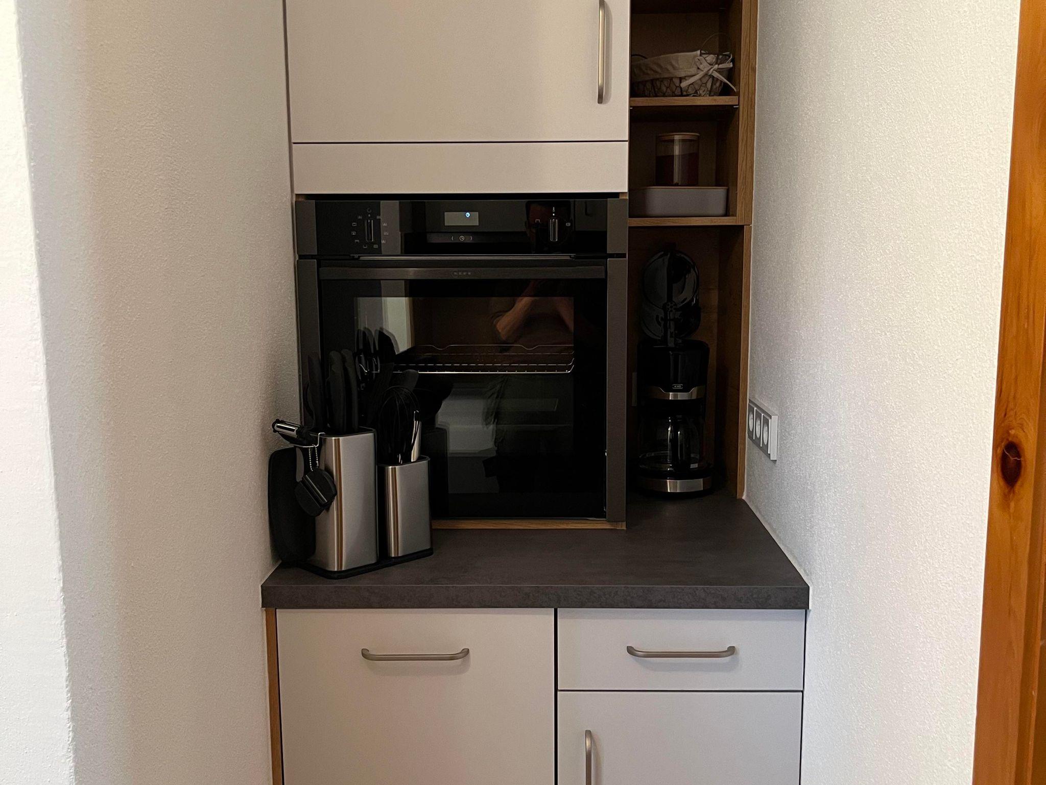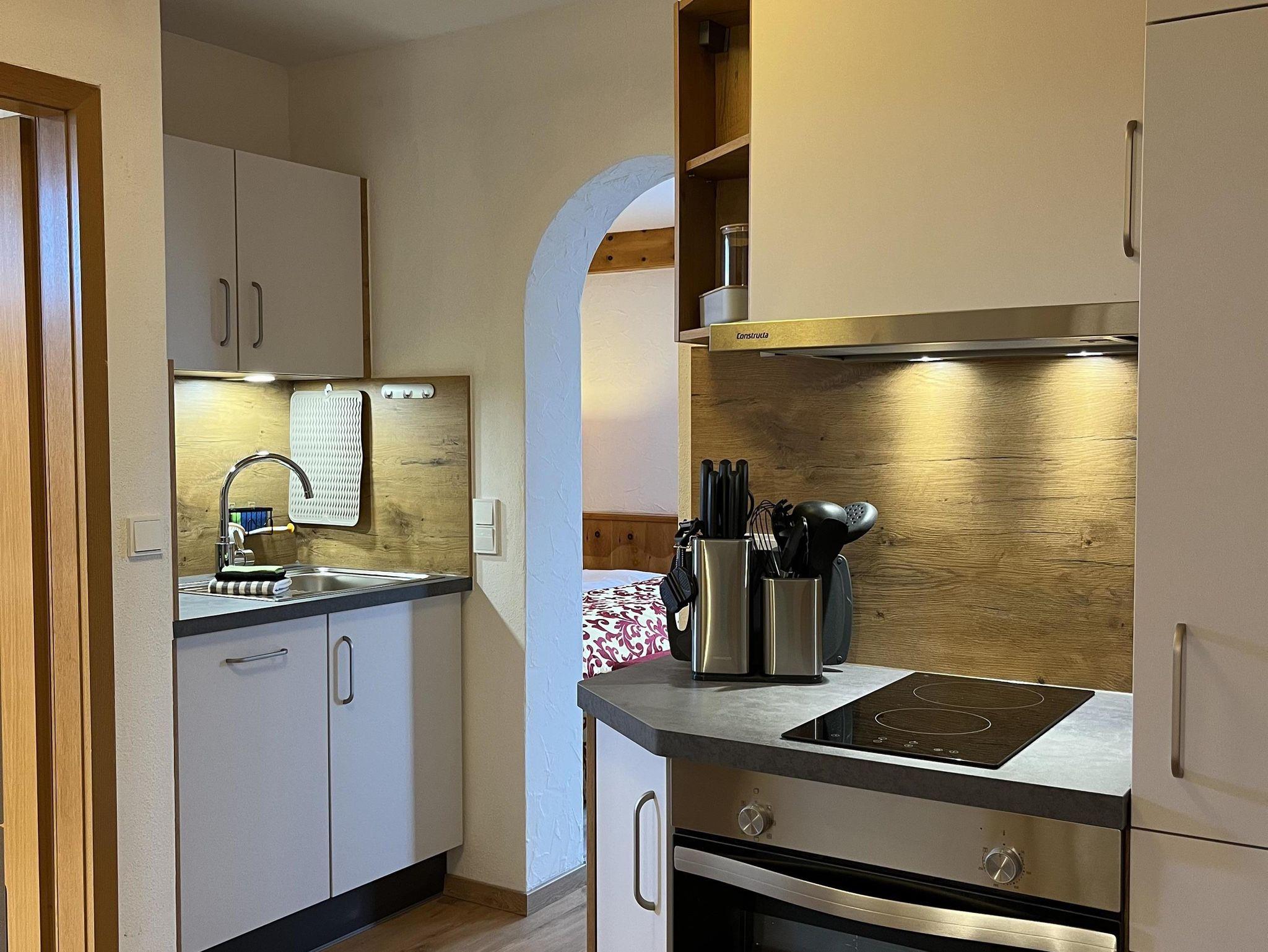 Das Studio-Appartement mit separater Küche ist um die 35m² gross und besitzt eine neue, voll ausgestattete Küche mit Kühlschrank, Backofen, Herd und Geschirrspüler. Das Bad verfügt über eine Dusche und Fenster. Der Wohn-Ess-Schlafbereich ist mit einem King-Size-Bett (2x2m), Esstisch und gemütlichen Sesseln ausgestattet. Internet-kompatibler TV mit Kabelanschluss, USB und HDMI sowie WLAN sind vorhanden. Es hat einen eigenen Balkon mit Sicht auf die grandiose Bergwelt. Das Studio-Appartement bietet Platz für max. 2 Personen.