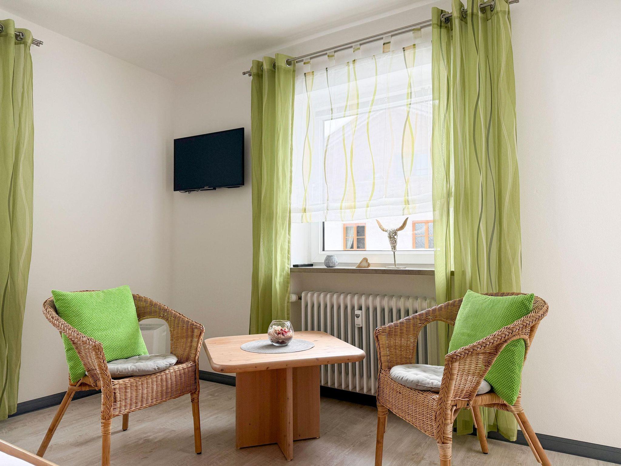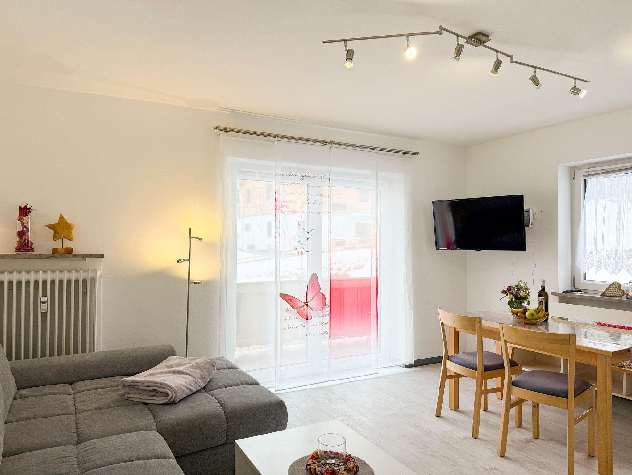 Herzlich Willkommen in unserer Nichtraucher-Ferienwohnung Karwendel*** Unsere moderne 50 qm-Wohnung im 1. OG Sie bietet Platz für 2 bis 3 Personen. Das schöne Bergpanorama können Sie vom sonnigem Südbalkon mit Balkonmöbel genießen. besteht aus einer modern eingerichteten, vollausgestatteten Wohnküche inkl. Geschirrspüler und Mikrowelle, Kaffee- und Nespressomaschine, einer Essecke, großer Ausziehcouch, Couchtisch, Stereoanlage und SAT-LCD-TV. Separates, gemütliches Schlafzimmer mit Doppelbett, Schrank mit Safe und SAT-LCD-TV. Bad mit Dusche/WC und Haartrockner, Handtücher, Toilettenpapier, Deo/Duschbad für Mann und Frau, Shampoo und Sonnenmilch, Wattepads/Ohrenstäbchen. Flur mit Garderobe, Spiegel und Schuhablage. Incl. WLAN, Handtücher, Bettwäsche, Endreinigung uvm. Excl. Kurtaxe. Bushaltestelle ist 1 Minute vom Haus entfernt.