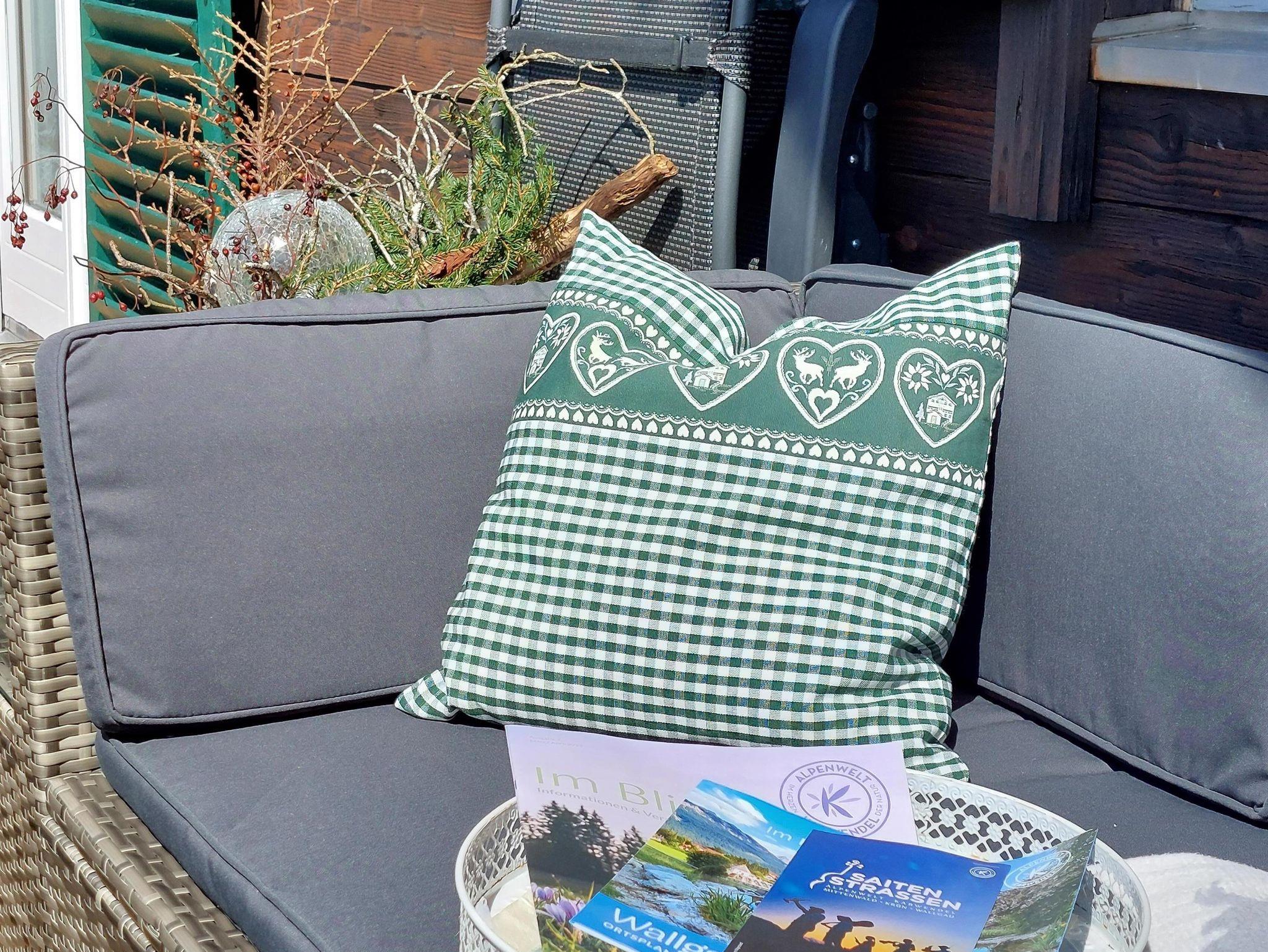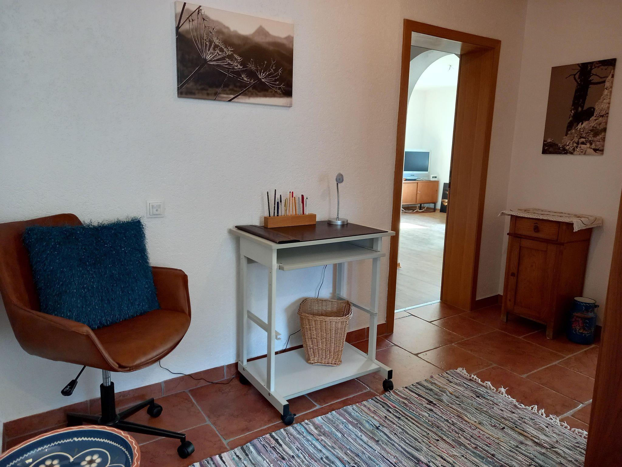 Die 60 qm große, individuell eingerichtete Ferienwohnung verfügt über ein separates, alpenländisch eingerichtetes Schlafzimmer, das Wohn-/ Koch- / Eßzimmer ist liebevoll mit Familienerbstücken möbliert, die Schlafcouch kann ggfs. für 2 weitere Gäste genutzt werden. Moderne Elemente und zwei gemütliche Arbeitsbereiche runden die heimelige Atmosphäre ab. Praktische Vorrichtungen wie leistungsstarkes Wlan, 2 Fernseher, Toaster, Kaffeemaschinen, Bett- / Tischwäsche, Handtücher, Spielesammlungen und kleine Spielgeräte lassen Sie den Ferien-/ oder Homeofficeaufenthalt einfach organisieren.
