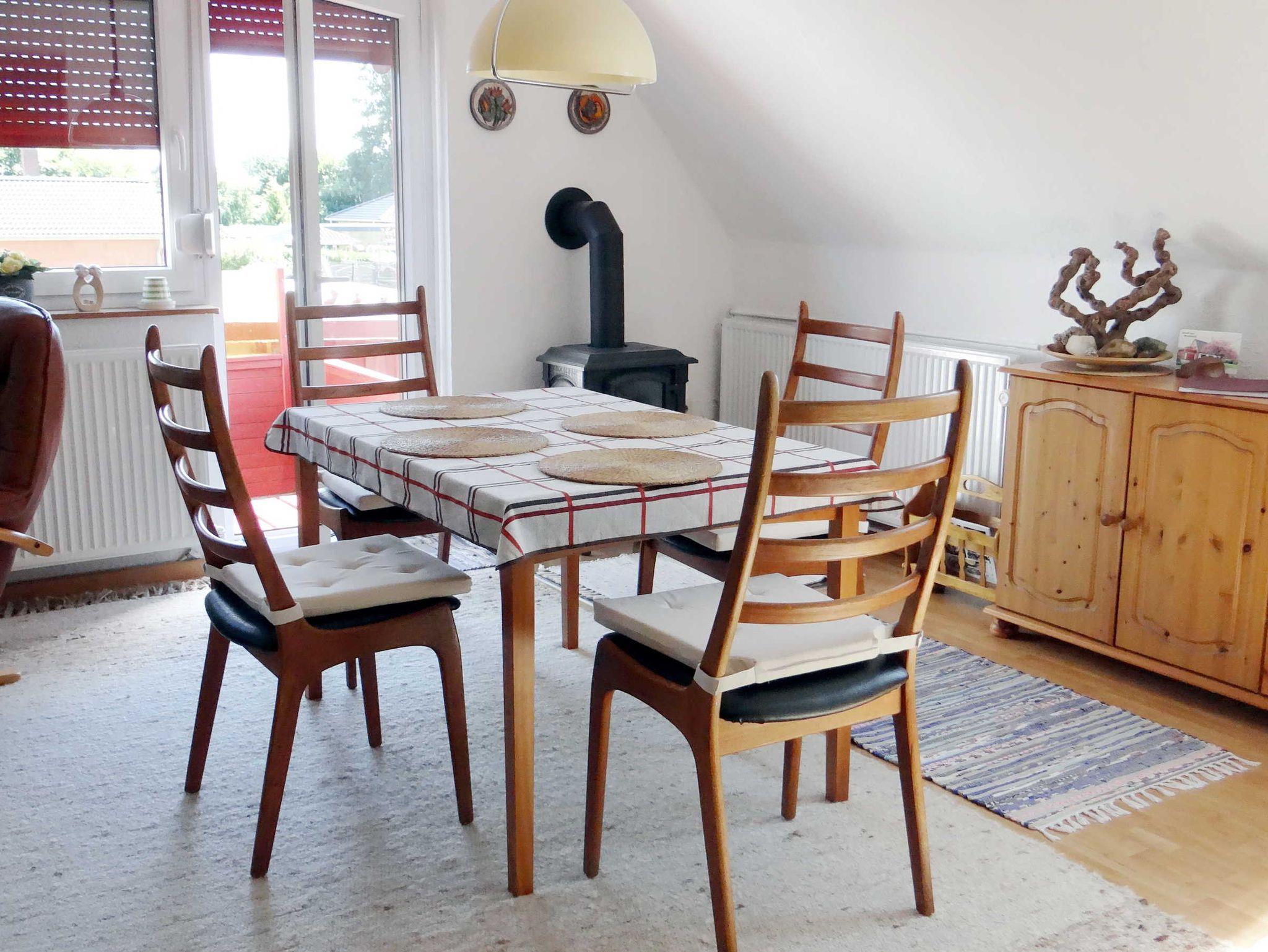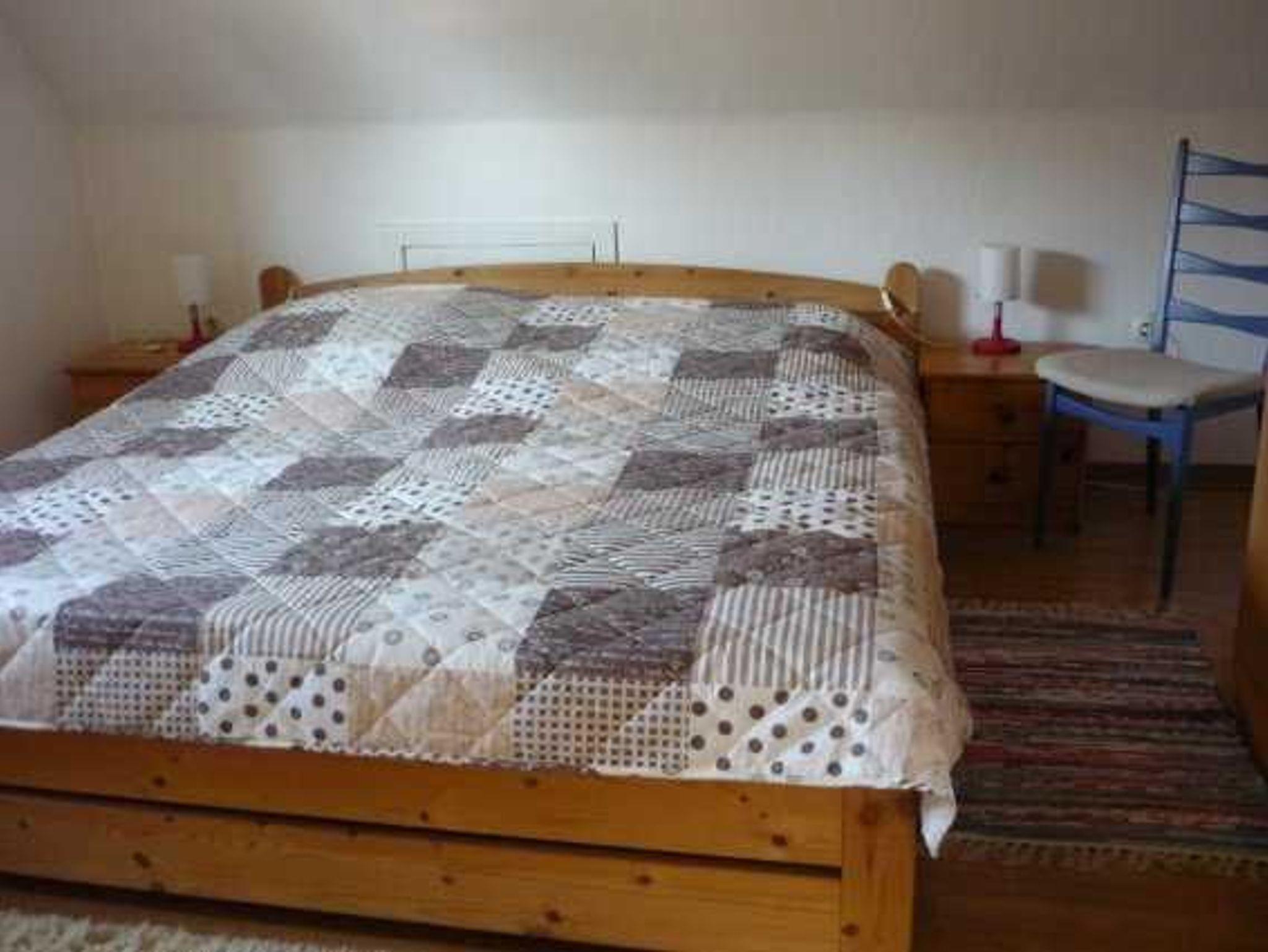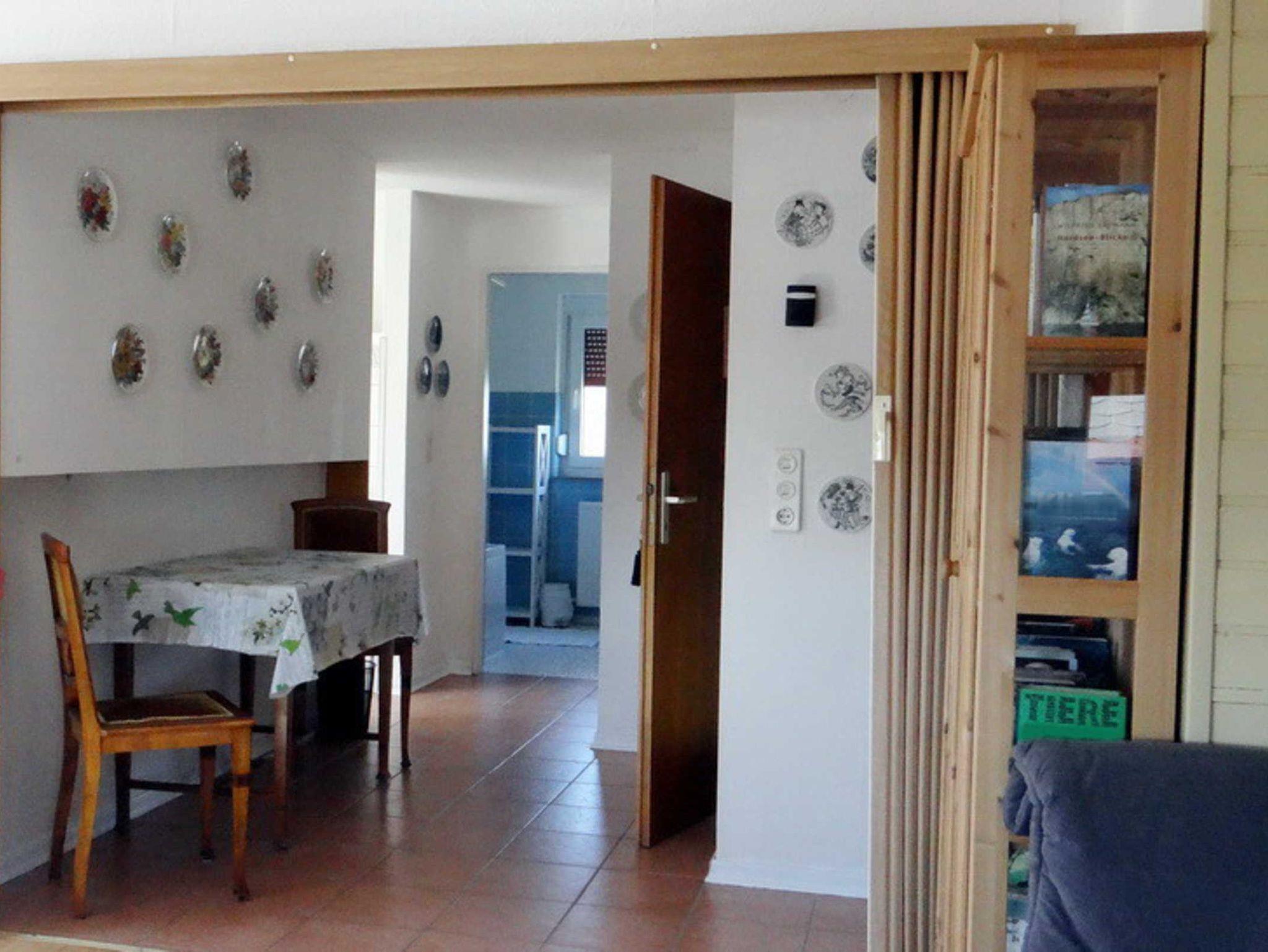 Die gemütliche Ferienwohnung ist ca. 60 qm groß, liegt im Obergeschoss eines Einfamilienhauses und hat eine möblierte Dachterrasse. Die Wohnung besteht aus einem Wohnraum mit Sitz- und Essecke, einer offenen Küche, einem Schlafzimmer mit Doppelbett und einem Wannenbad mit Duschmöglichkeit. Das 2. Schlafzimmer mit zwei Einzelbetten ist über eine Raumspartreppe im Dachgeschoss erreichbar - für Kleinkinder nicht geeignet. Die Wohnung ist gemütlich und sauber und die Gastgeberin sehr freundlich. Im Mietpreis inklusive sind Bettwäsche, Handtücher und die Energiekosten, die Endreinigung wird mit einer Pauschale gesondert berechnet.