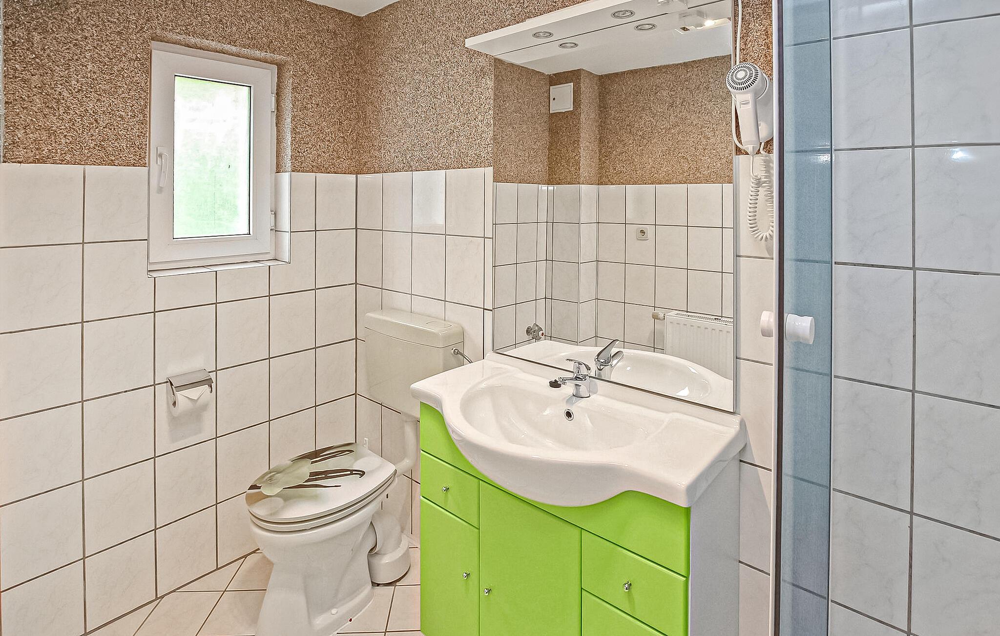 Badeværelse (nr. 1) - WC. Varmt og koldt vand. Bruser