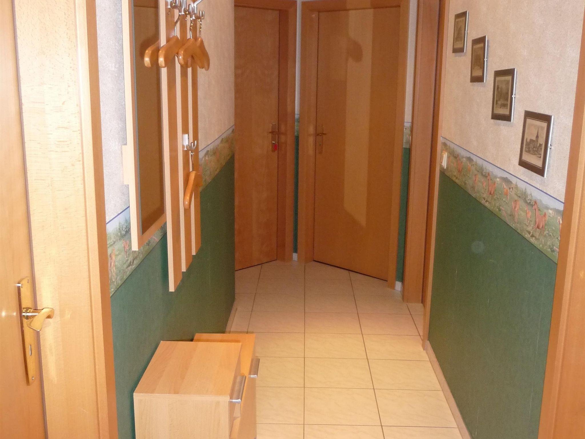 Ihre Unterkunft befindet sich im ersten Stock des Haupthauses. Durch das separate Treppenhaus gelangen Sie zu Ihrer Ferienwohnung. Die Wohnung hat eine Fläche von 74 qm. Vom Flur aus gelangen Sie in die vollausgestatte Küche. Hier finden Sie alles was Sie zum Kochen und Backen benötigen. Sogar eine Spülmaschine ist Teil der Einrichtung. Beim Essen können Sie wählen, ob Sie dies in der Küche tun wollen oder ob Sie dies doch lieber am großen Tisch im lichtdurchfluteten Esszimmer möchten. Im Wohnzimmer können Sie es sich auf dem Sofa gemütlich machen und bei schlechtem Wetter einfach mal Ihre Lieblingsserie oder einen Film auf dem großen Flachbildfernseher genießen. Das Tageslichtbad ist mit allem ausgestattet, was man zum Wohlfühlen braucht. An das Bad schließt sich ein geräumiges Schlafzimmer mit Doppelbett und großem Kleiderschrank an. Direkt daneben befindet sich ein weiteres Schlafzimmer mit zwei Einzelbetten und Kleiderschrank. Von hieraus gelangen Sie in das separate Spielzimmer. Hier können die Kinder ungestört spielen und toben. Alle Zimmer, außer das Spielzimmer sind mit Rollläden ausgestattet und können verdunkelt werden. Im Garten steht eine separate überdachte Terrasse mit großem Grill für Sie bereit. Ihr Auto können Sie auf Wunsch in einen Carport unterstellen. Weiterhin finden Sie einen großen Spielplatz, der gerne mitbenutzt werden kann.
