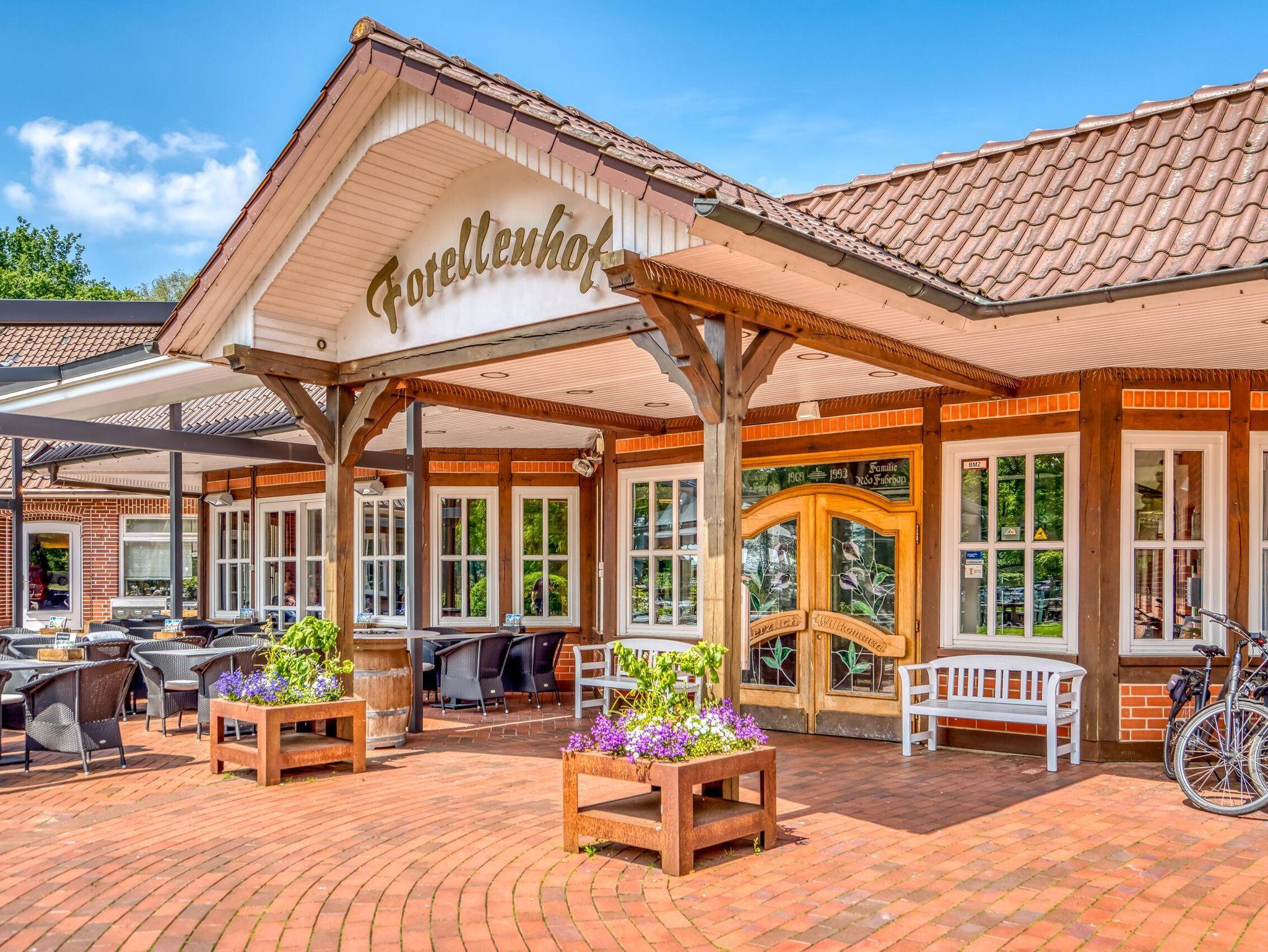 Gastlichkeit durch' s ganze Jahr! Ruhe und Entspannung - zwei unschätzbare Werte unserer Zeit. Wir möchten Ihnen mit unserem Haus, dem Forellenhof Walsrode - ein Familienbetrieb mit viel Tradition, als Quelle neuer Energien und Tatendrang dienen. In ländlicher Idylle und komfortablem Ambiente. Aktiv faulenzen und erholen. Prasselndes Kaminfeuer, wohlige Saunawärme, ein Hauch von Luxus, unvergessliche Stunden voll Lebensfreude, kulturelle Erlebnisse, Radwander-Touren durch unberührte Natur und professionell ausgearbeitete Ferien-Programme. Wir machen selbst das scheinbar Unmögliche für unsere Gäste möglich. Erleben Sie die Vier Jahreszeiten in unserer Hotellerie und Gastronomie in der schönsten Gegend Norddeutschlands. 121 Hotelbetten im Haupt- und Gästehaus, u. a. eine Hochzeitssuite; 3 Ferienwohnungen; div. Seminarräume für bis zu 450 Personen, alle notwendige, technische Tagungstechnik; Banketträume, großer Saal mit Bühne; großzügiges, gemütliches Restaurant mit großer Außenterrasse; rustikale Schnuckenstube an der hauseigenen Brauerei mit Biergarten; individuelle Arrangements für Übernachtungen; Hochzeitskutsche; Planung und Ausführung touristischer Arrangements bis hin zu den beliebten Kutschfahrten. Kostenfreie Nutzung des Wellnessbereichs mit finnischer Sauna, Biosauna und Fitnessgeräten, Leihfahrräder, Kinderspielplatz am Hotel, behindertenfreundliche Zimmer, stufenloser Hotel- und Restaurantbereich. Das Hotel Forellenhof ist bekannt für seine professionelle Ausrichtung von Tagungen und Seminaren und Firmen-Events aller Art. Wir haben u. a. die spezielle Technik für Produktpräsentationen. Auch Outdoor-Tagungen und Rahmenprogramme für Tagungen und Seminare sind immer wieder eine kreative Herausforderung, der wir uns gerne stellen. Für Bankette - von rustikal bis exklusiv - und für die hervorragende Ausrichtung von Hochzeiten und anderen Feierlichkeiten hat der Forellenhof das professionelle Know How und einen erstklassigen Ruf im weiten Umland. In unserem stilvollen Restaurant - Spezialitäten der Region erforschen - wir servieren Saisonales aus Küche und Keller - trinken Sie ein zünftiges, erfrischendes Schnuckenbräu-Bier aus der hauseigenen Brauerei in unserer Kutscherdiele - lassen Sie sich von unserem Service auf unserer Sonnen-Café-Terrasse am Fontänenteich mit Kaffee und Kuchen verwöhnen - wir sind an 365 Tagen für Sie da! Herzlich willkommen - Ihre Familie Fuhrhop.