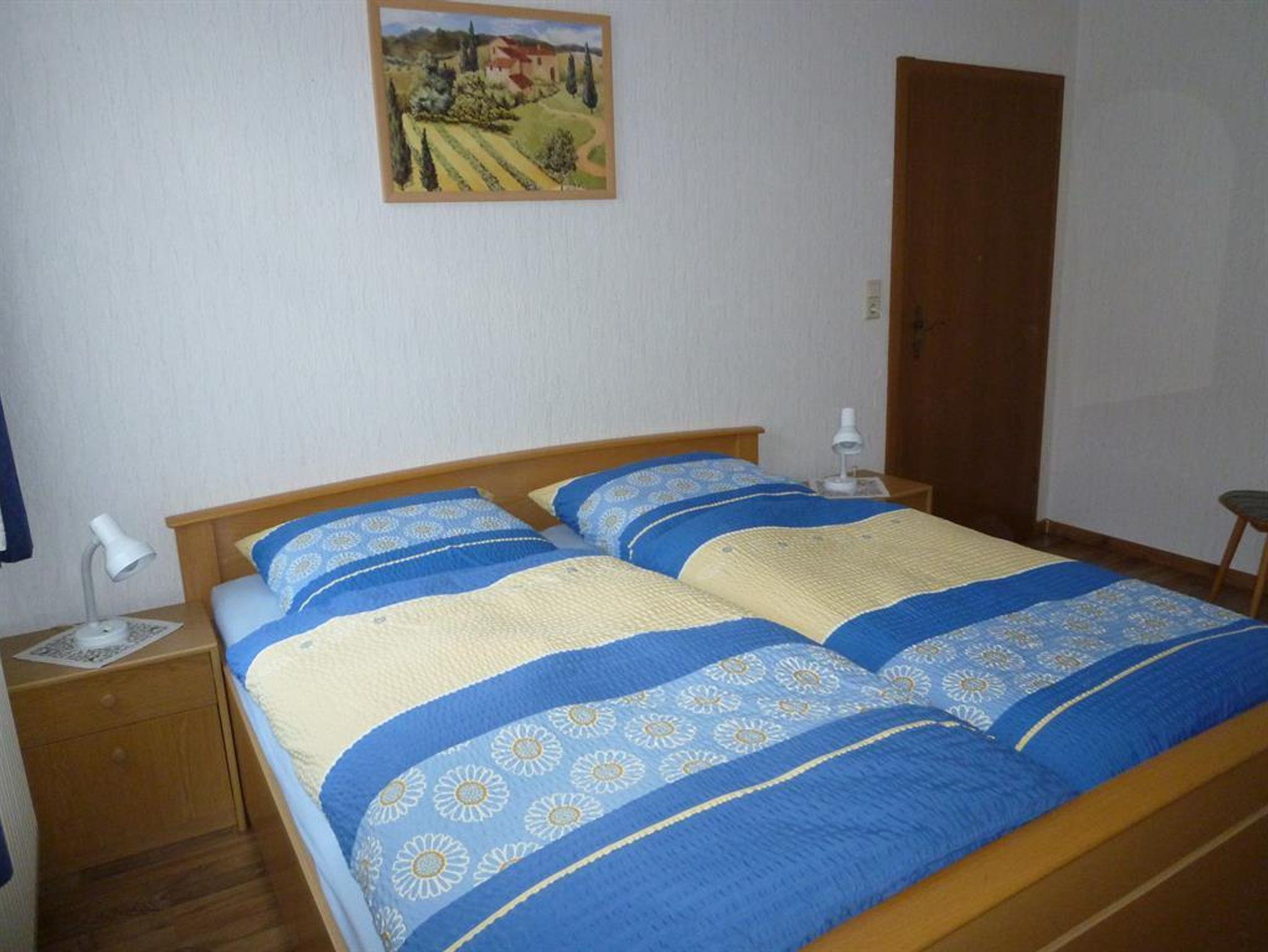 Separater Eingang, eine Ferienwohnung für zwei bis drei Personen, 1 Babybett im EG, und eine weitere Ferienwohnung für zwei bis drei Personen, 1 Baby im OG.