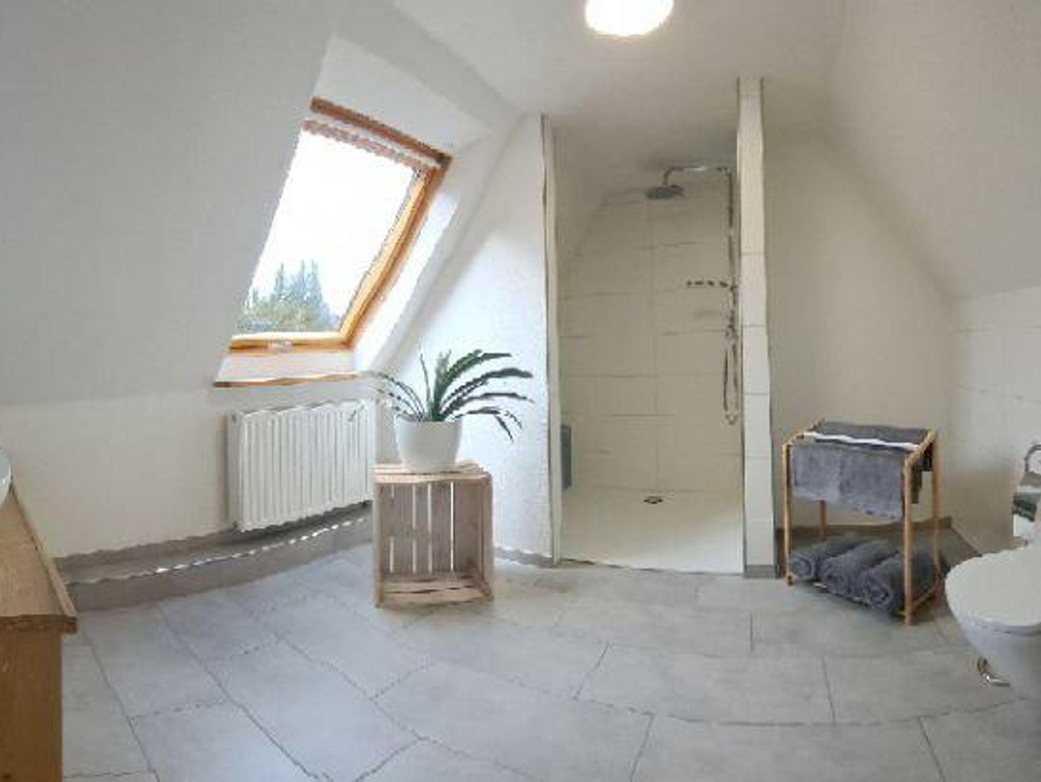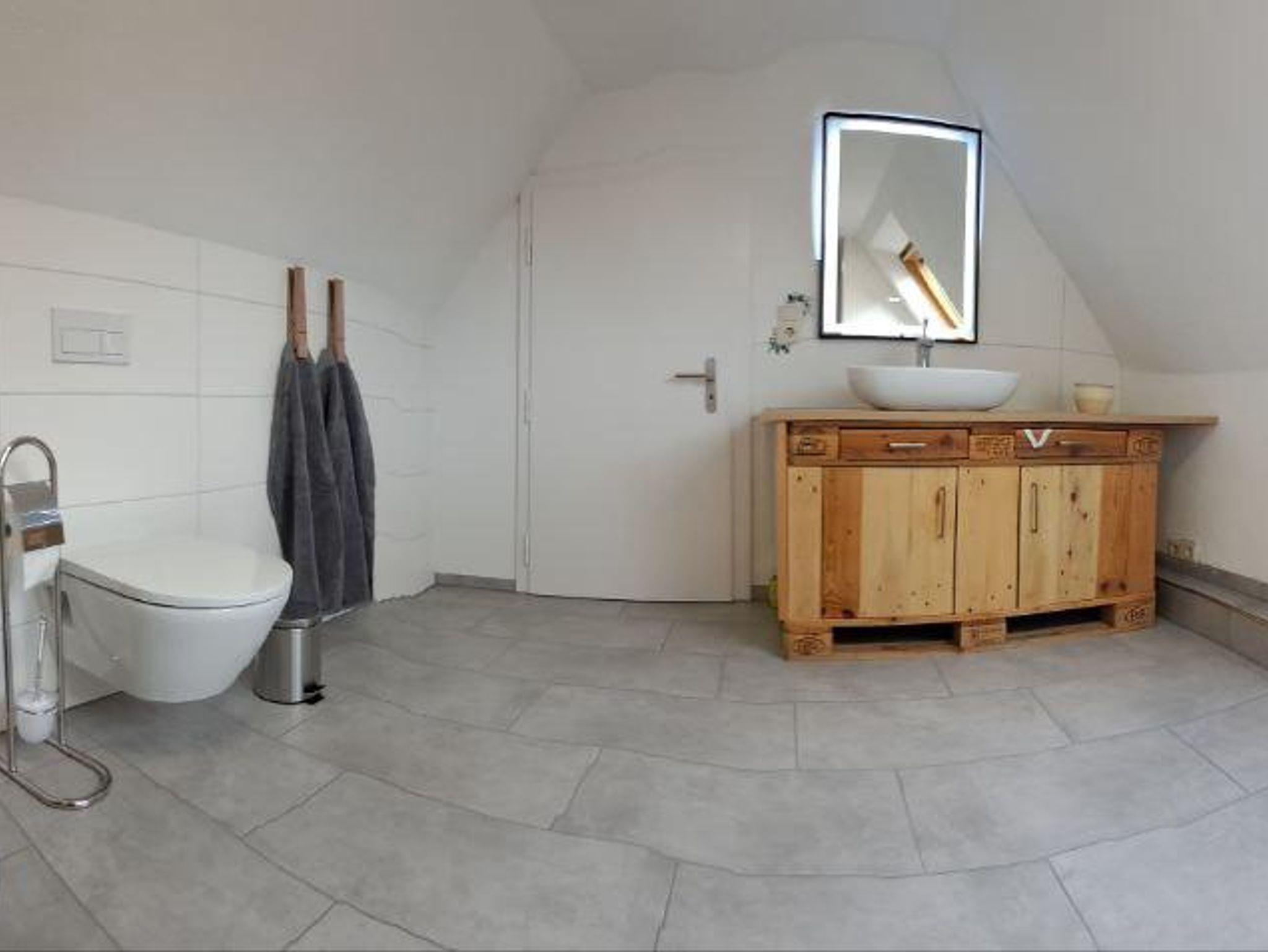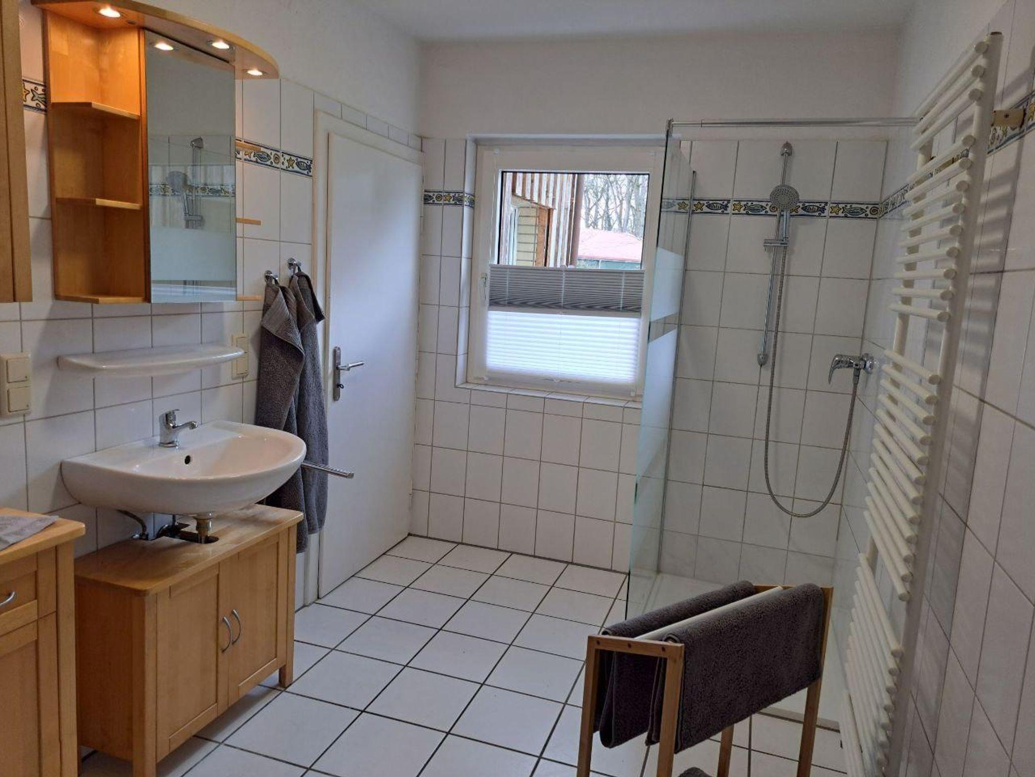 Das Haus ist gemütlich eingerichtet. Die Küche hat eine allumfassende Ausstattung, so dass man sich dort betätigen kann, als wäre man zu Hause. Von den 4 Schlafzimmern mit je 2 Betten, können in 3 Zimmern nach Absprache die Betten getrennt oder zusammen aufgestellt werden. Zwei von vier Schlafzimmern sind mit Fernseher ausgestattet. Die verschiedenen Badezimmer sind Wohlfühloasen, da der Gastgeber mit Herzblut Fliesologe ist. Beide Badezimmer verfügen über eine ebenerdige Dusche. Zusätzlich zu dem einen Badezimmer im Obergeschoss befindet sich dort noch ein separates WC. Desweiteren hat das Obergeschoss einen ca. 7qm großen Balkon.