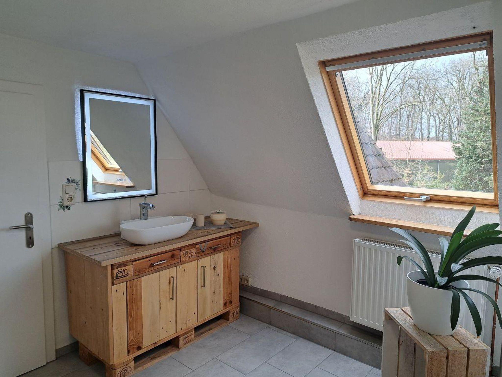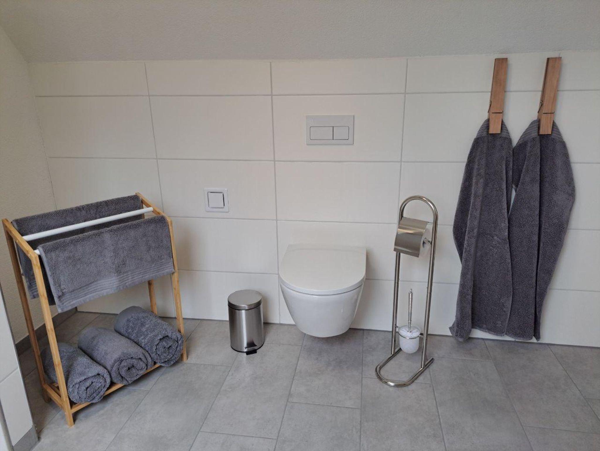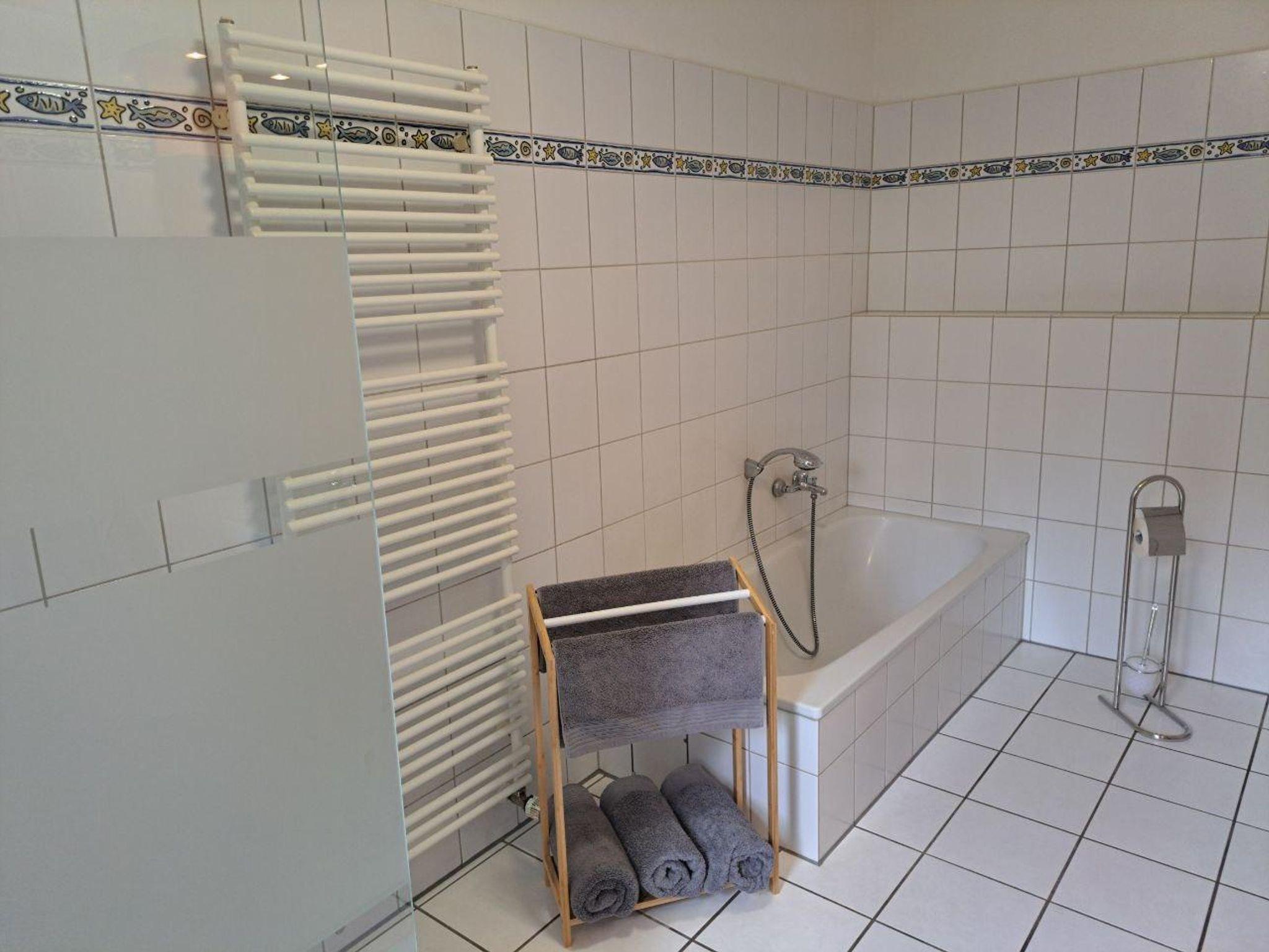 Das Haus ist gemütlich eingerichtet. Die Küche hat eine allumfassende Ausstattung, so dass man sich dort betätigen kann, als wäre man zu Hause. Von den 4 Schlafzimmern mit je 2 Betten, können in 3 Zimmern nach Absprache die Betten getrennt oder zusammen aufgestellt werden. Zwei von vier Schlafzimmern sind mit Fernseher ausgestattet. Die verschiedenen Badezimmer sind Wohlfühloasen, da der Gastgeber mit Herzblut Fliesologe ist. Beide Badezimmer verfügen über eine ebenerdige Dusche. Zusätzlich zu dem einen Badezimmer im Obergeschoss befindet sich dort noch ein separates WC. Desweiteren hat das Obergeschoss einen ca. 7qm großen Balkon.