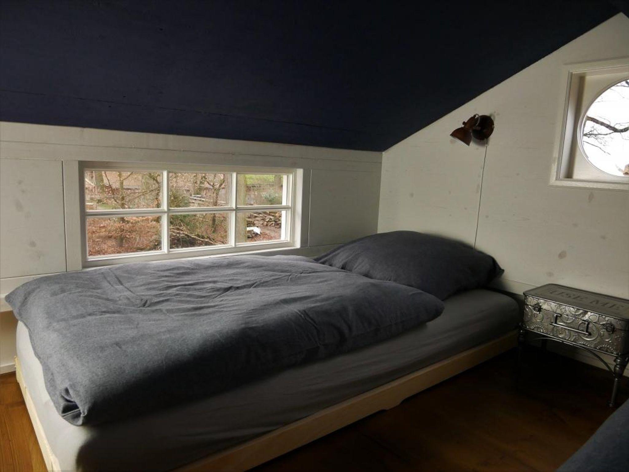 Es gibt einen Schlafbereich mit einem Doppelbett (180 x 200) und eine Schlafebene mit 2 Einzelbetten (90 x 200).