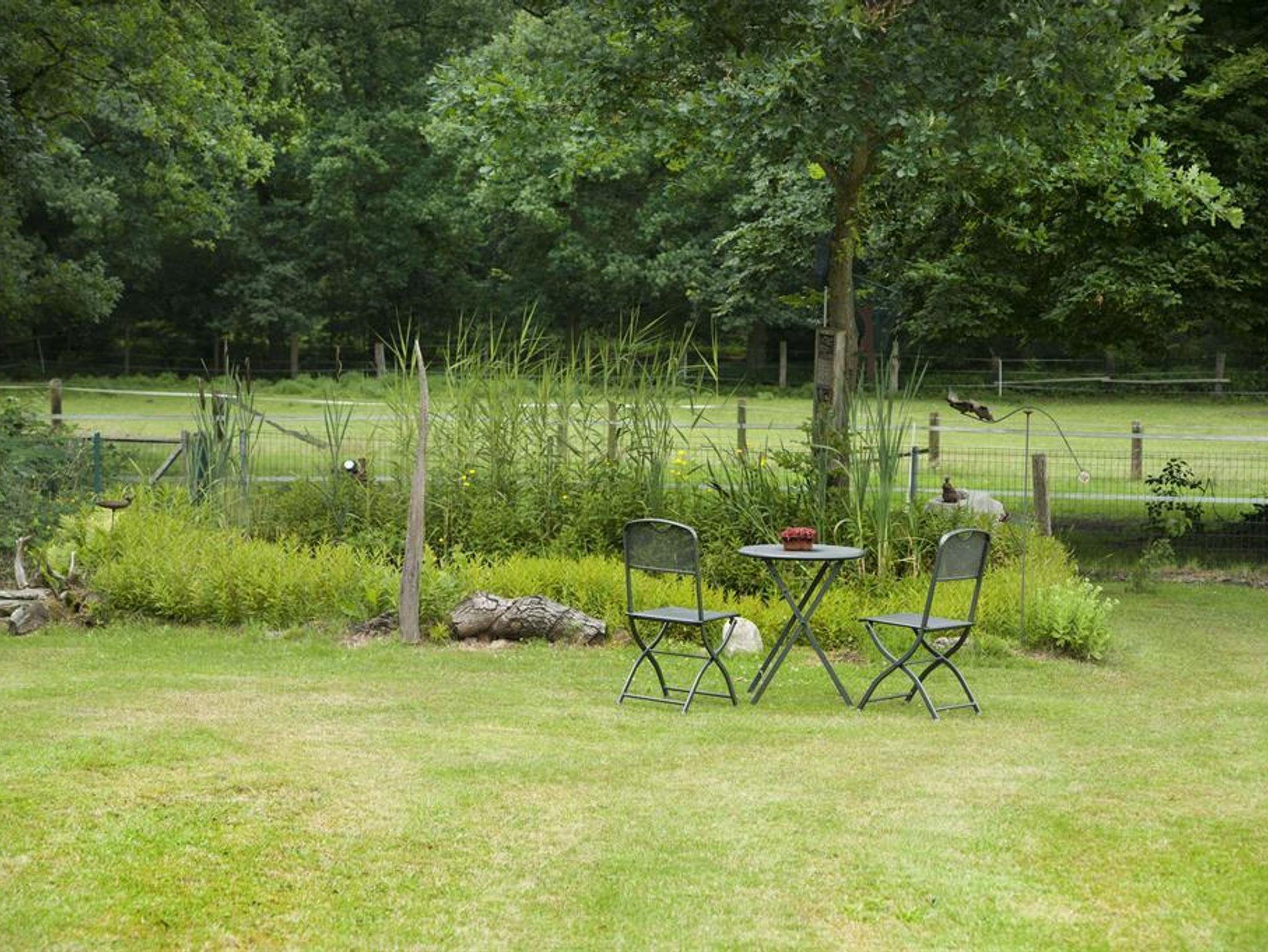 Ihnen steht ein großer Garten mit Grillecke, kleinem Spielplatz und Teich zur Verfügung.