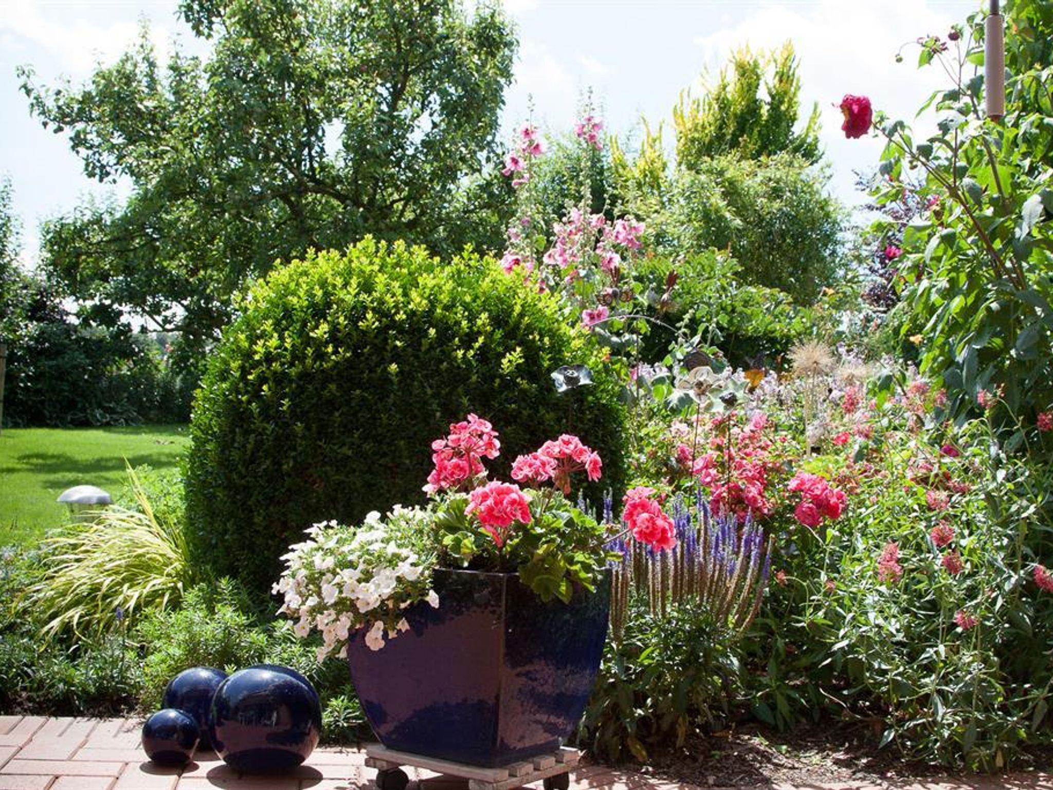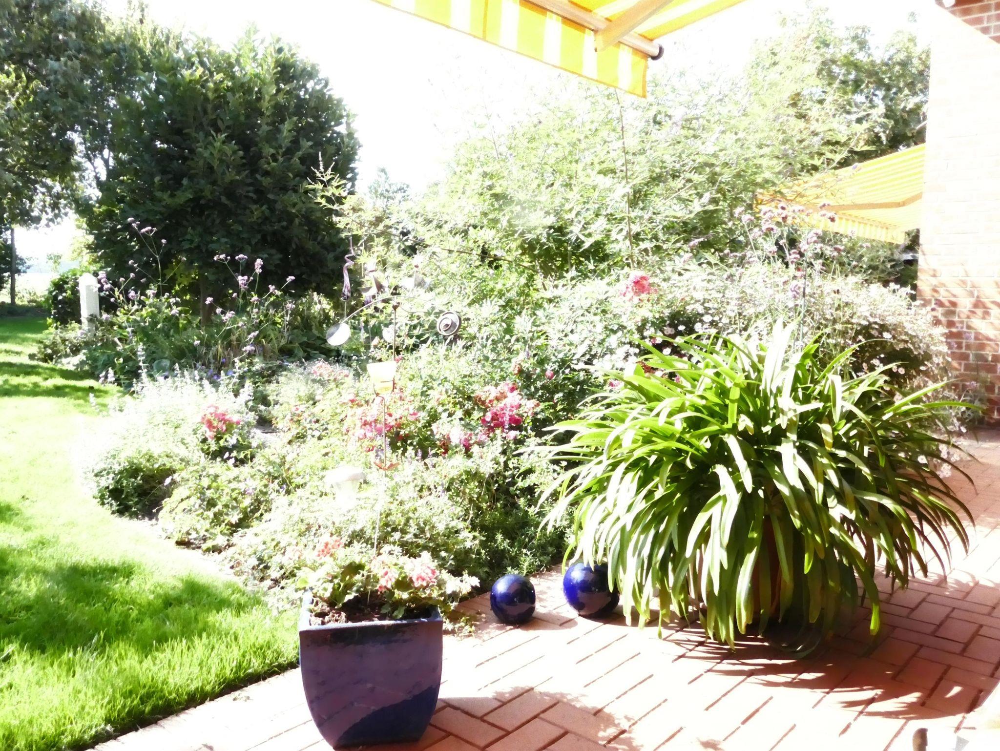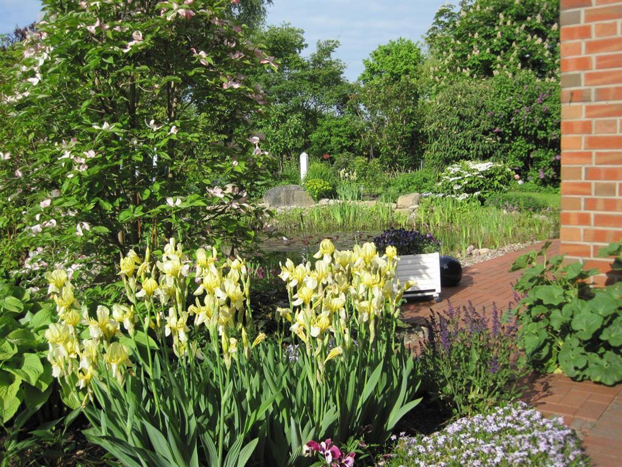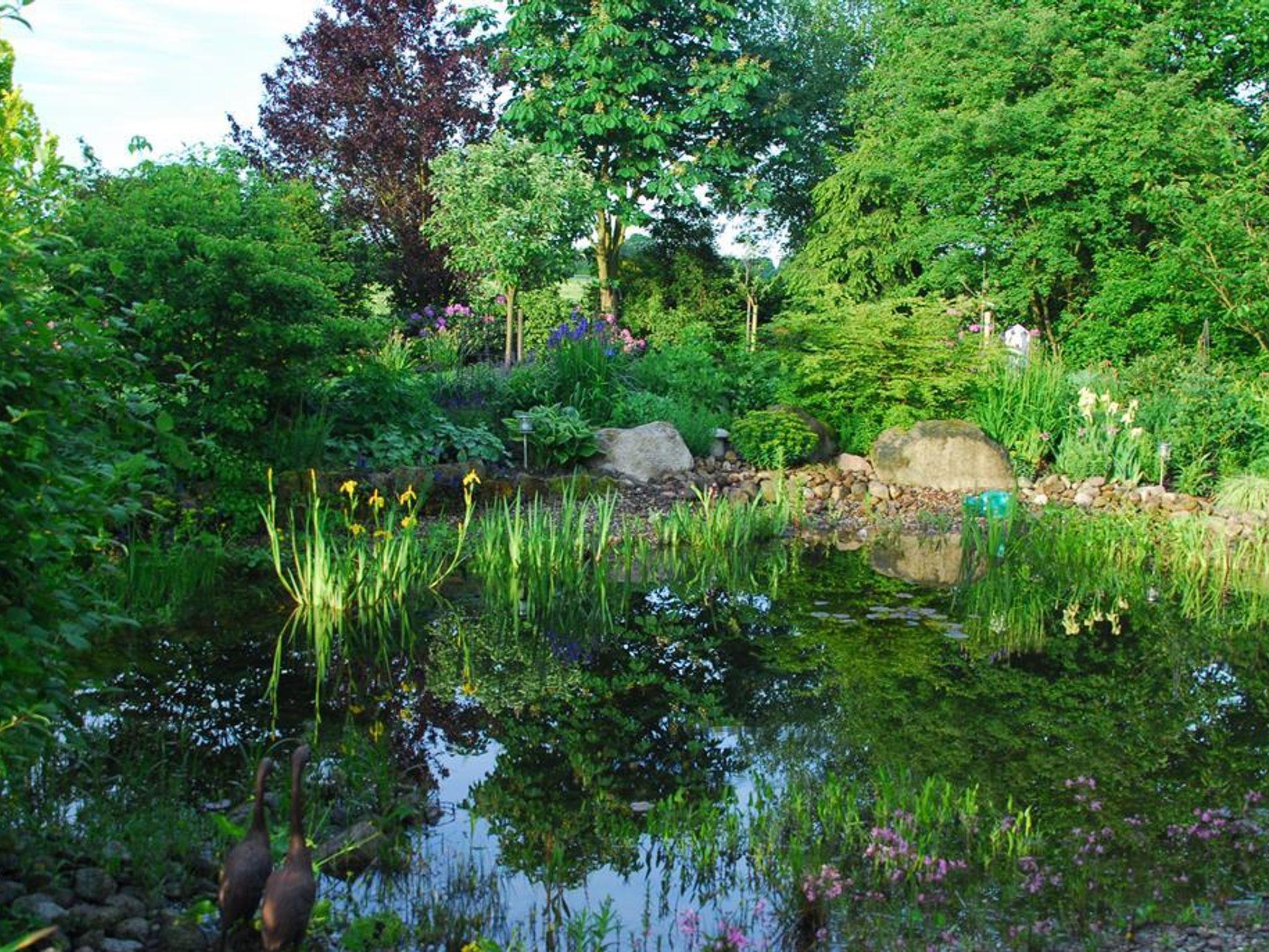 Die Terrasse ist umgeben von einer gepflegten Gartenanlage mit Naturteich. Für gemütliche Abende steht ein Grill zur Verfügung.