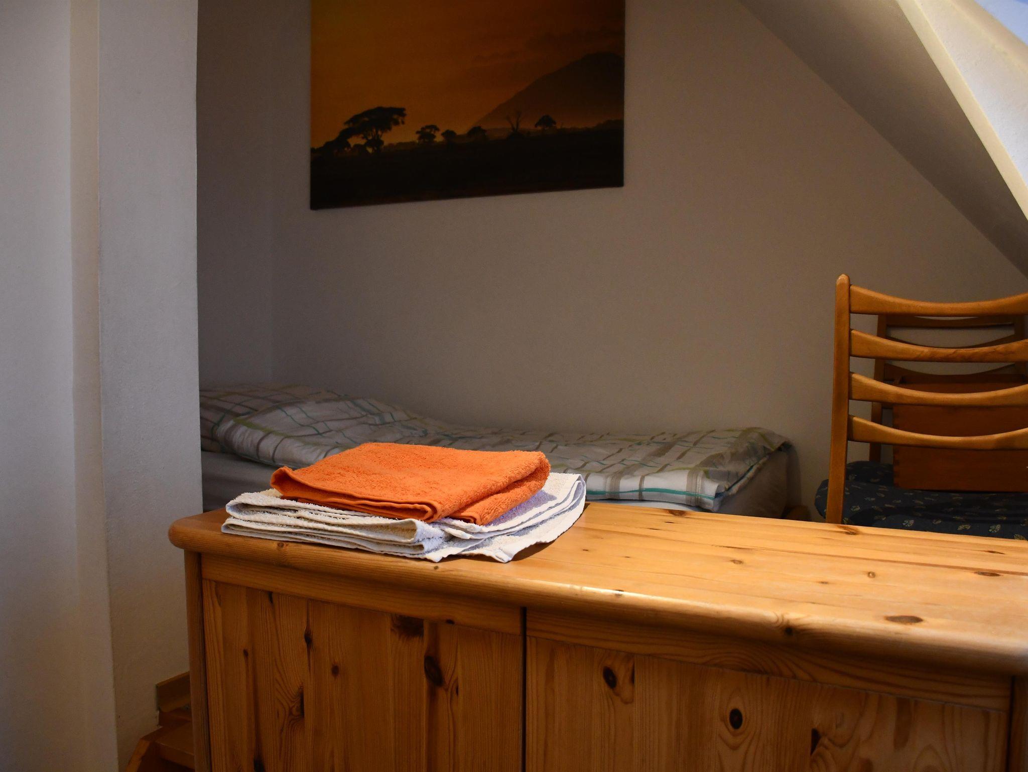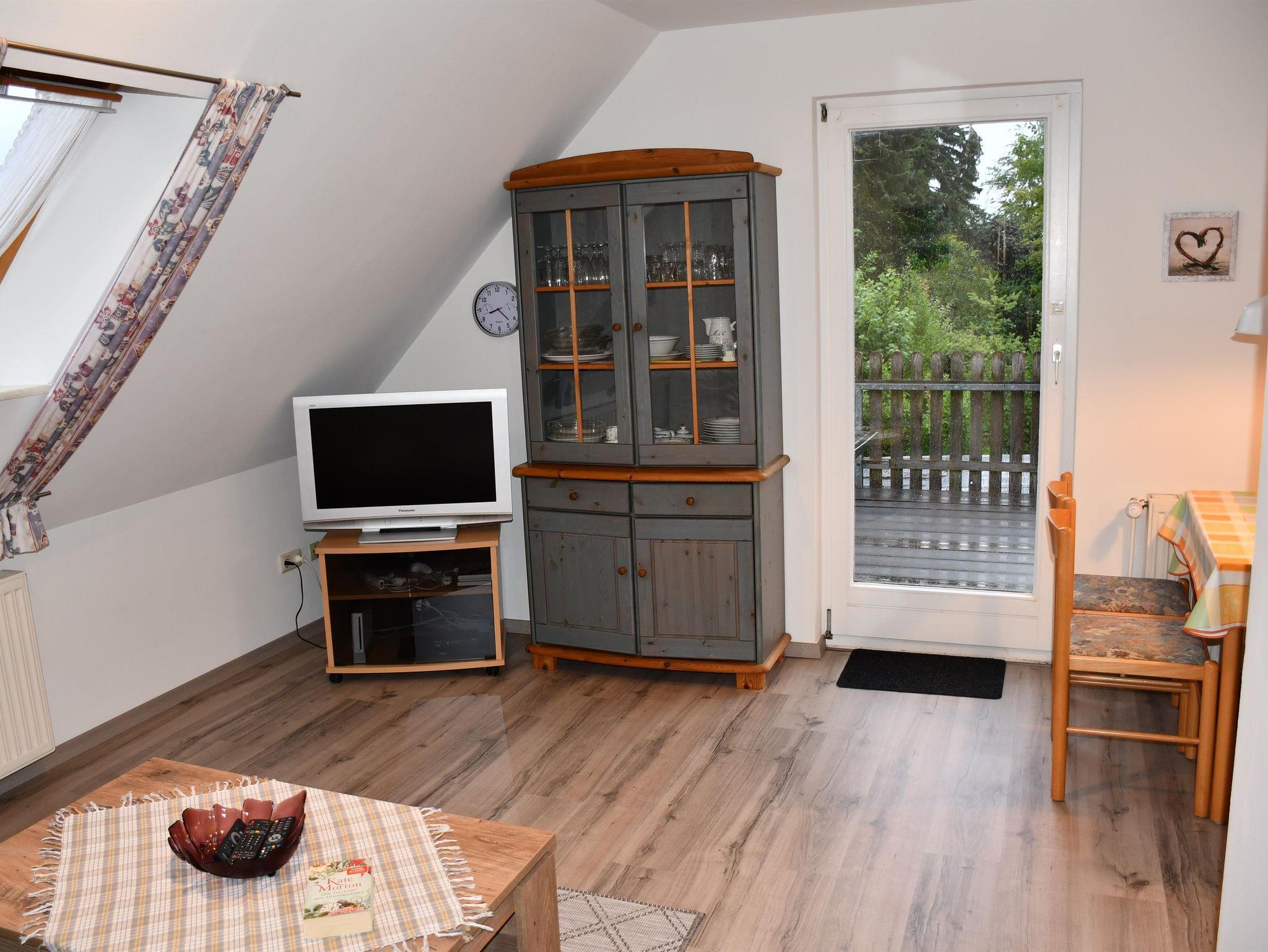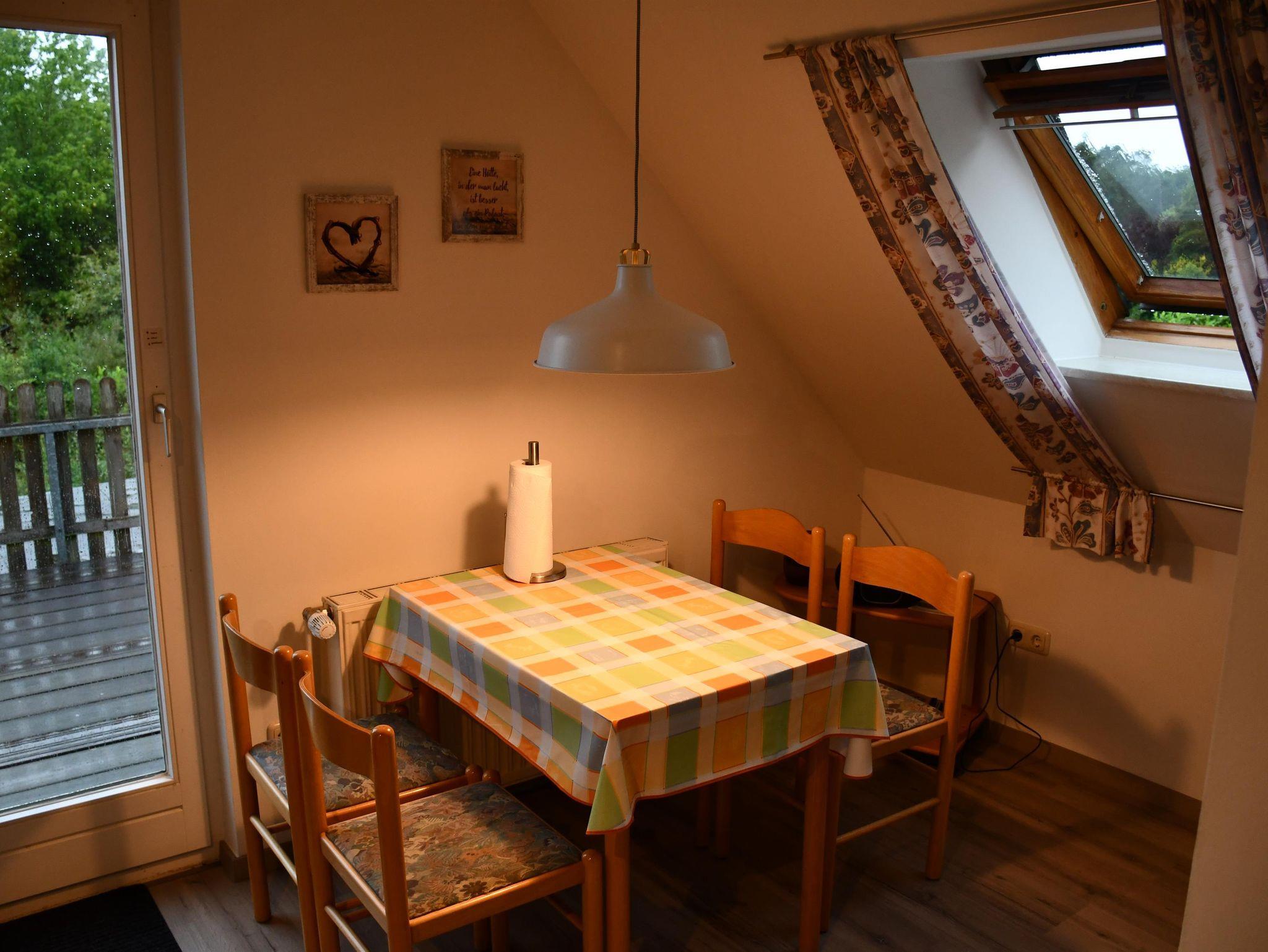Gemütliche ca. 50 qm große Ferienwohnung mit 2 Schlafräumen (ein Doppelbett und ein Einzelzimmer), 1 Wohn-/Essraum, Küchenzeile und Duschbad. Der Garten und ein Spielplatz in der Nähe laden zum Verweilen ein.