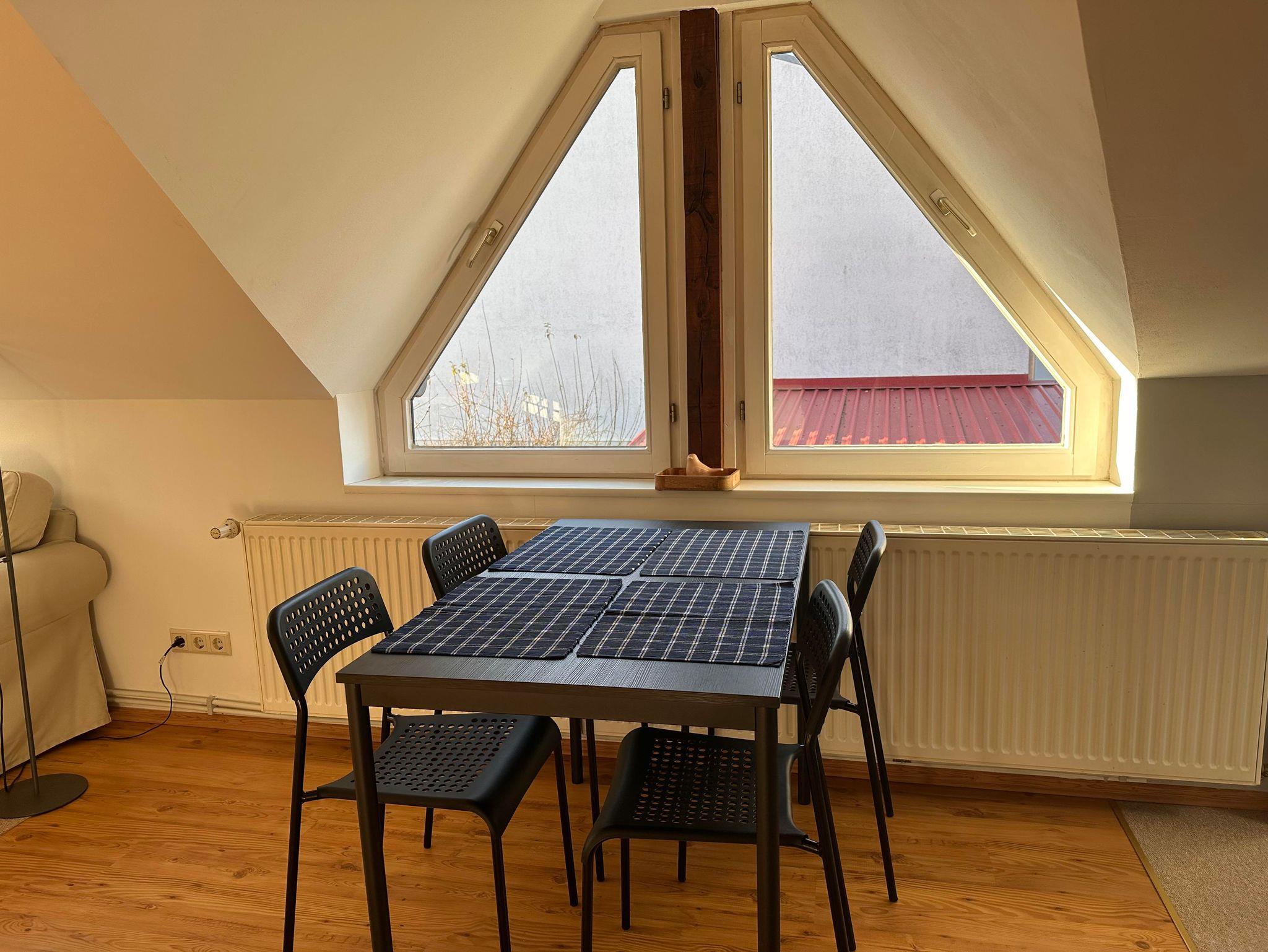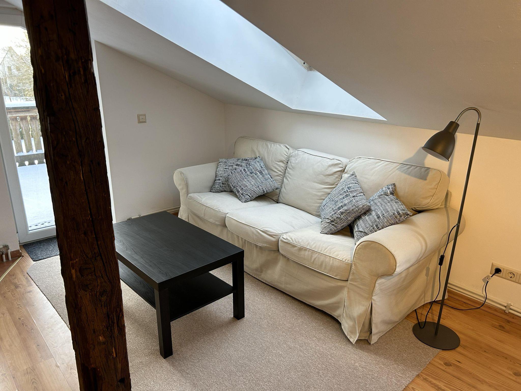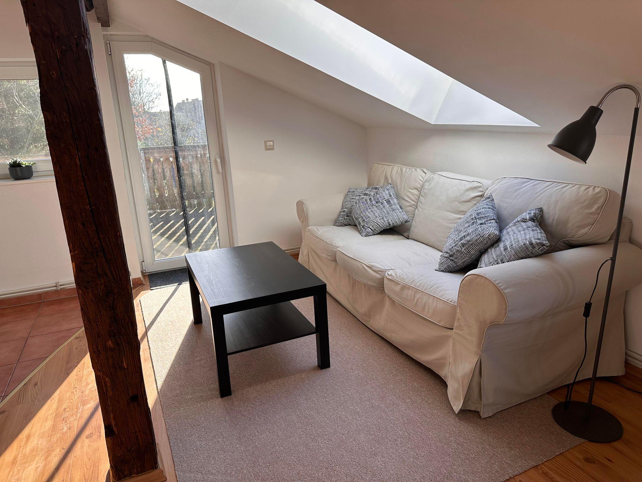 Willkommen in deinem ganz persönlichen Rückzugsort! Dieses 35?m² Studio liegt in einer 300 Jahre alten Fachwerkscheune, die einst Teil der kaiserlichen Post war. Originalbalken, sichtbares Fachwerk, hohe und niedrige Decken – schon beim Betreten spürst du das authentische Scheunenflair.