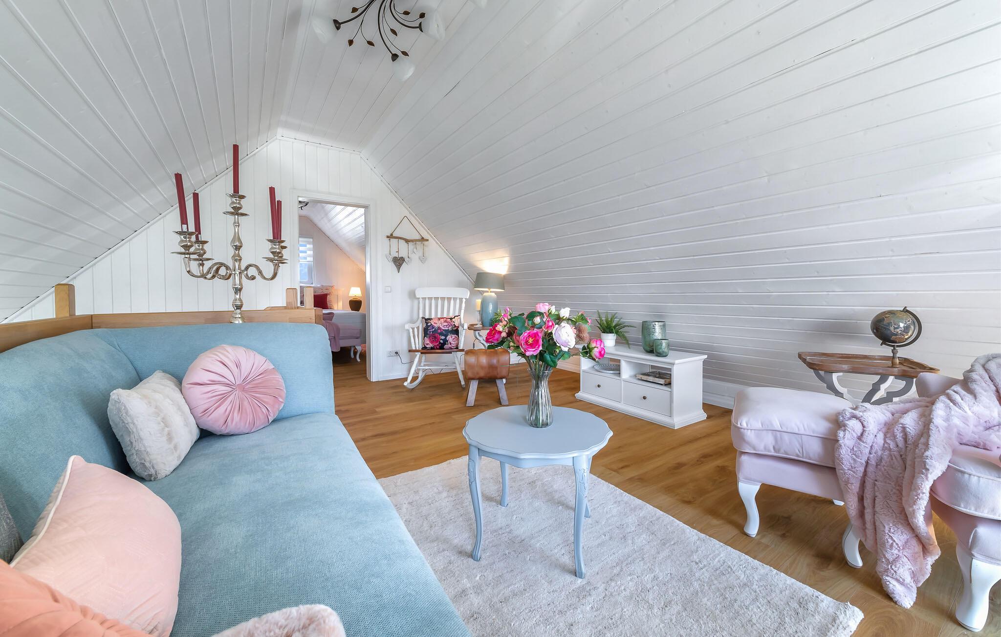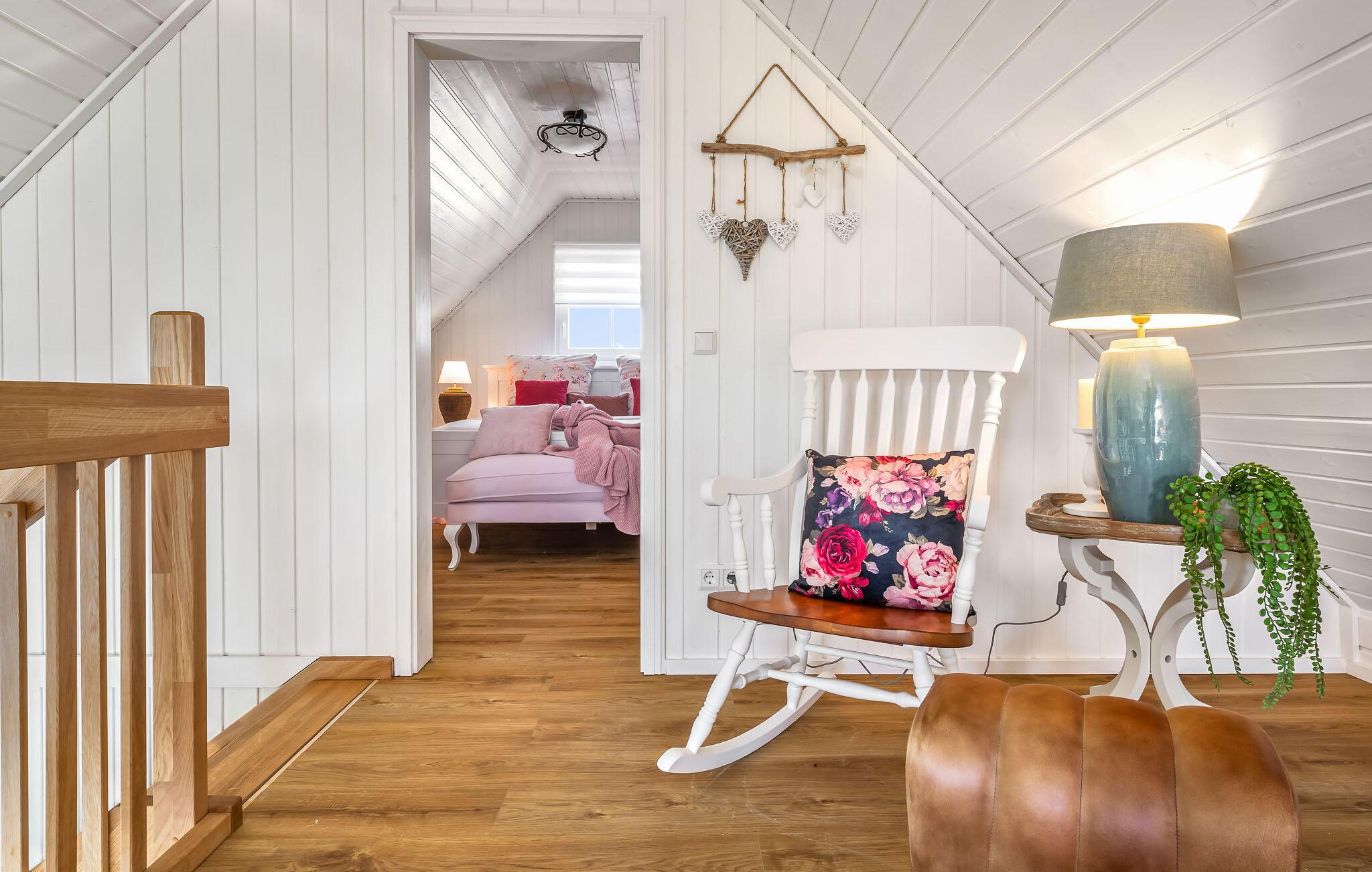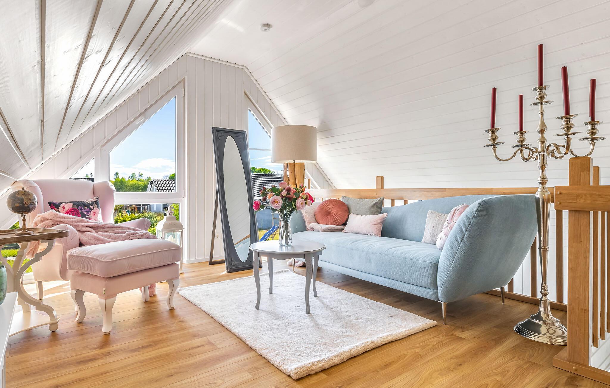 Feriehuset er moderne og hyggeligt - her vil I straks føle jer hjemme! Om aftenen lokker pejsen i det åbne opholds- og spiseområde med sin knitrende ild og hyggelige varme. Om sommeren kan I nyde solen på jeres private terrasse i komfortable havemøbler og slappe af.