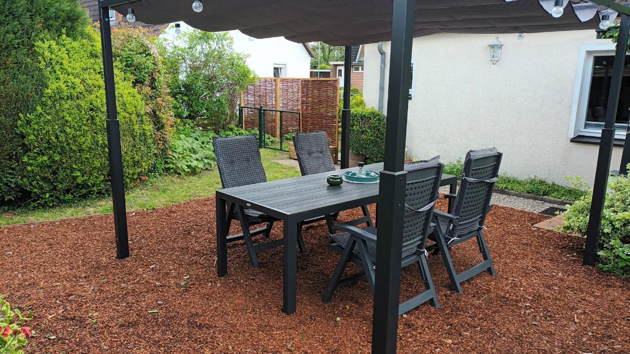 Die neu angelegte Terrasse mit Grillecke, laden zu gemütlichen Abenden ein.