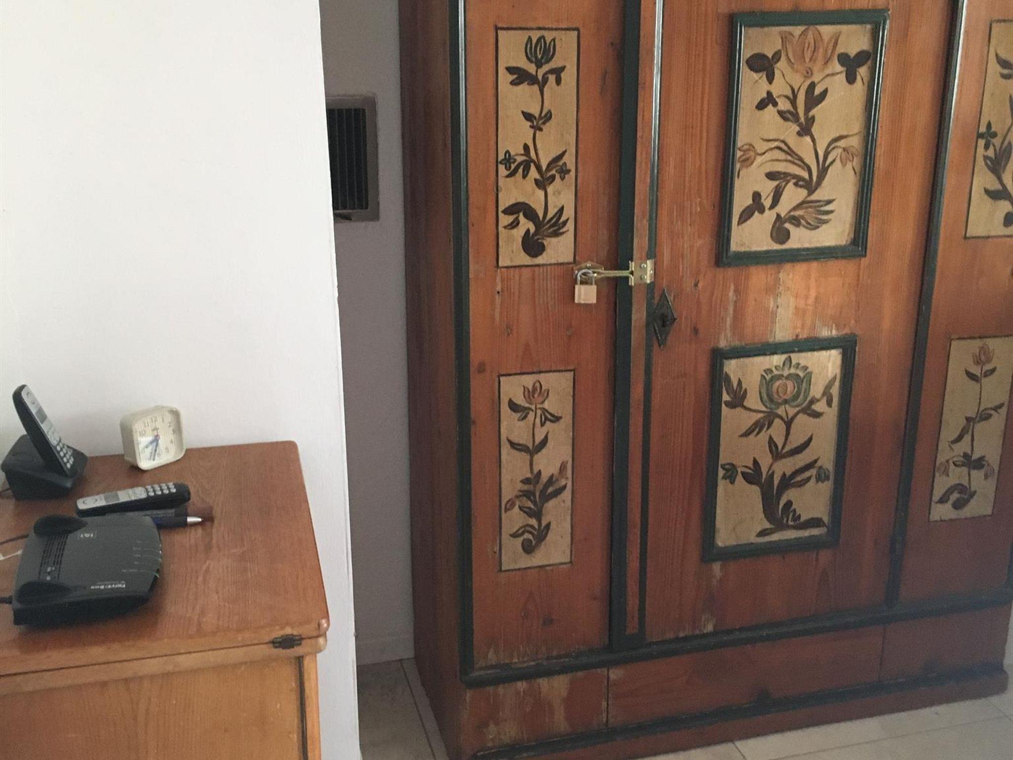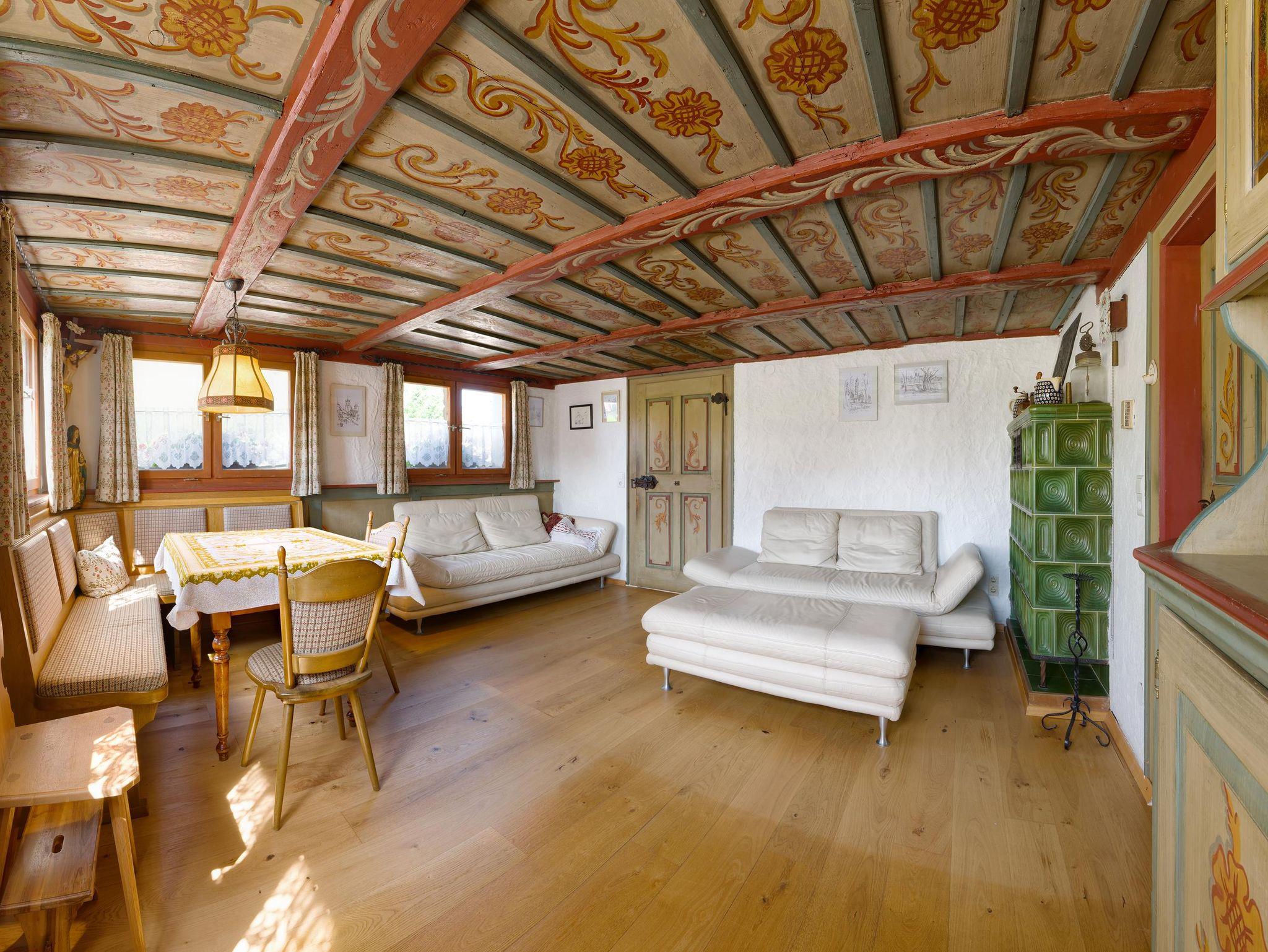Das zweistöckige Haus hat im Erdgeschoss die denkmalgeschützte bemalte Stube, eine helle Wohnküche, WC und Flure, die auf eine Terrasse führen. Im Obergeschoss befinden sich 3 Schlafzimmer und das Tageslicht-Badezimmer mit Dusche und WC. Die Geschosshöhe des Bohlenhauses beträgt 1,93 Meter.