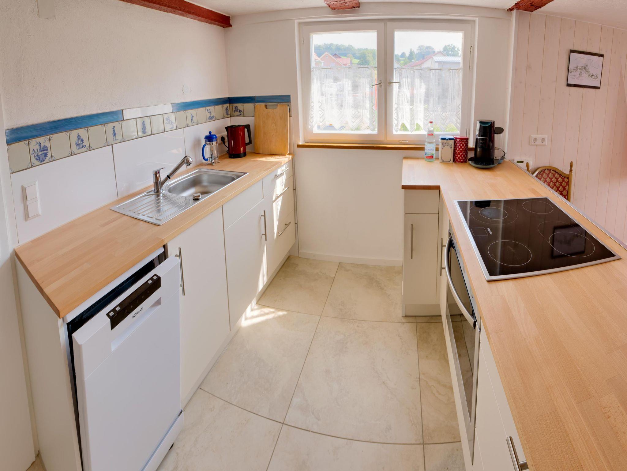EG: Geflieste Flure, Abstellmöglichkeiten für Kinderwagen, Wanderschuhe, Wäscheständer, Waschmaschine, gr. Kühlschrank. Die Einbauküche ist mit Spülmaschine, Mikrowelle, Herd, Backofen etc. ausgestattet. Stube mit Eckbank, TV und 2 Sofas, Terrasse