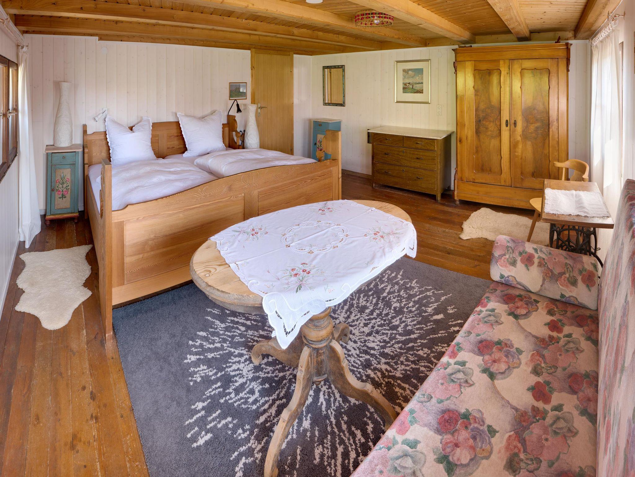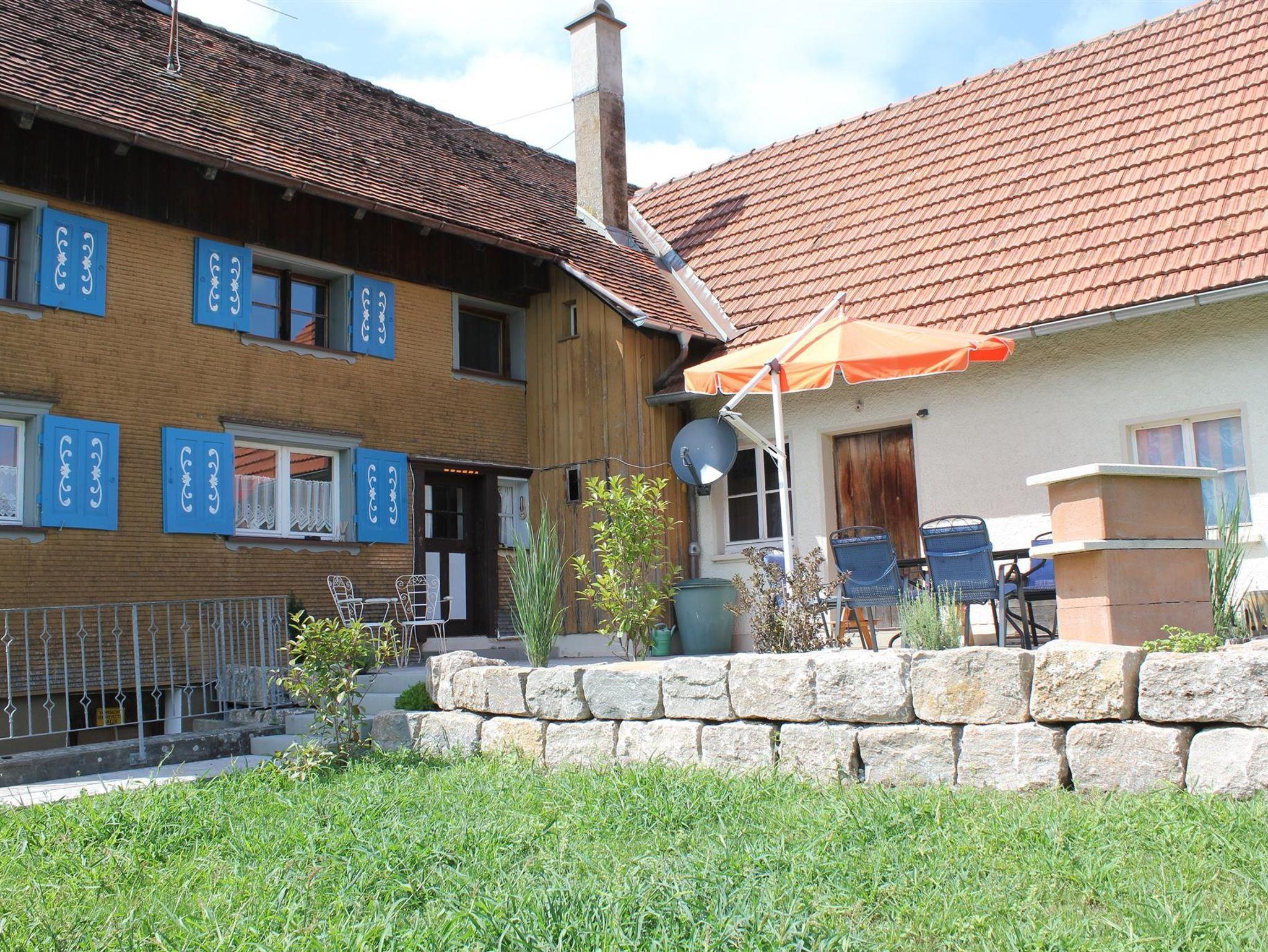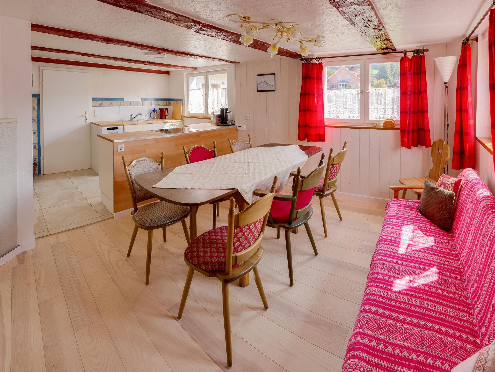 Ausspannen mit Freunden und Familie: Das Ferienhaus Anni heißt Sie willkommen! Das denkmalgeschützte geschindelte Holzhaus mit Flair liegt mitten im Dorf am Kirchberg. Kirche, Käserei, Dorfmarkt und eine Gaststätte sind nahe. WLAN, Kachelöfen, Grill etc. gehören zum Haus.