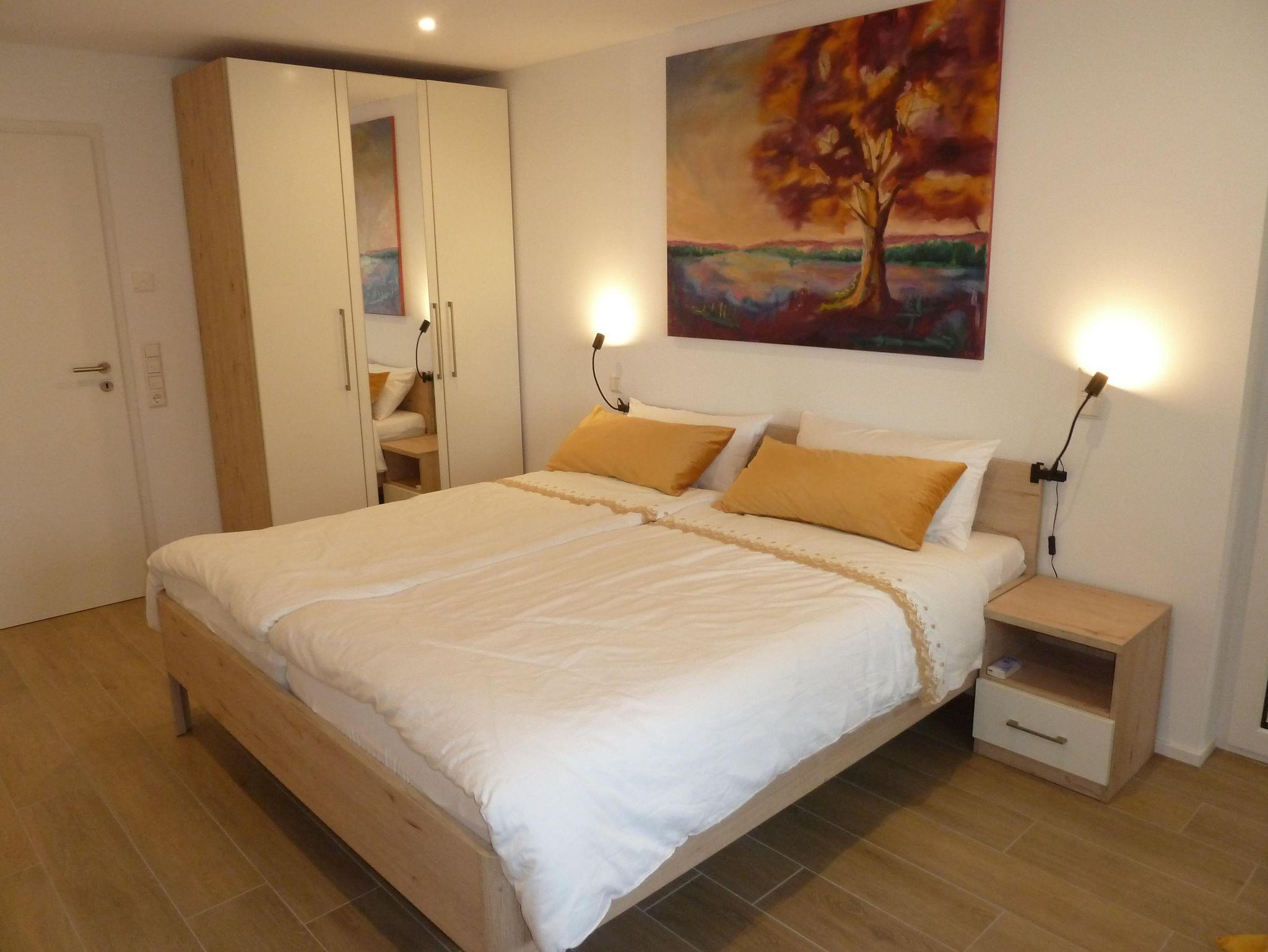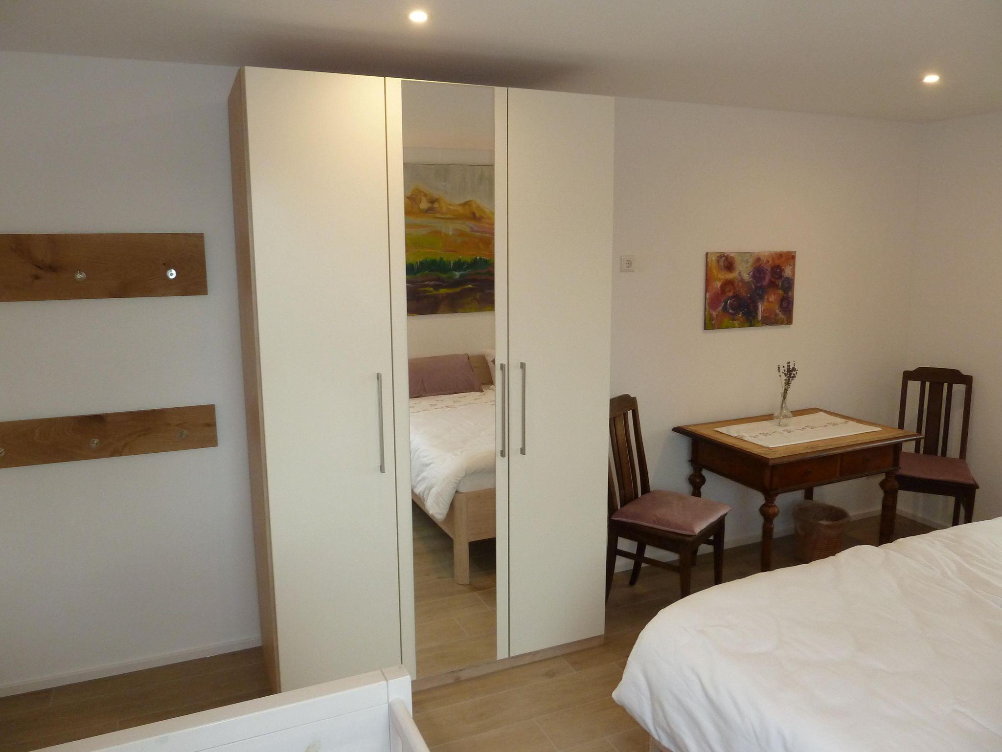 Zur Verfügung stehen drei Schlafzimmer (zwei Doppelbettzimmer mit Option Kinderbett und ein Zweibettzimmer) alle sind ausgestattet mit einem Kleiderschrank incl. Spiegel, Garderobe und einem kleinen Tisch mit Stühlen. Eine zusätzliche Schlafmöglichkeit für eine weitere Person ist auf Anfrage möglich.