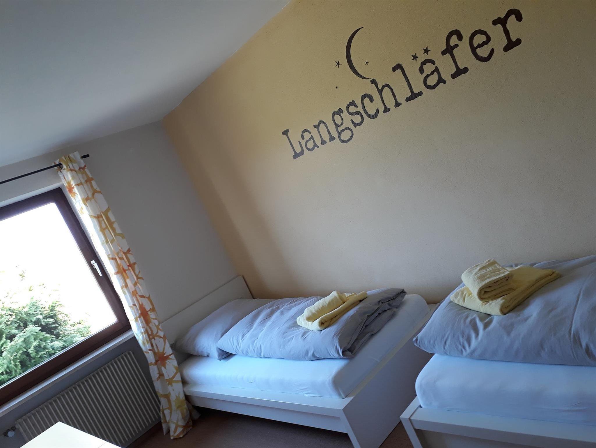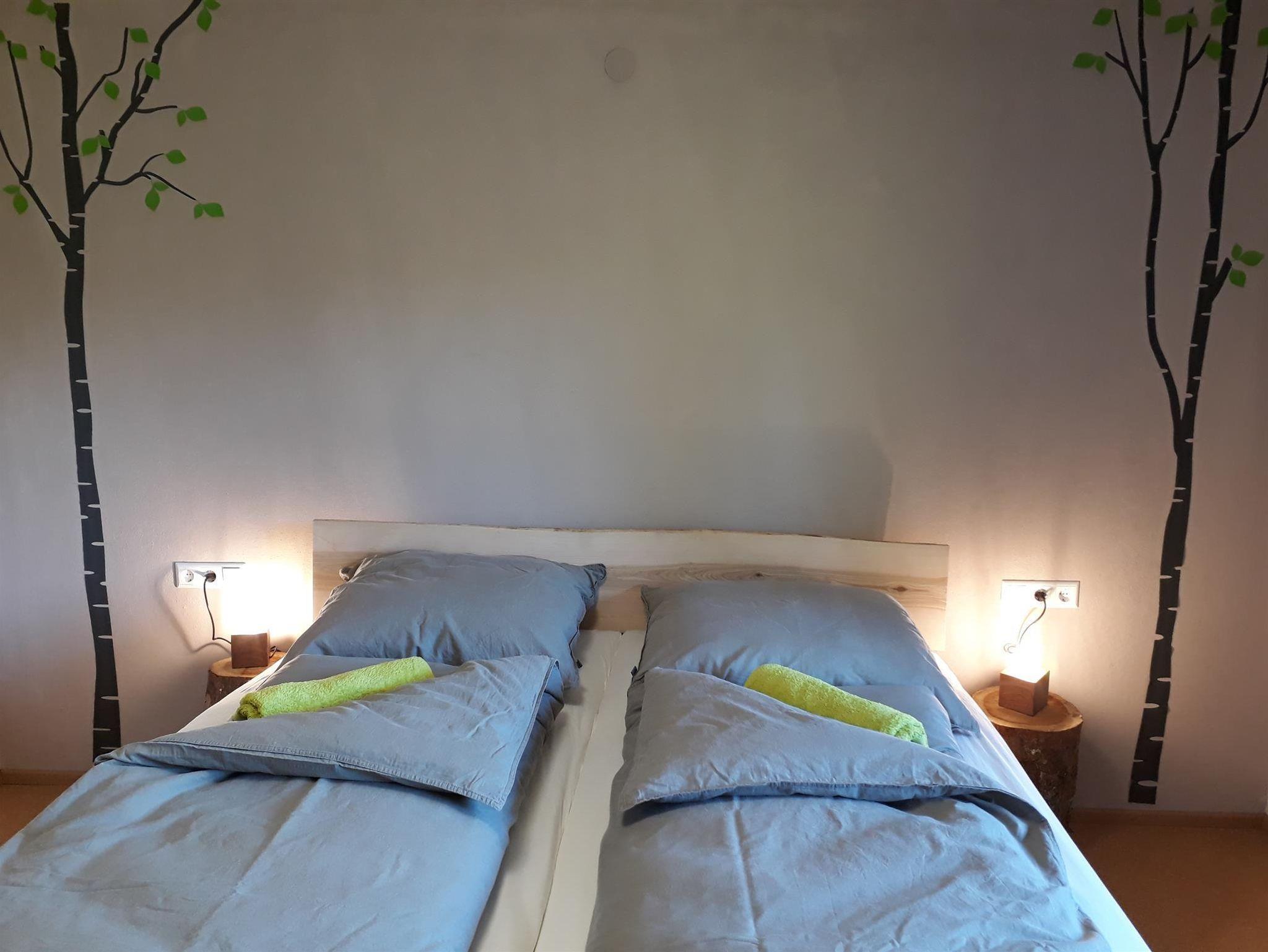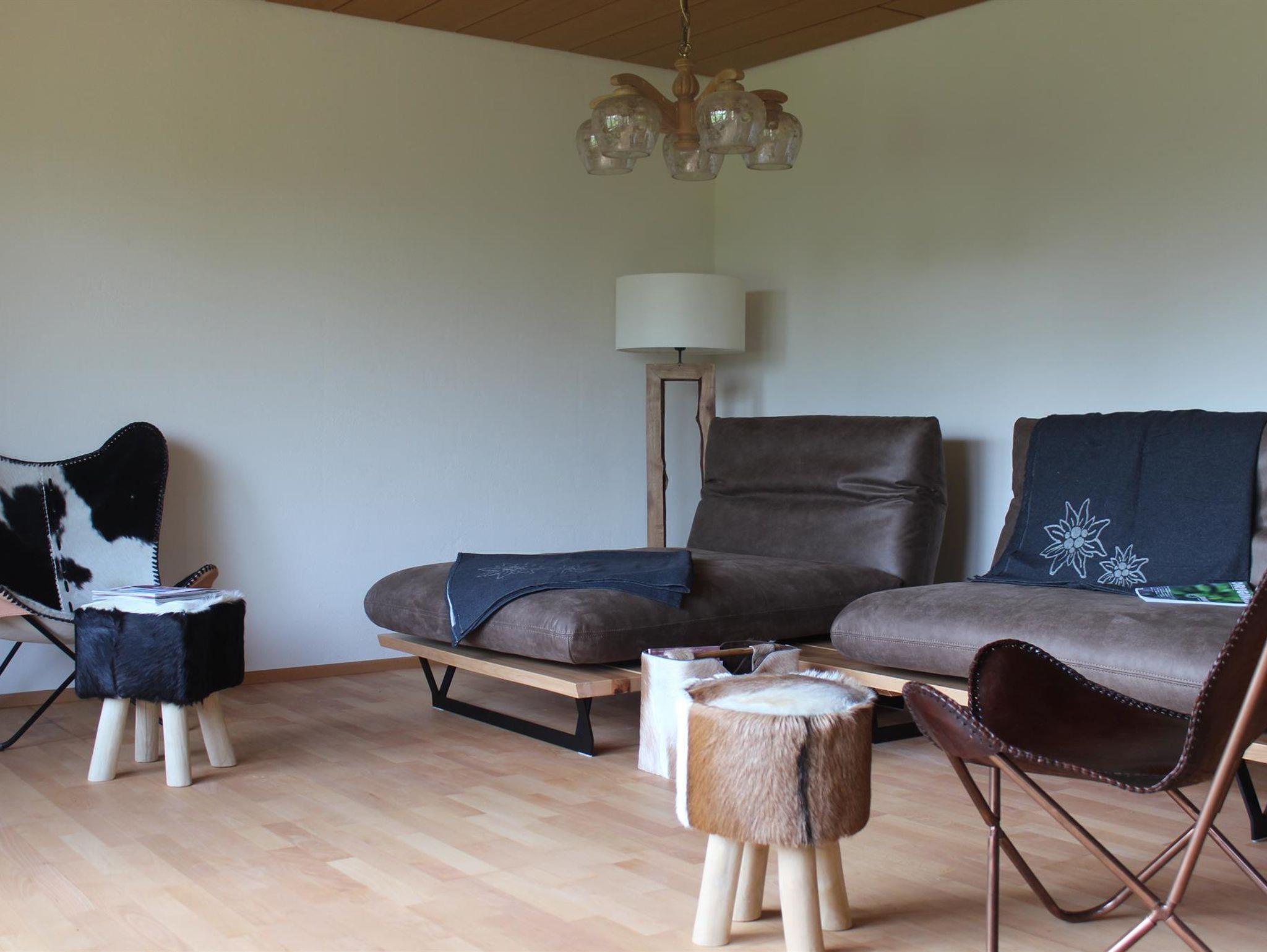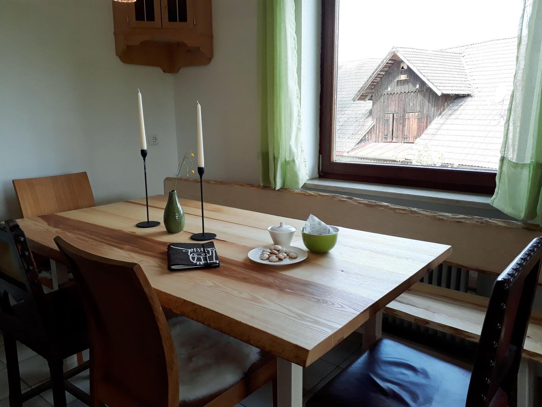 Groß, gemütlich und komfortabel eingerichtet ist die Wohnküche mit dem rustikalen Eichenholztisch. Das Wohnzimmer spiegelt schicken Allgäuflair wieder und bietet herrlichen Ausblick ins Grüne. Alle Schlafzimmer sind mit Korkboden ausgestattet. Zimmer Wiese bietet zwei einzelne Holzbetten, Zimmer Wald ein hohes Doppelbett und Zimmer Mond wieder zwei einzelne Betten. Bad und WC sind separat.