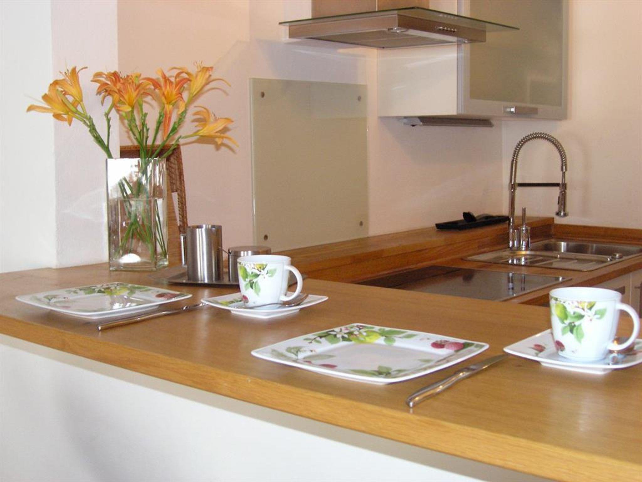 Die voll ausgestattete Küche, das sehr großzügige Wohnzimmer (zusätzliche bequeme Schlafcouch) und Esszimmer, das separate Schlafzimmer (zum Hinterhöfchen), ein modernes Bad mit Dusche und WC und ein kleiner Balkon laden zum Entspannen und Wohlfühlen ein. Waschbare Kissen und Bettdecken in Übergröße, allergikergeeignet, WLAN.