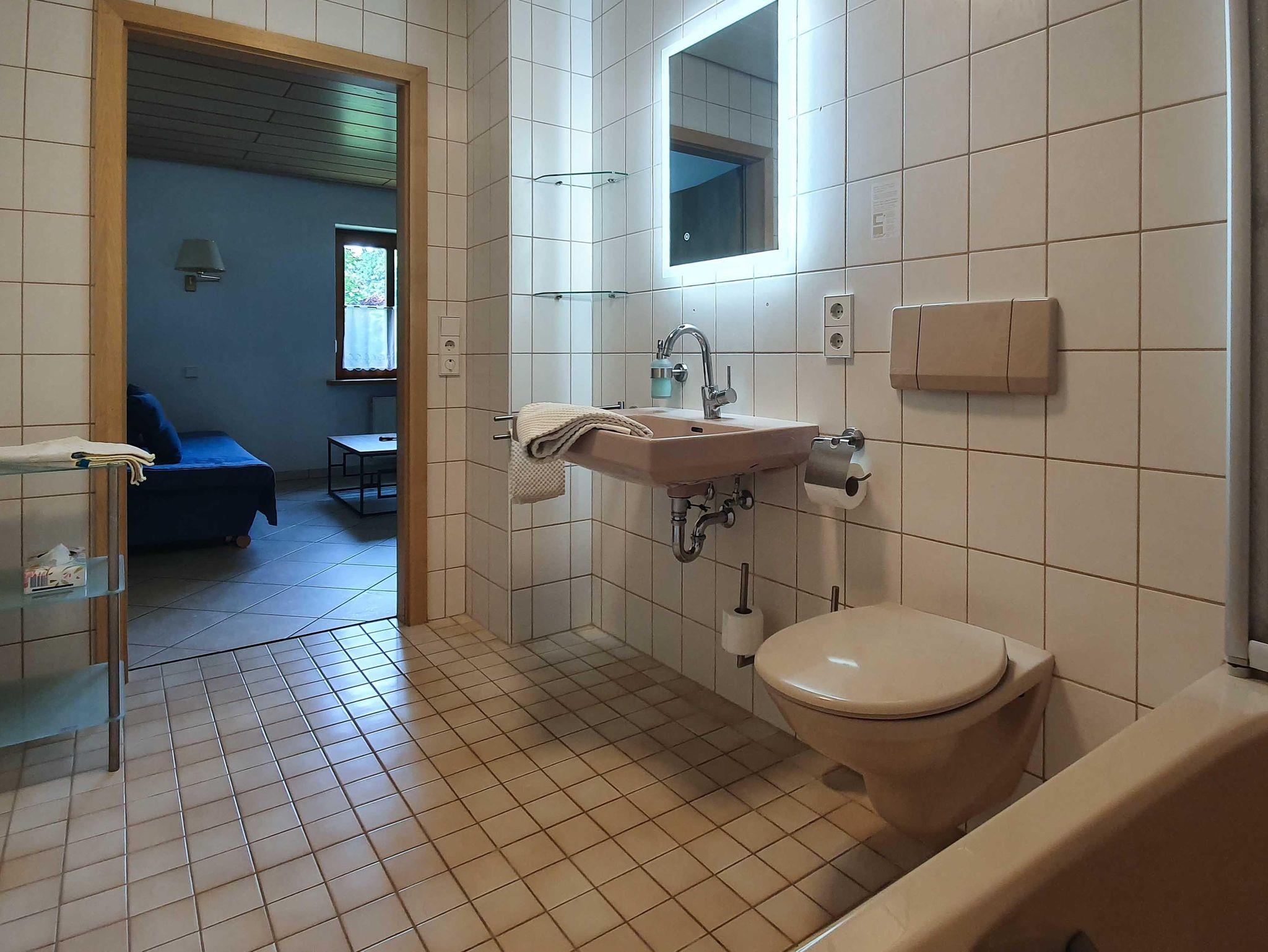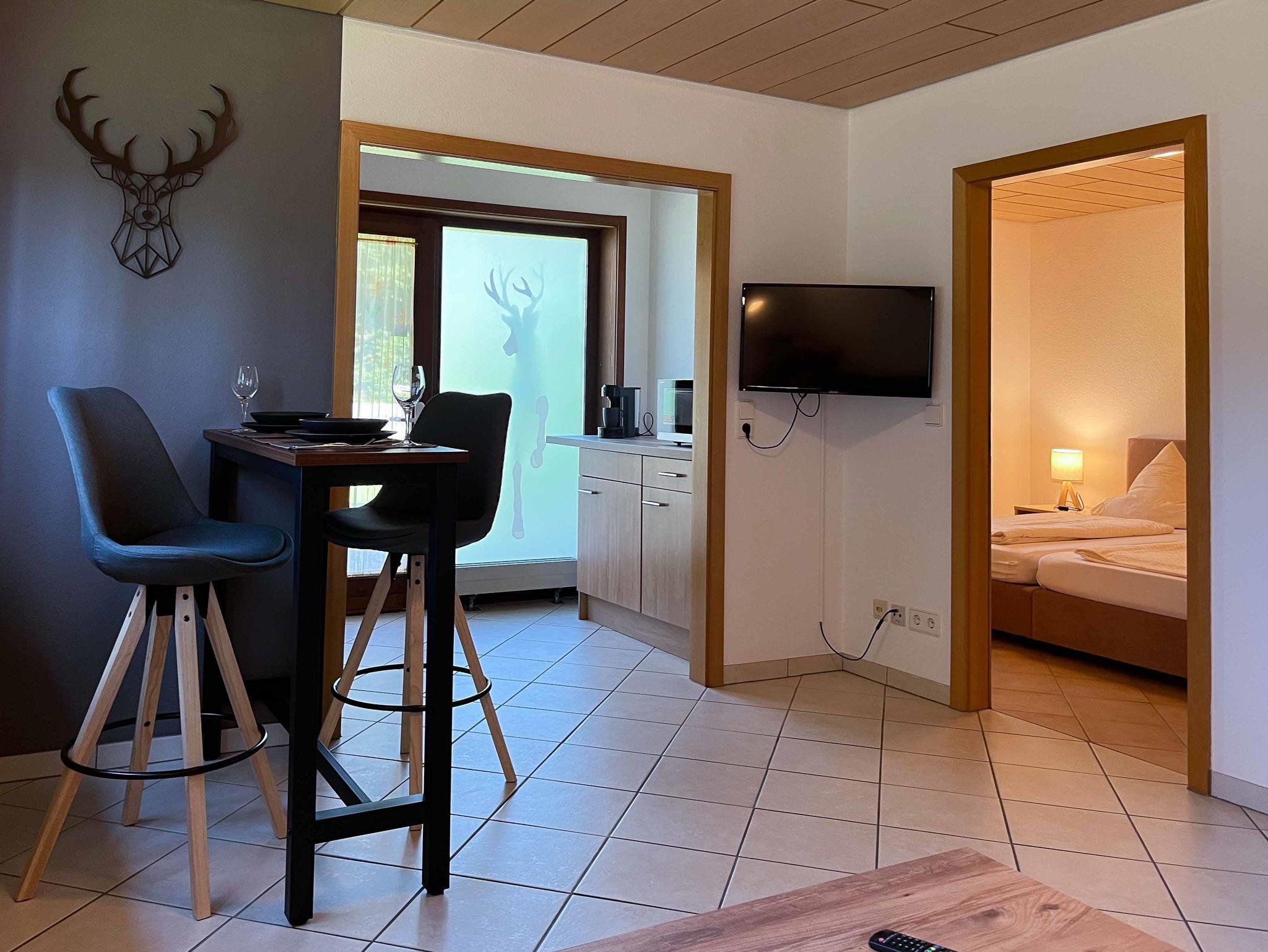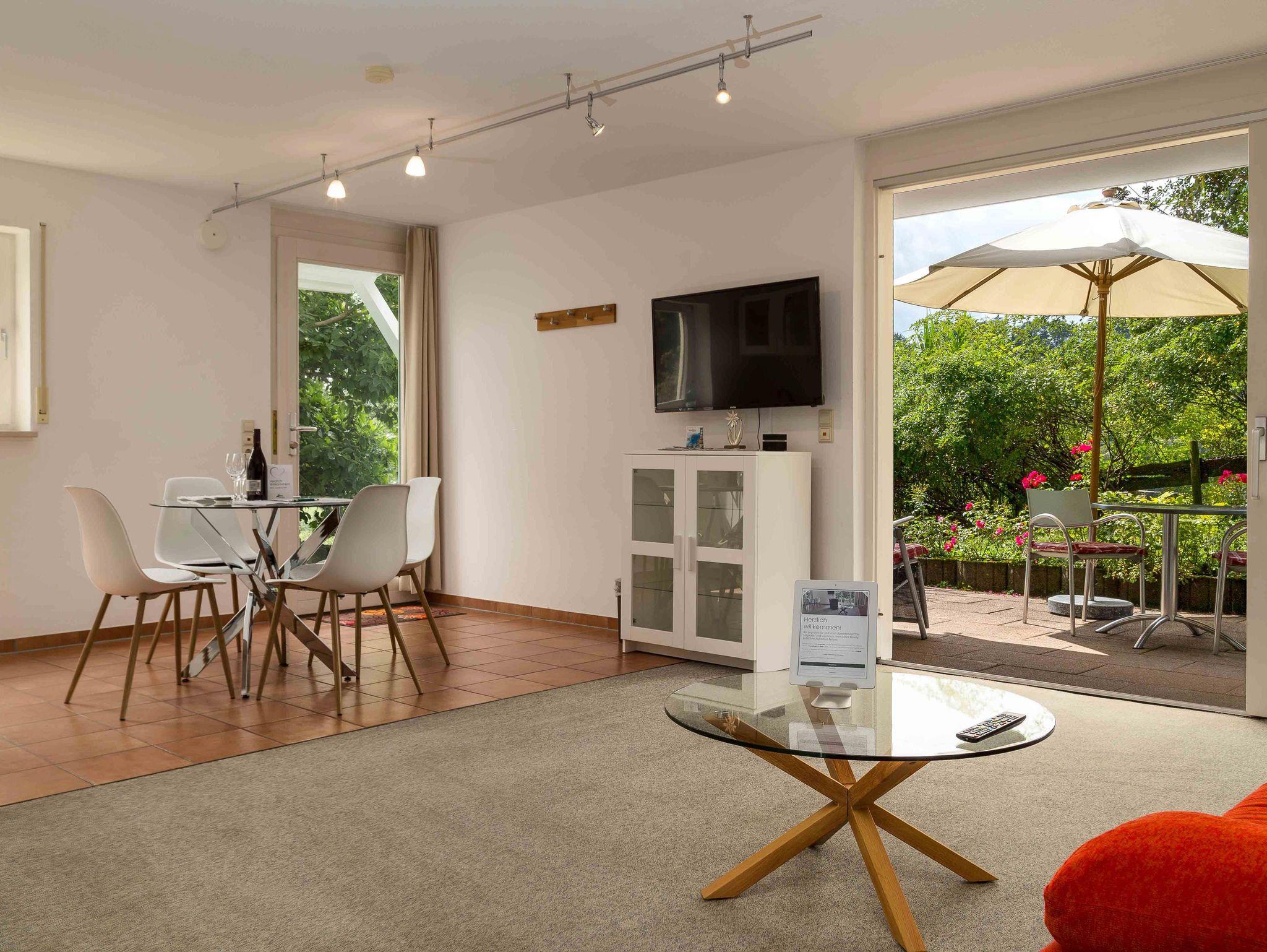 Ihre Zwei-Raum-Ferienwohnung im Grünen mit separatem Zugang, direkt am Garten und mit Blick auf den Waldrand.