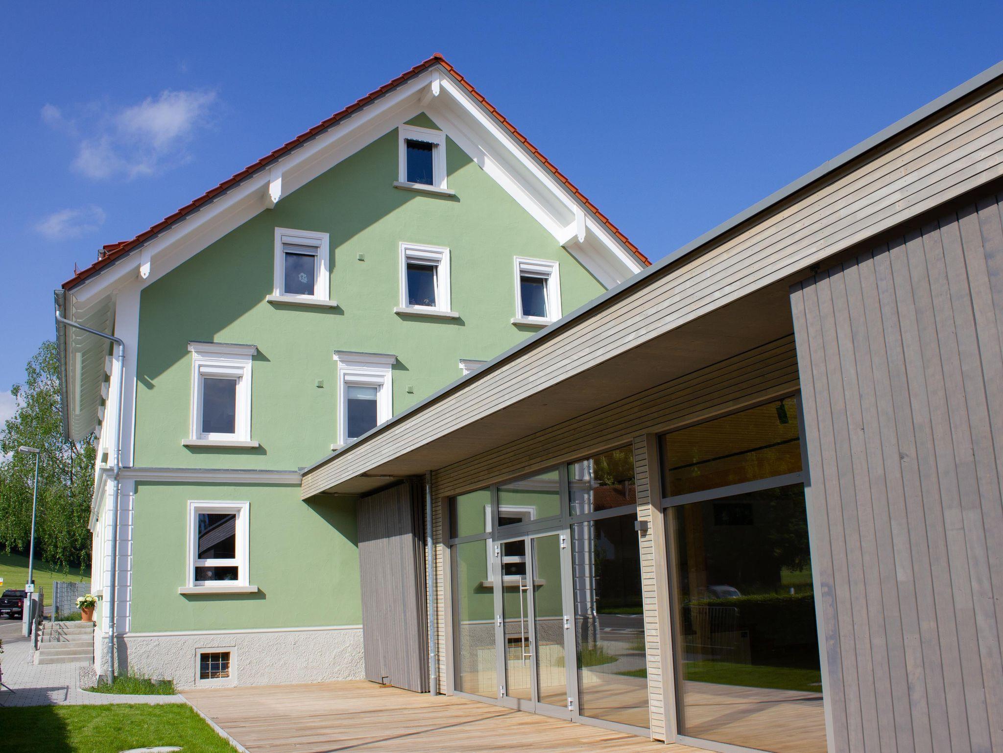 Räumlichkeiten, Catering und eine Kochschule. Im Anbau befindet sich eine Holzausstellung.