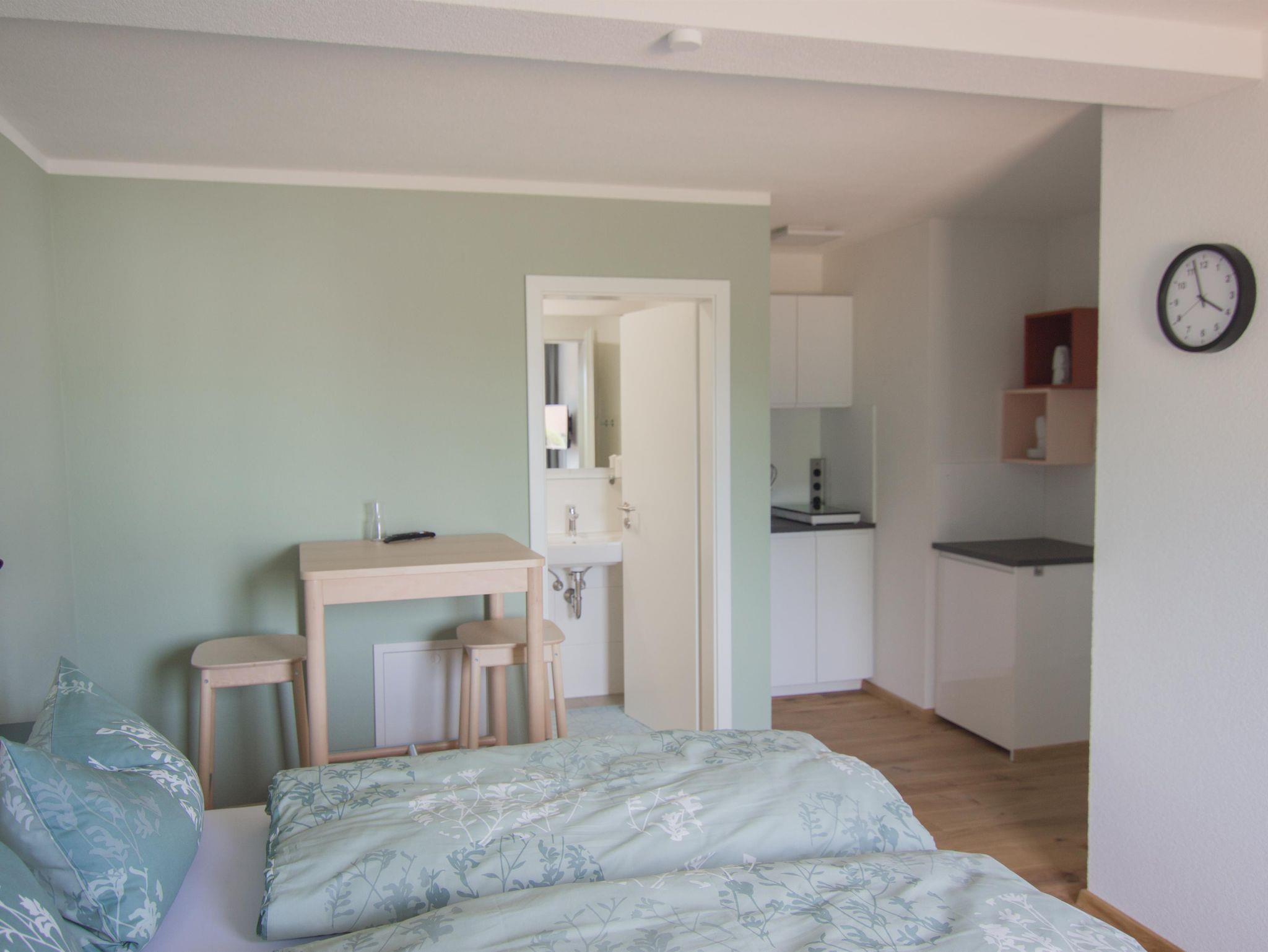 Das 20 m² große Studio Luise ist hell, modern und sehr gemütlich eingerichtet. Es befindet sich im 1.OG, verfügt über ein separates Bad mit Dusche und WC, eine Miniküche, WLAN, Flat TV und einem Doppelbett.