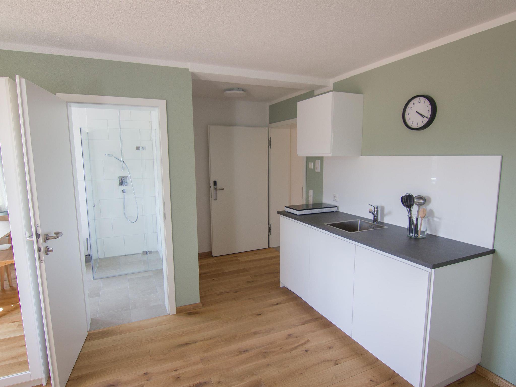 Das 30 m² große Studio Bertha ist hell, modern und sehr gemütlich eingerichtet. Es befindet sich im 1.OG, verfügt über ein separates Bad mit Dusche und WC, eine Miniküche, WLAN, Flat TV, Doppelbett, sowie einem Einzelbett.