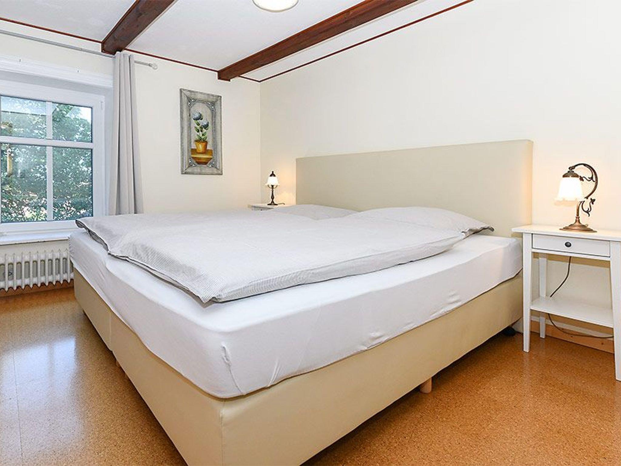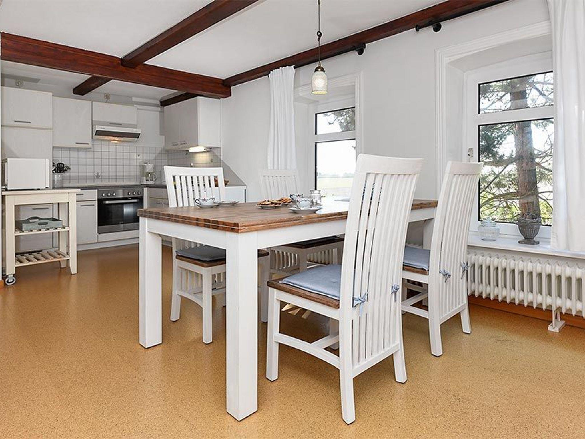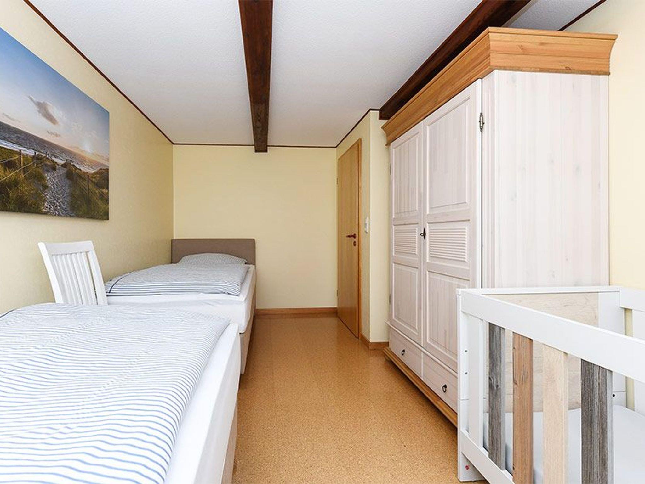 Größe ca. 60 Quadratmeter, Wohnraum mit integrierter Küche, Schlafzimmer, zweites separates Schlafzimmer/Kinderzimmer, Badezimmer mit Dusche, Waschtisch und WC, Obergeschoss, optimal für 2 bis 4 Personen.