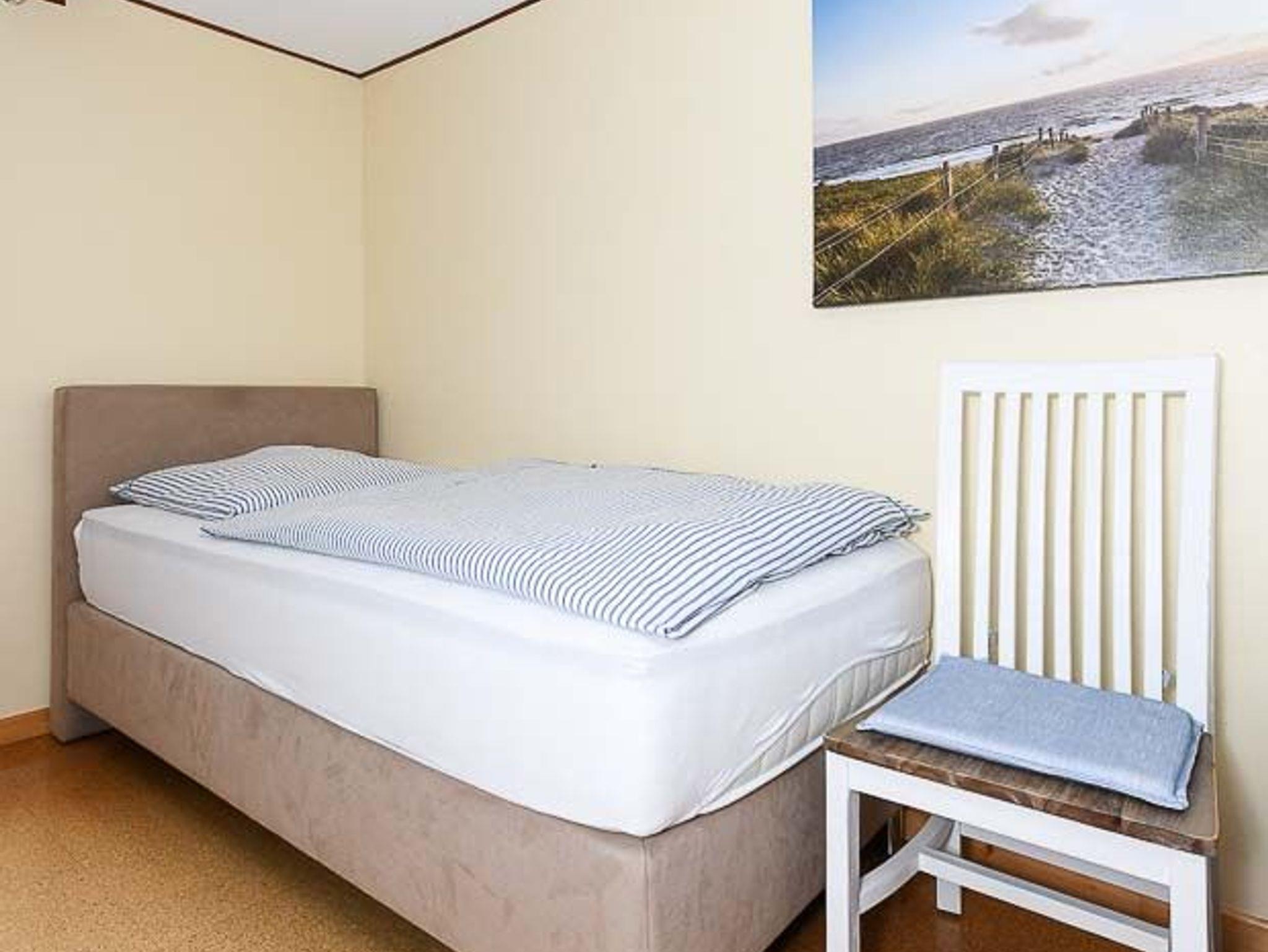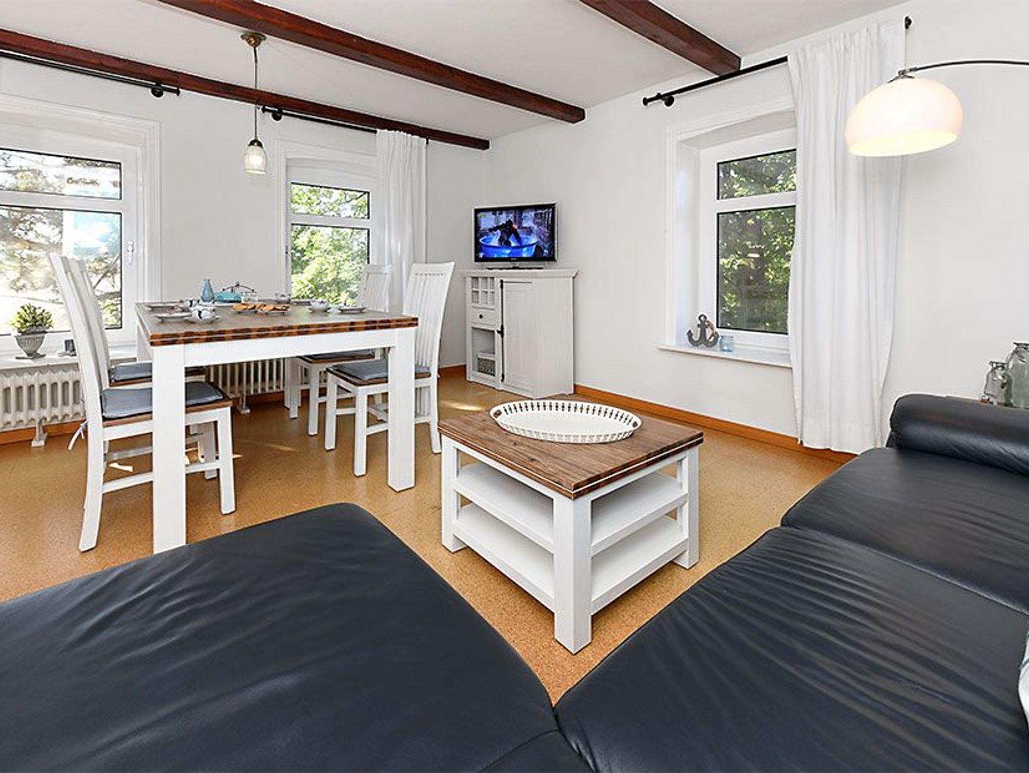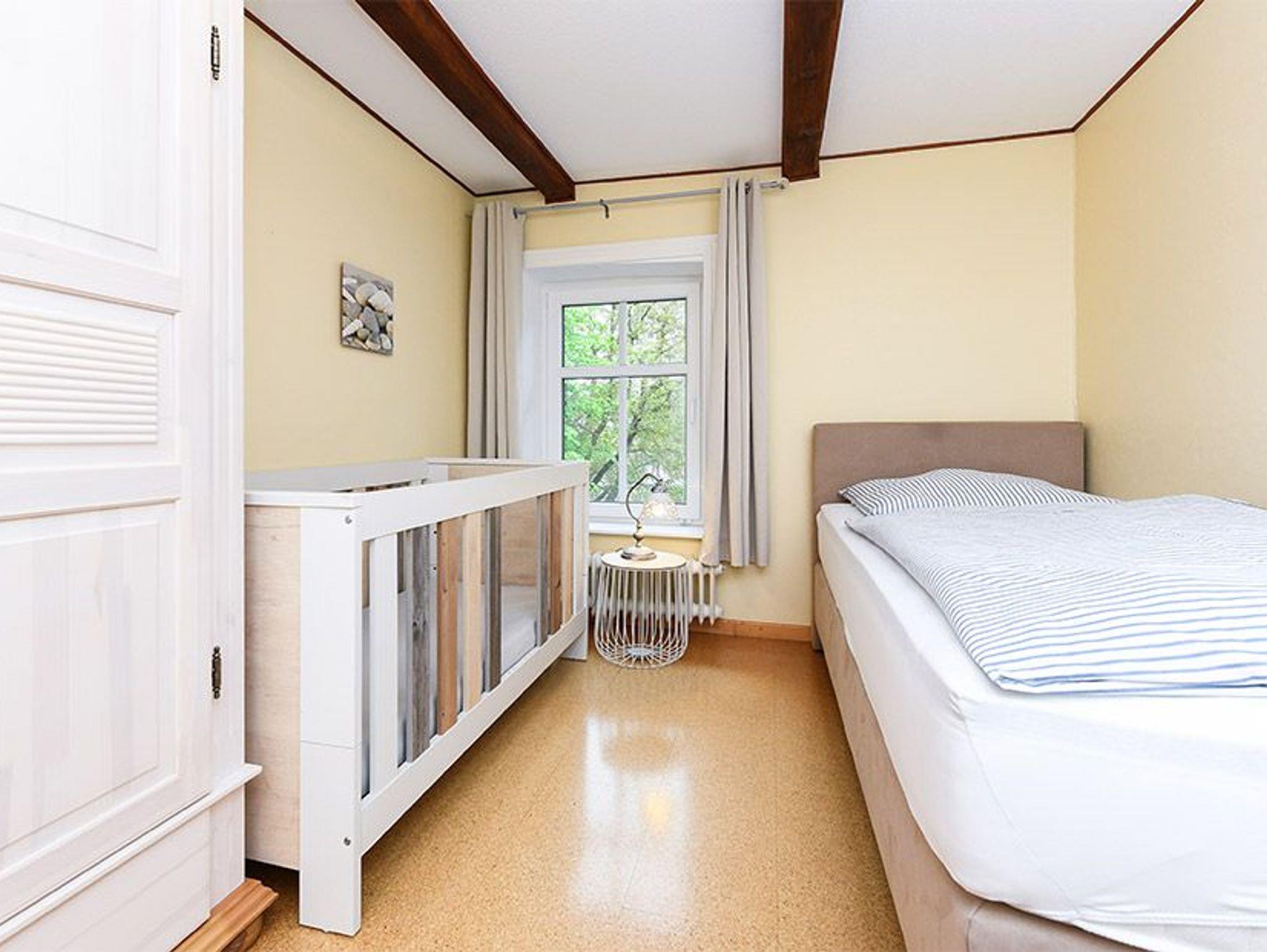 Größe ca. 60 Quadratmeter, Wohnraum mit integrierter Küche, Schlafzimmer, zweites separates Schlafzimmer/Kinderzimmer, Badezimmer mit Dusche, Waschtisch und WC, Obergeschoss, optimal für 2 bis 4 Personen.