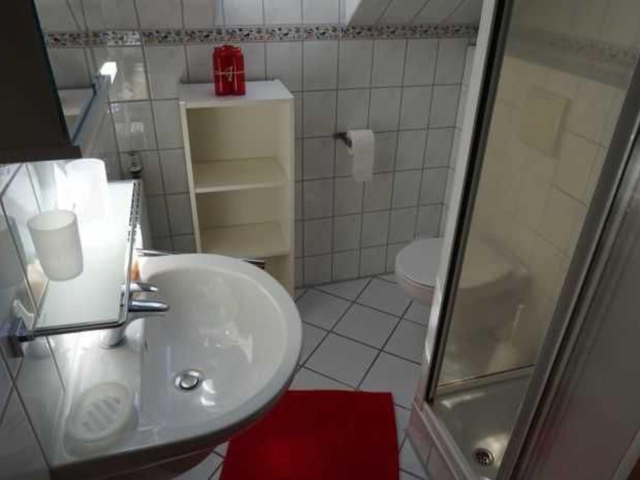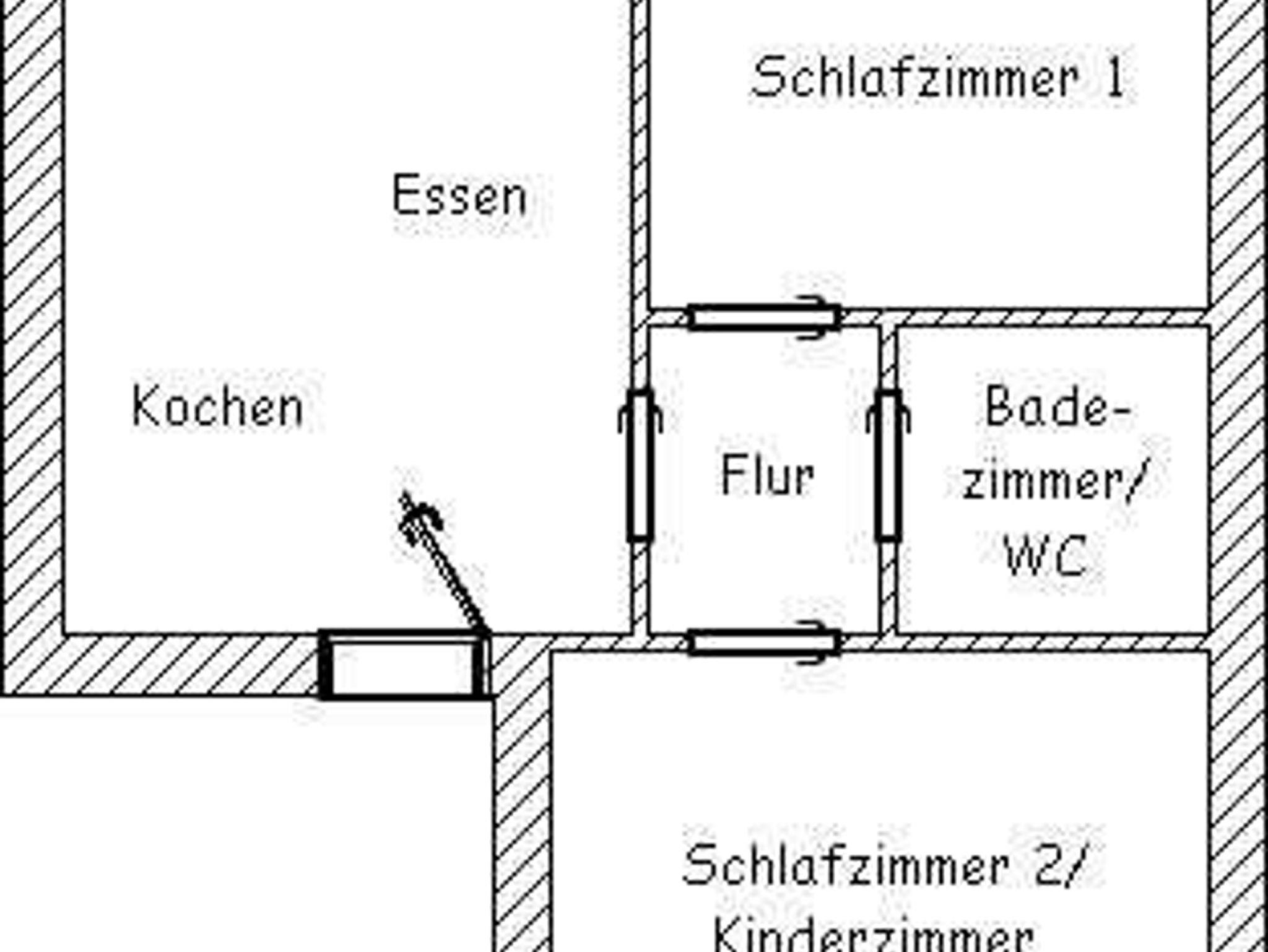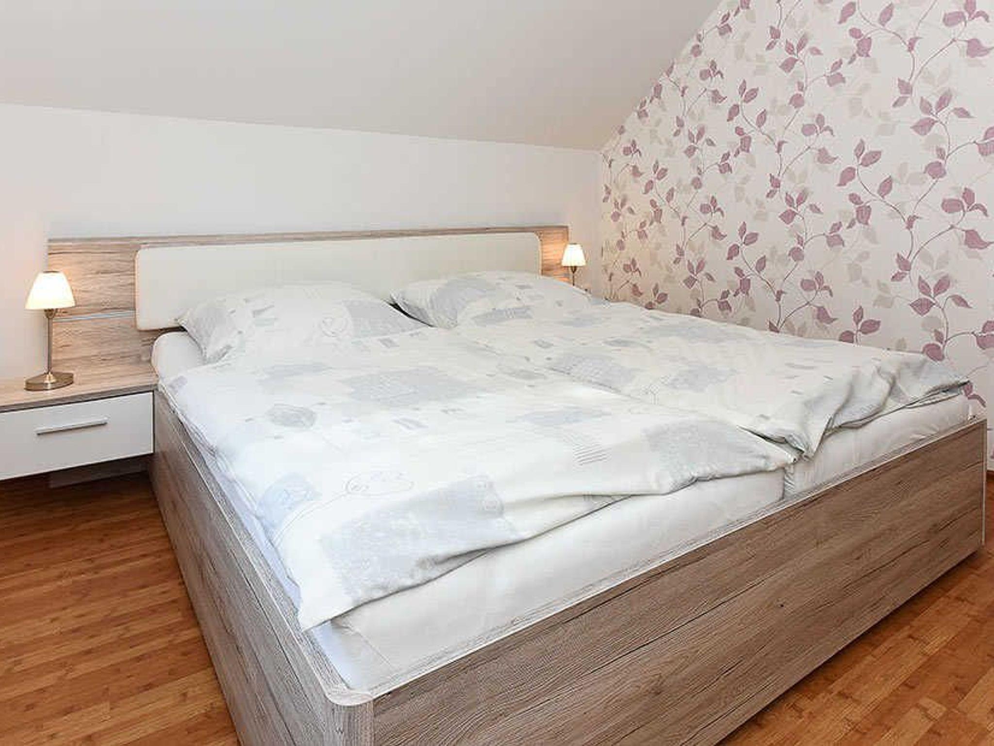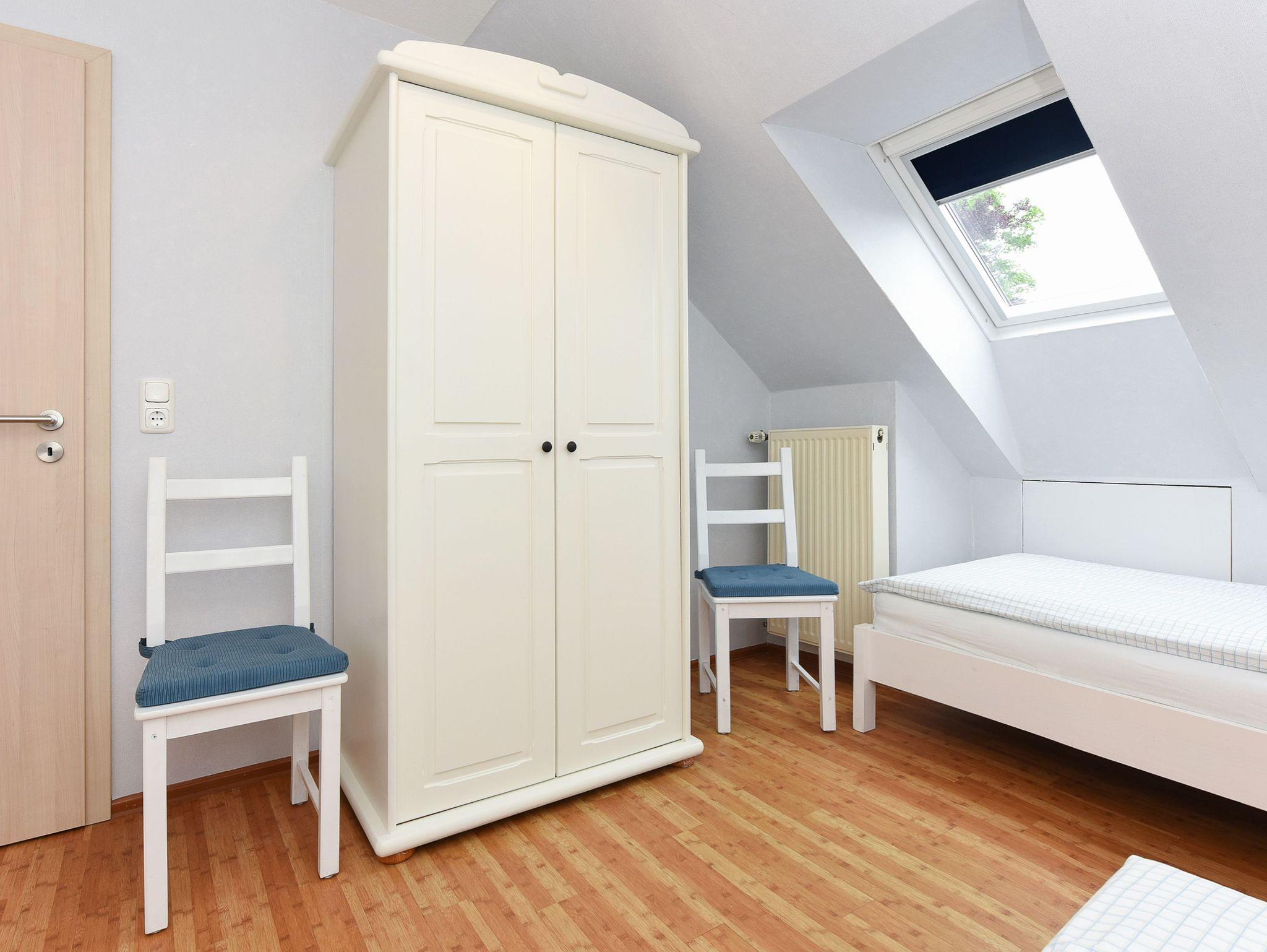zweites separates Schlafzimmer/Kinderzimmer. Badezimmer mit Dusche, Waschtisch und WC. Obergeschosswohnung. Terrasse am Haus Optimal für 2 bis 4 Personen