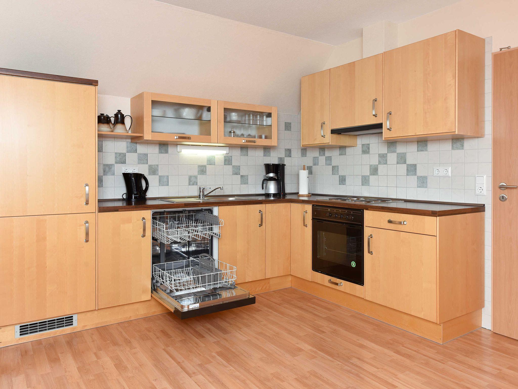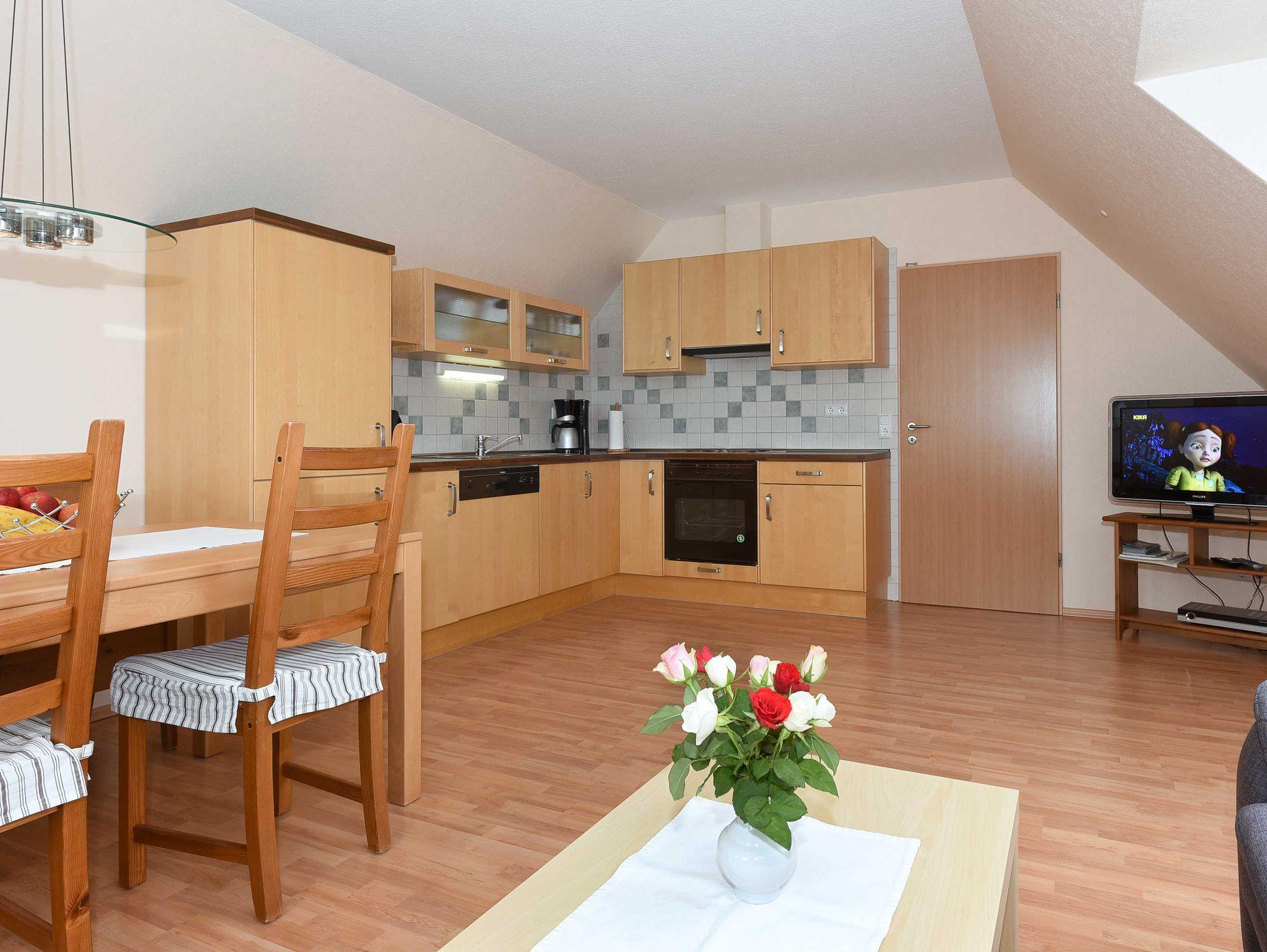Größe ca. 65 Quadratmeter, Wohn-Küche, Schlafzimmer, zweites separates Schlafzimmer/Kinderzimmer, Badezimmer mit Dusche, Waschtisch und WC, Parkplatz (reserviert), optimal für 2 bis 5 Personen.