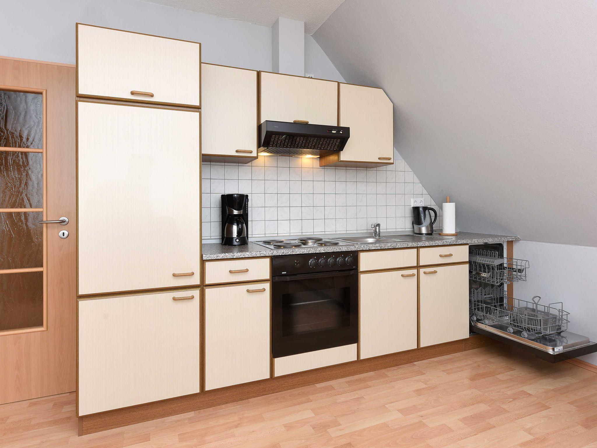 Größe ca. 60 Quadratmeter, Wohn-Küche, Schlafzimmer, Kinderzimmer, Badezimmer mit Dusche, Waschtisch und WC, Obergeschoss, Terrasse im Garten, Parkplatz (reserviert), optimal für 2 bis 4 Personen und zusätzlich ein Kleinkind.
